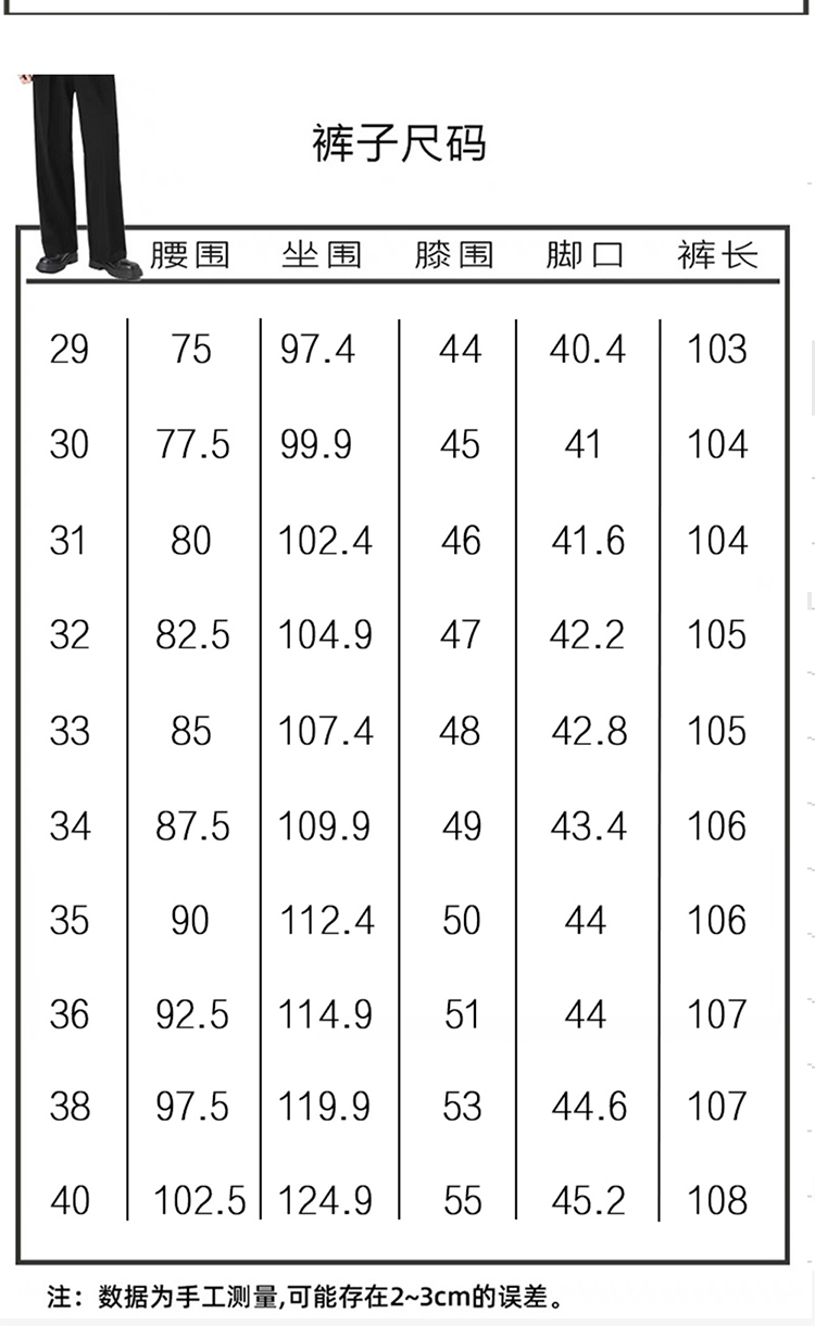Outseam (cm) 99 cm 101.5 cm 104 cm 106.5 cm 109 cm