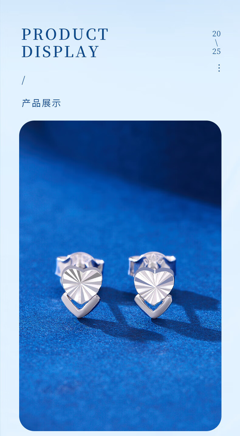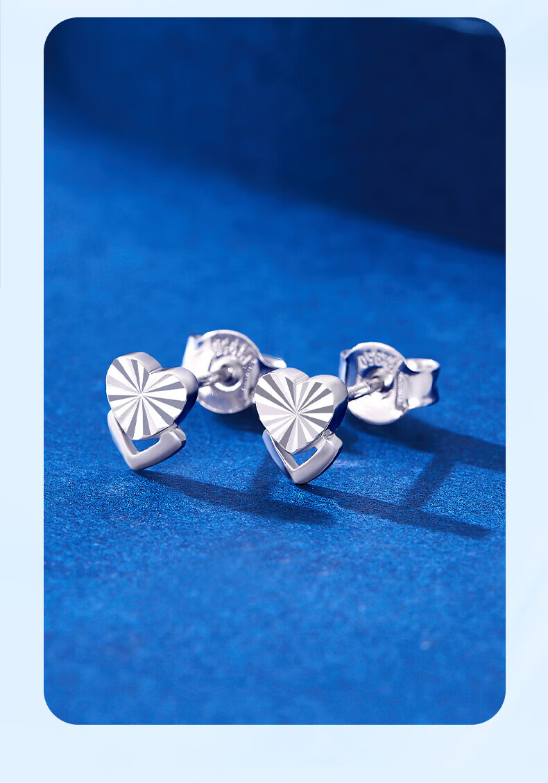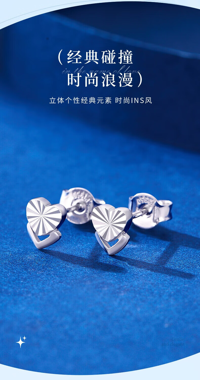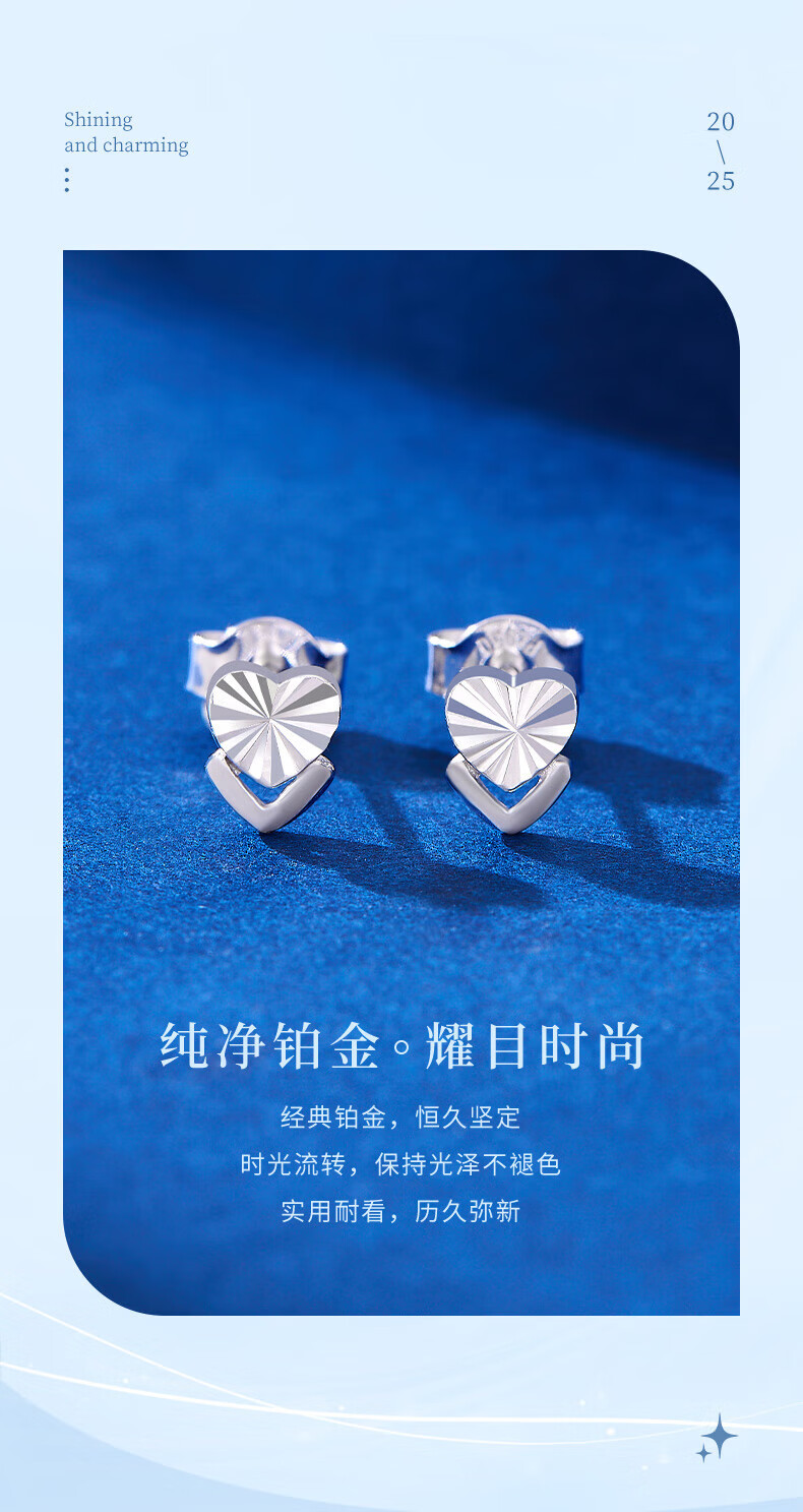 Lao Fengxiang PT950 platinum love earrings for women, platinum earrings for teachers, birthday gifts, Mid-Autumn Festival gifts for girlfriends, platinum love earrings, about 1.8g, heart-warming gift box