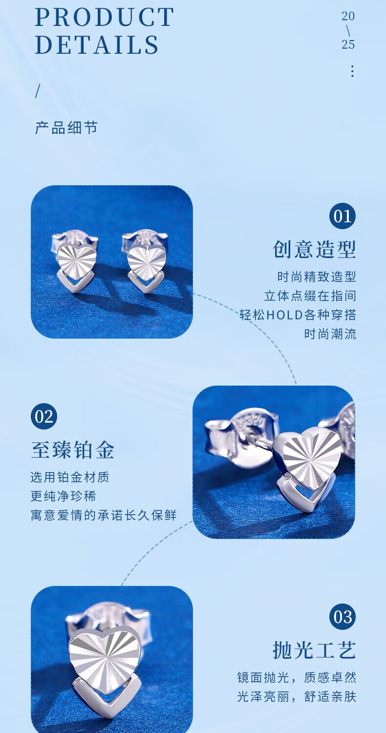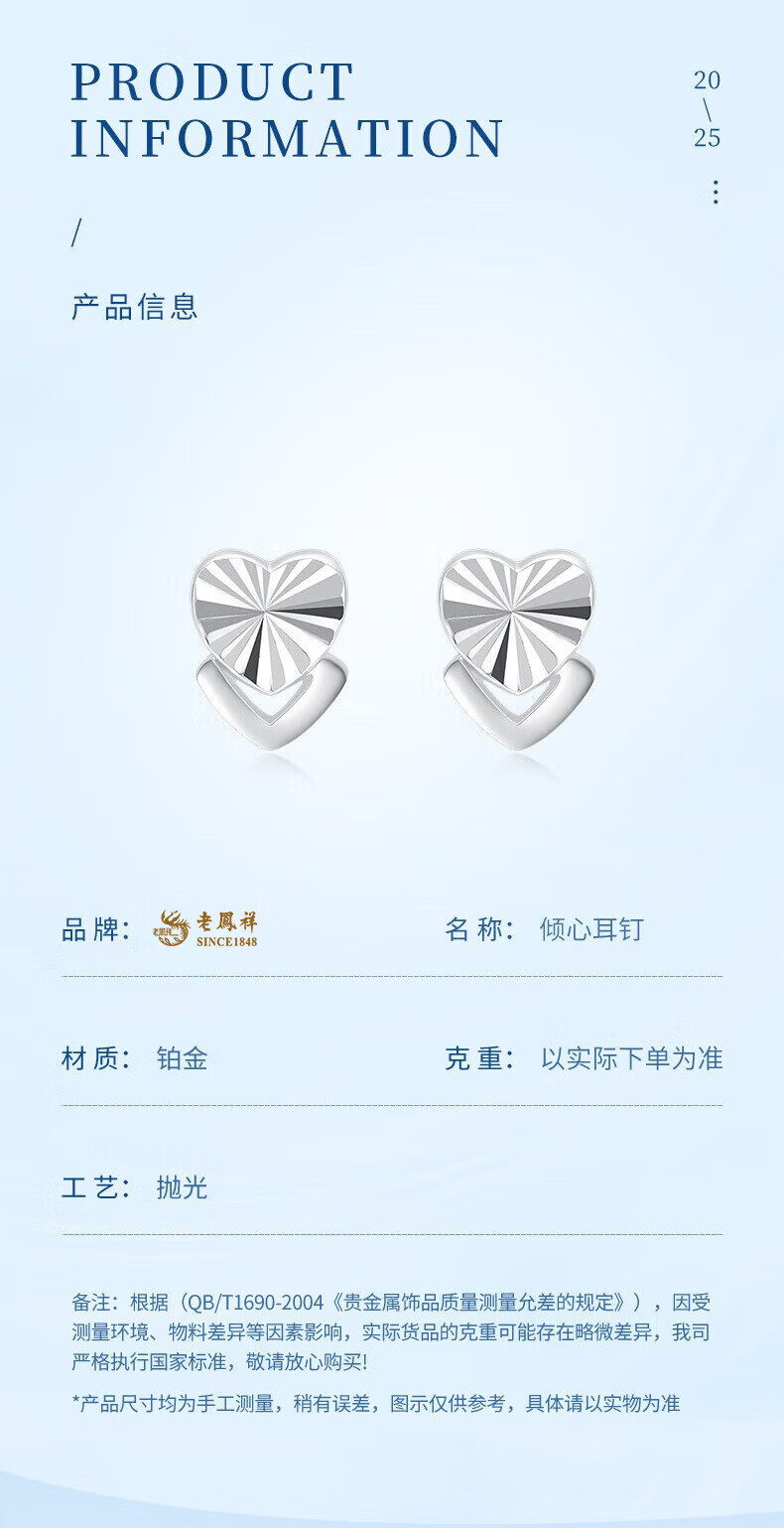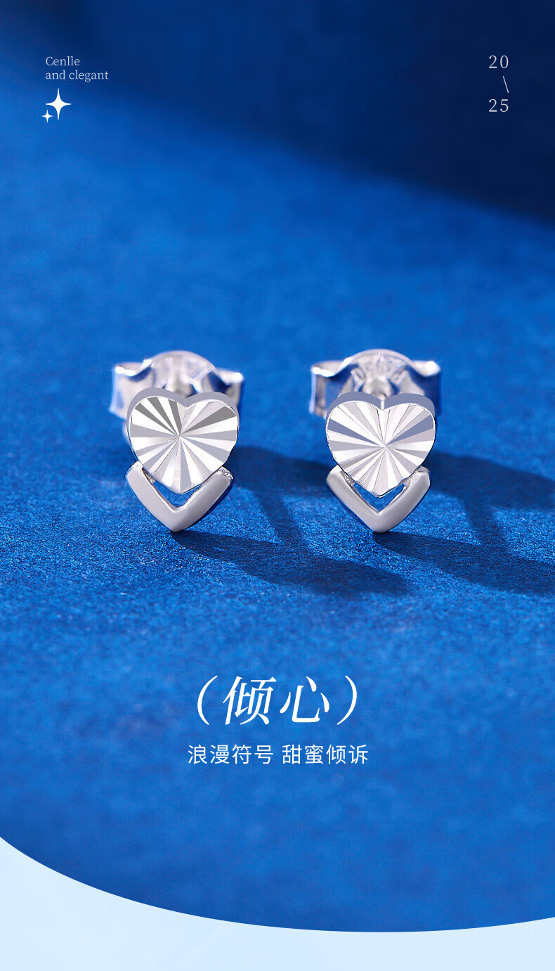 Lao Fengxiang PT950 platinum love earrings for women, platinum earrings for teachers, birthday gifts, Mid-Autumn Festival gifts for girlfriends, platinum love earrings, about 1.8g, heart-warming gift box