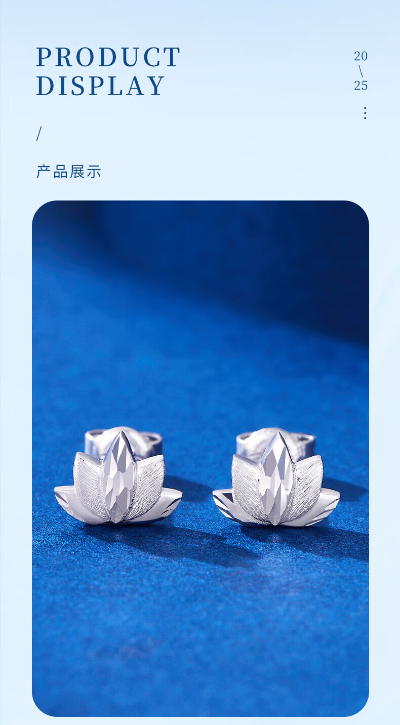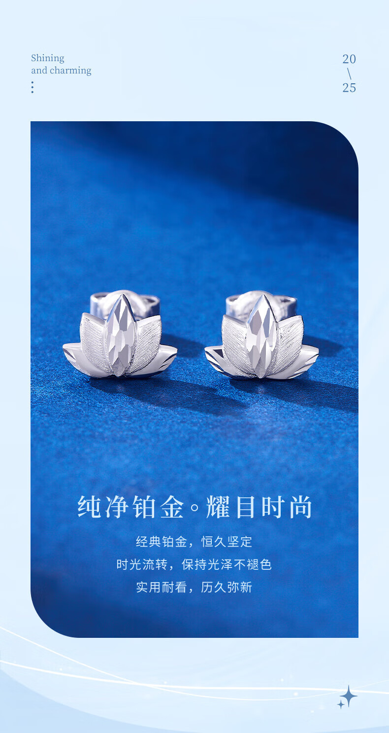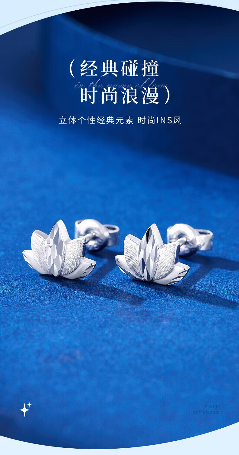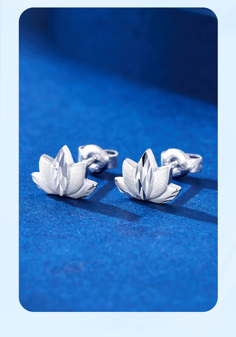 Lao Fengxiang PT950 platinum lotus earrings for women platinum flower earrings birthday gift Mid-Autumn Festival gift for girlfriend and wife Platinum lotus earrings about 2.4g brand gift box