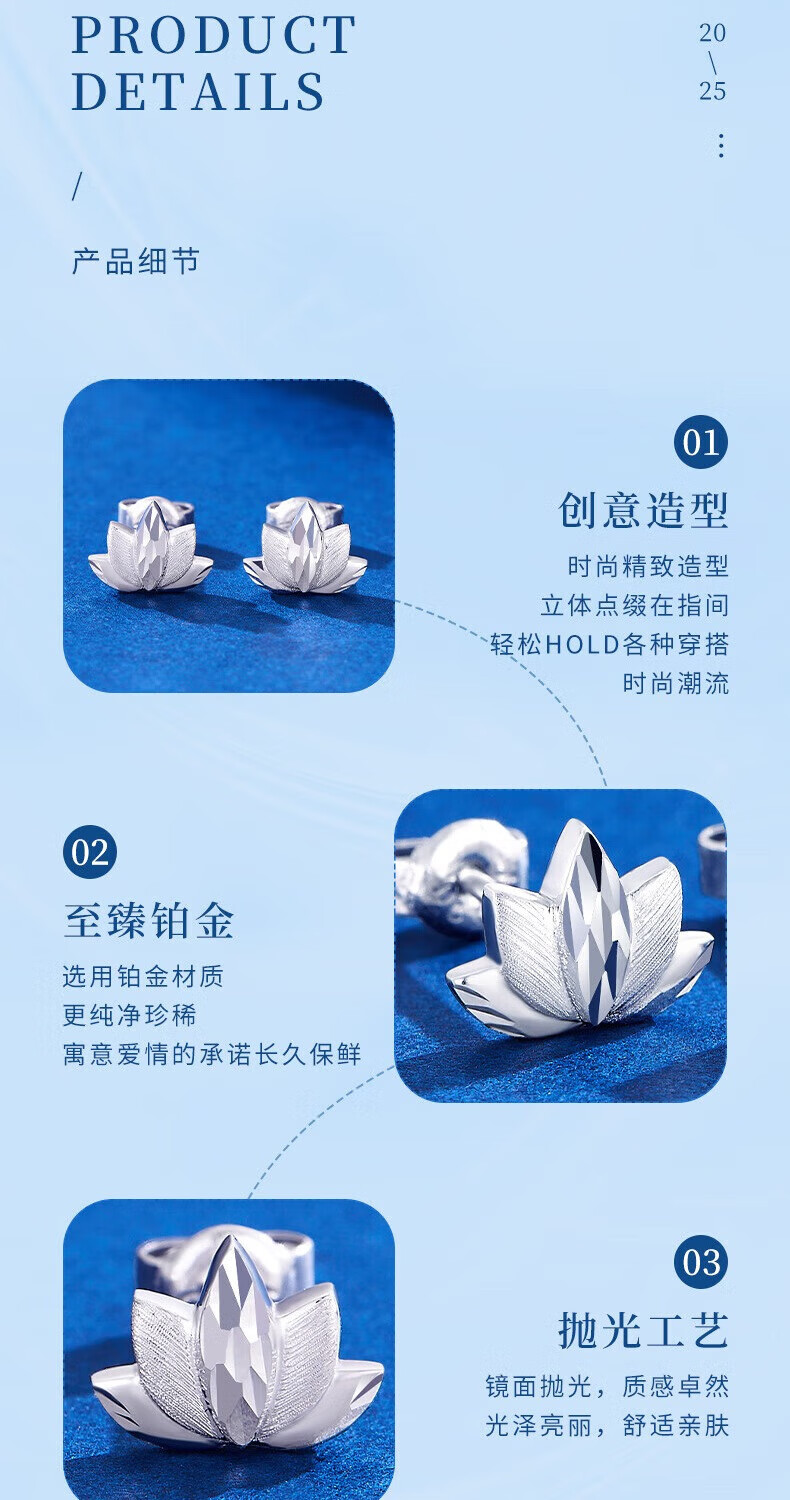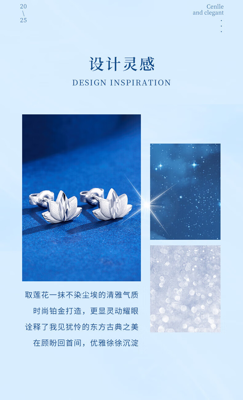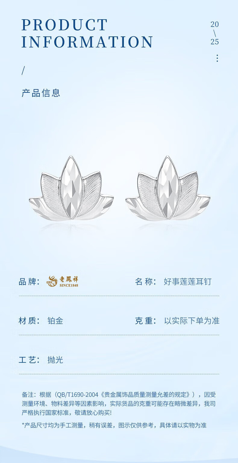 Lao Fengxiang PT950 platinum lotus earrings for women platinum flower earrings birthday gift Mid-Autumn Festival gift for girlfriend and wife Platinum lotus earrings about 2.4g brand gift box