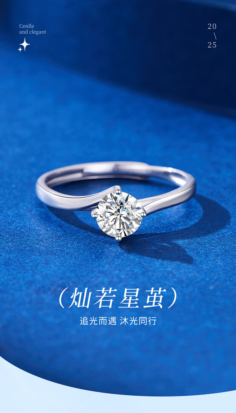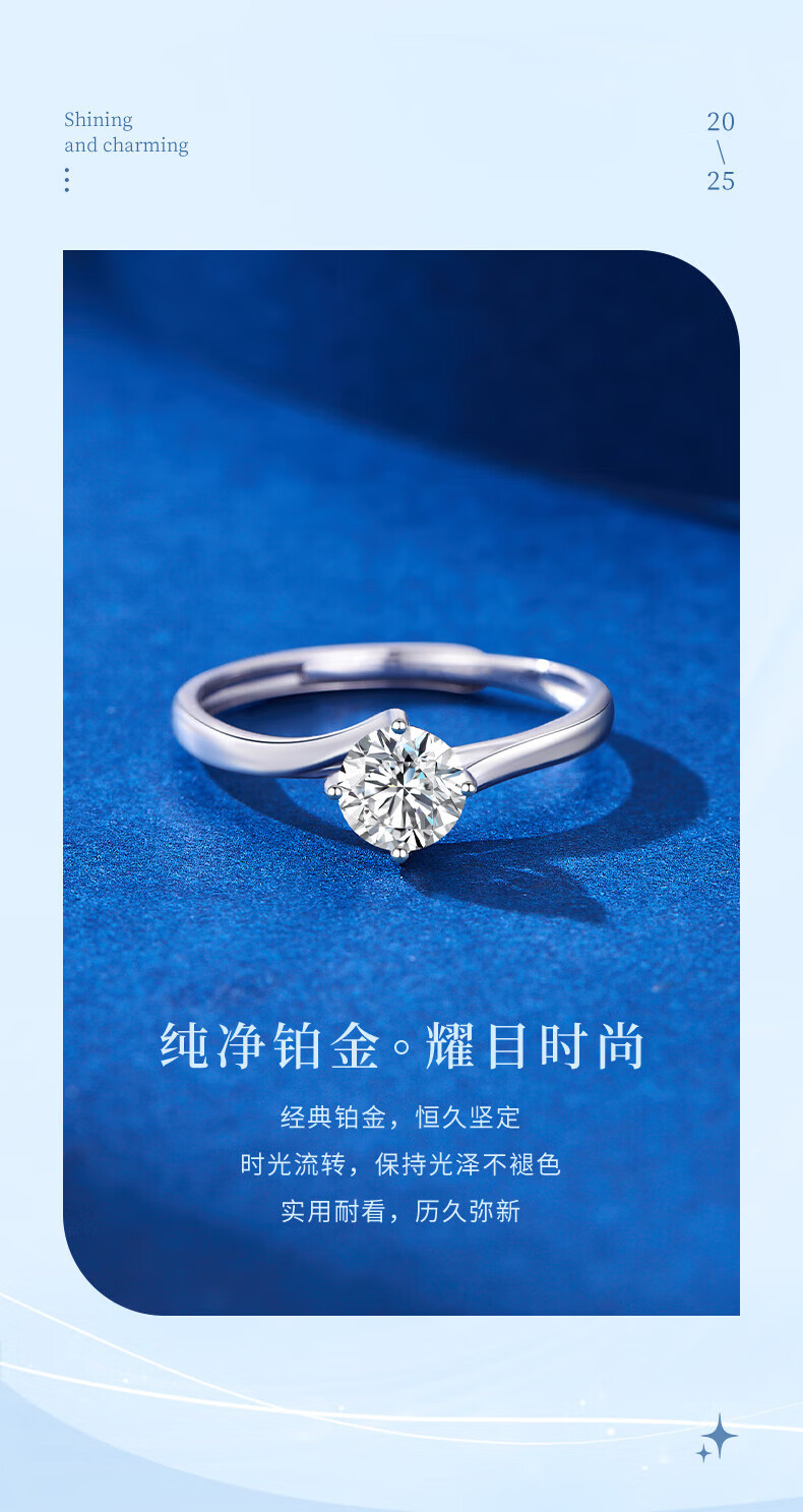 Lao Fengxiang PT950 Platinum Brilliant Ring Women's New Platinum Ring Birthday Gift Mid-Autumn Festival Gift for Girlfriend and Wife Platinum Brilliant Ring About 2.1g Selection Gift Box