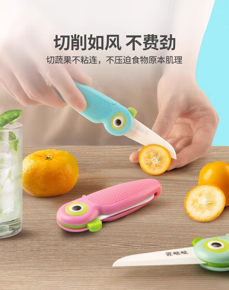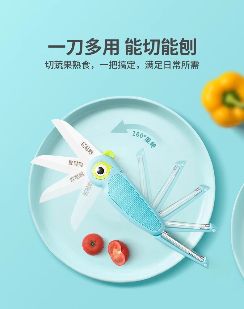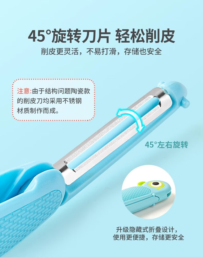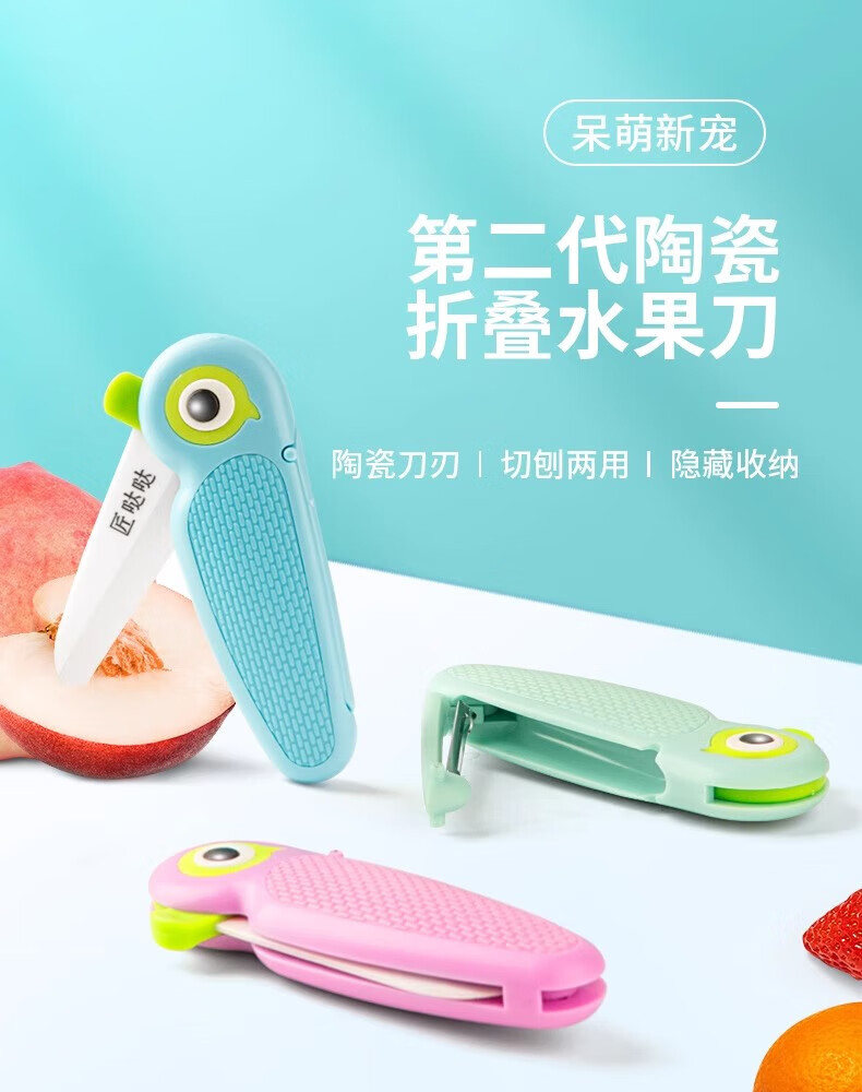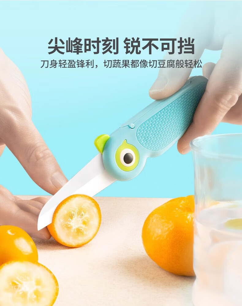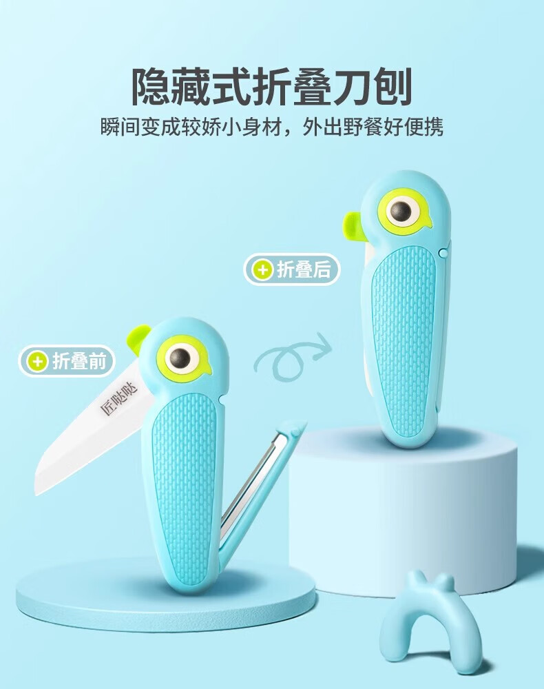 沅肆水果刀折叠陶瓷二合一可带上铁高便携式火车飞机旅行 二合一水果刀削皮器 蓝粉随机