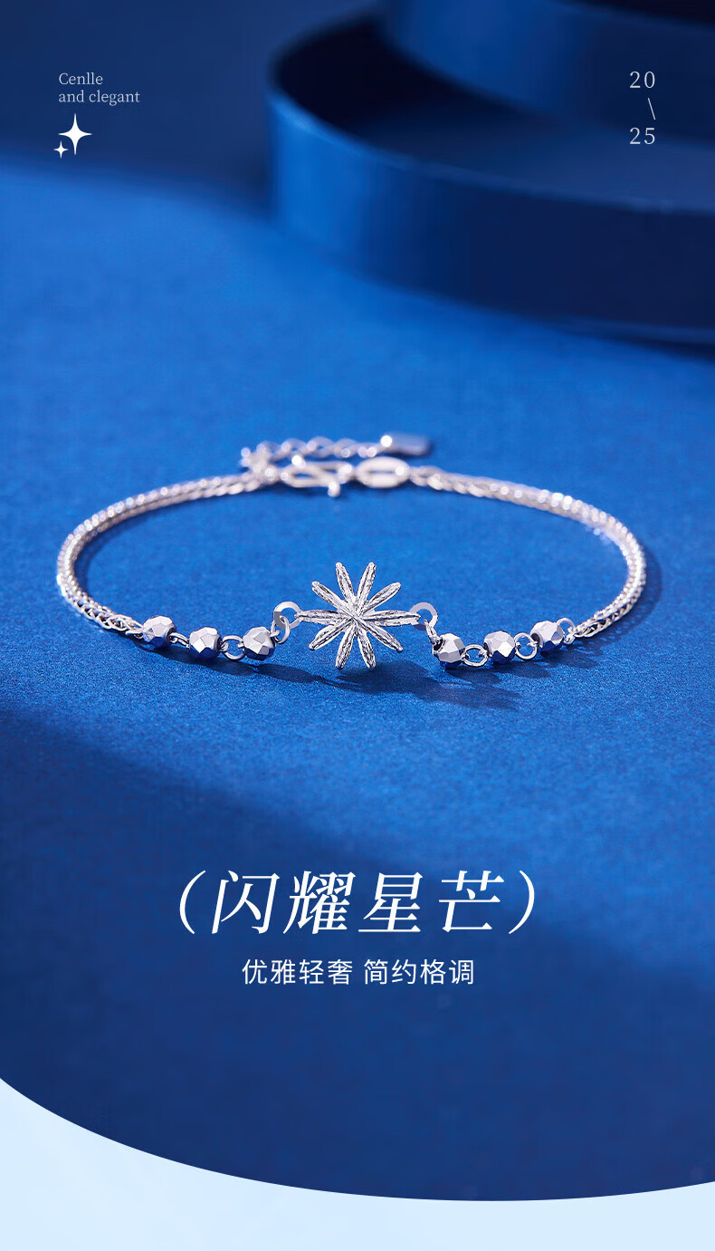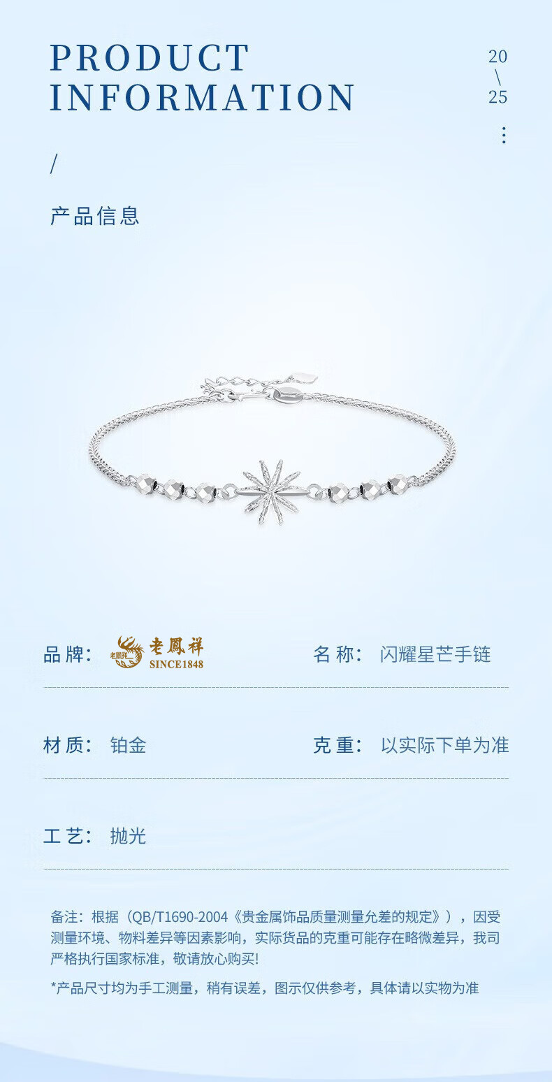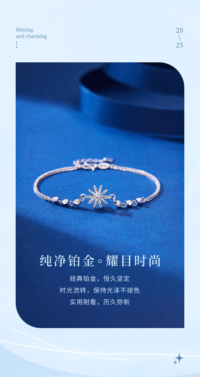 Lao Fengxiang PT950 Platinum Shining Star Bracelet Women's Platinum Snowflake Hand Birthday Gift Mid-Autumn Festival Gift for Girlfriend Shining Star Bracelet About 3.3g Brand Gift Box