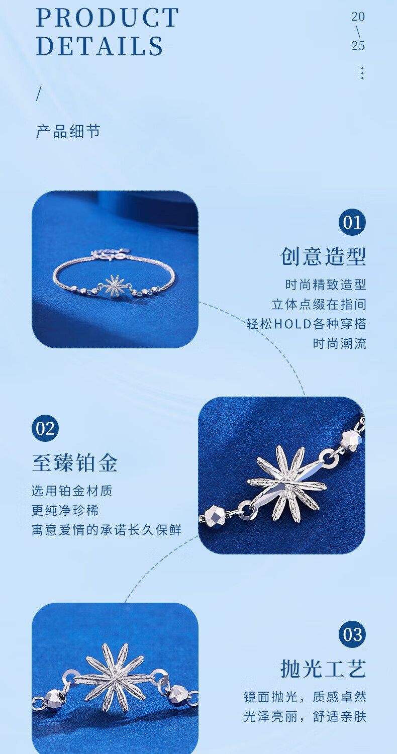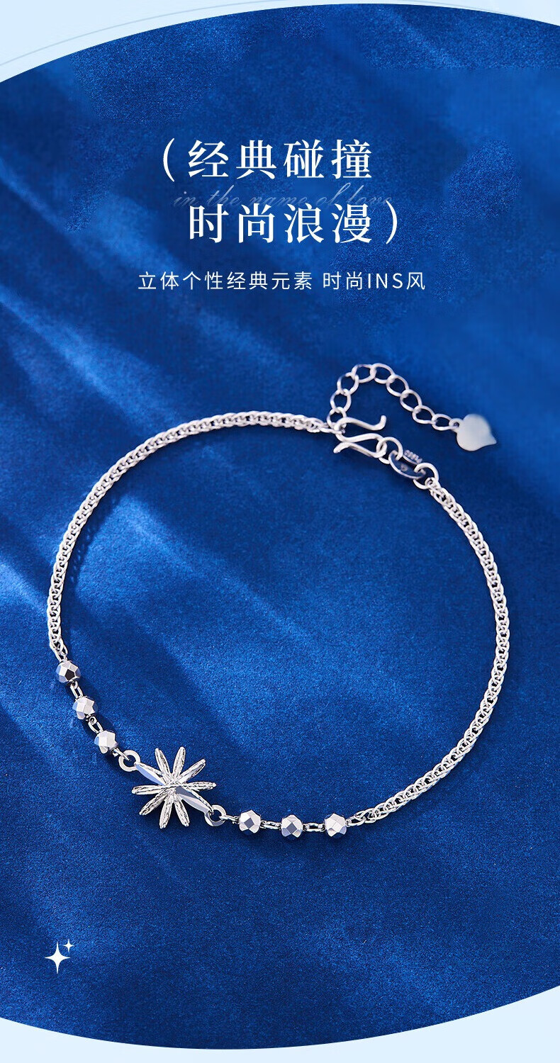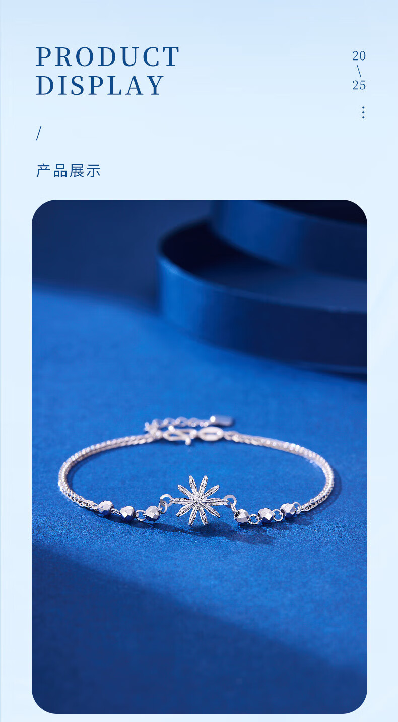 Lao Fengxiang PT950 Platinum Shining Star Bracelet Women's Platinum Snowflake Hand Birthday Gift Mid-Autumn Festival Gift for Girlfriend Shining Star Bracelet About 3.3g Brand Gift Box