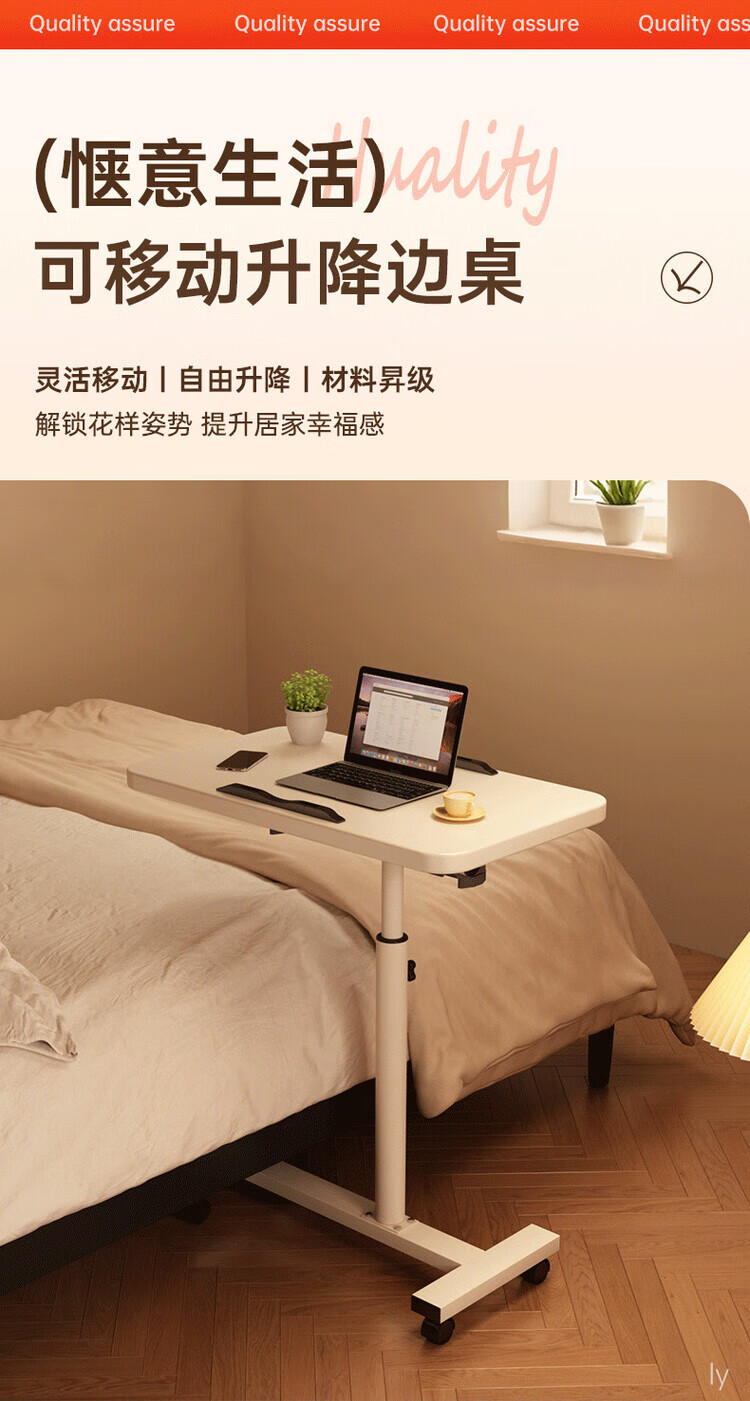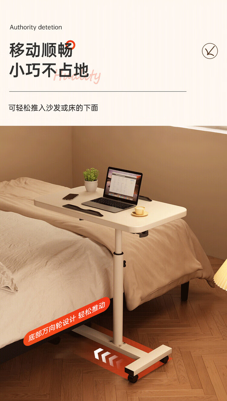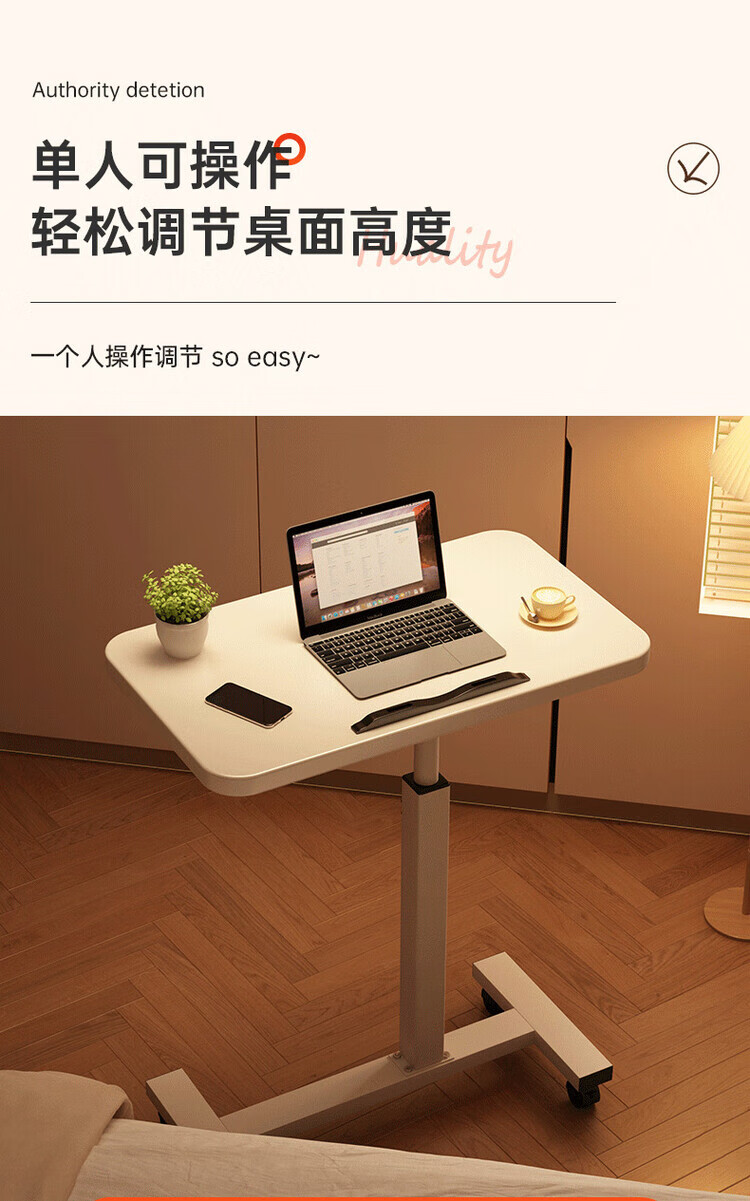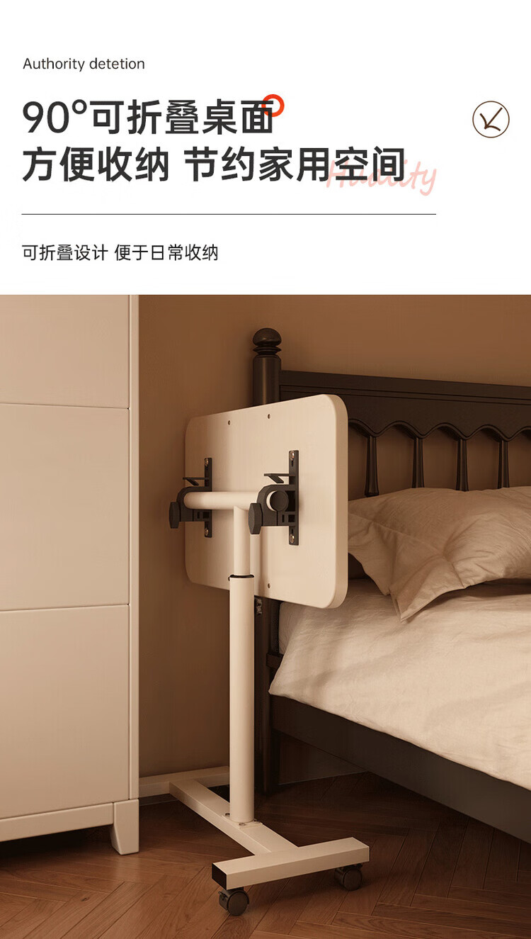 Bedside table can be lifted and flipped, narrow gap, small computer desk, bedroom dormitory lazy person simple mobile desk, simple flip model, Yunxi white 50*30cm