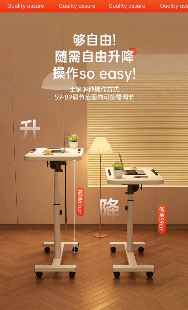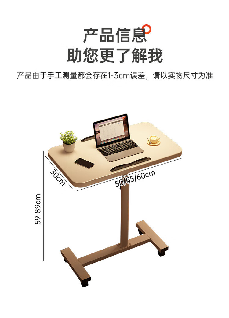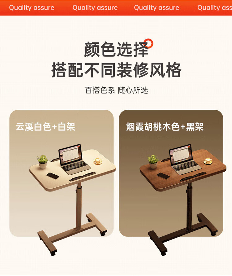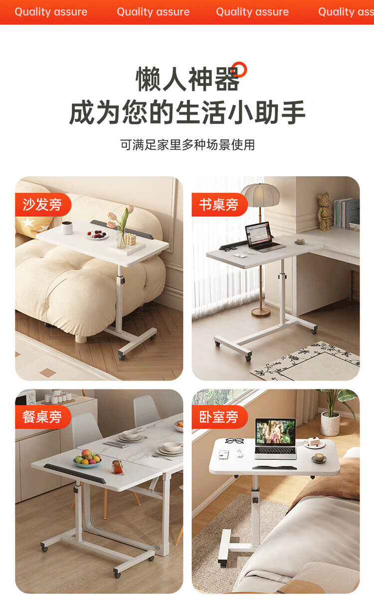 Bedside table can be lifted and flipped, narrow gap, small computer desk, bedroom dormitory lazy person simple mobile desk, simple flip model, Yunxi white 50*30cm