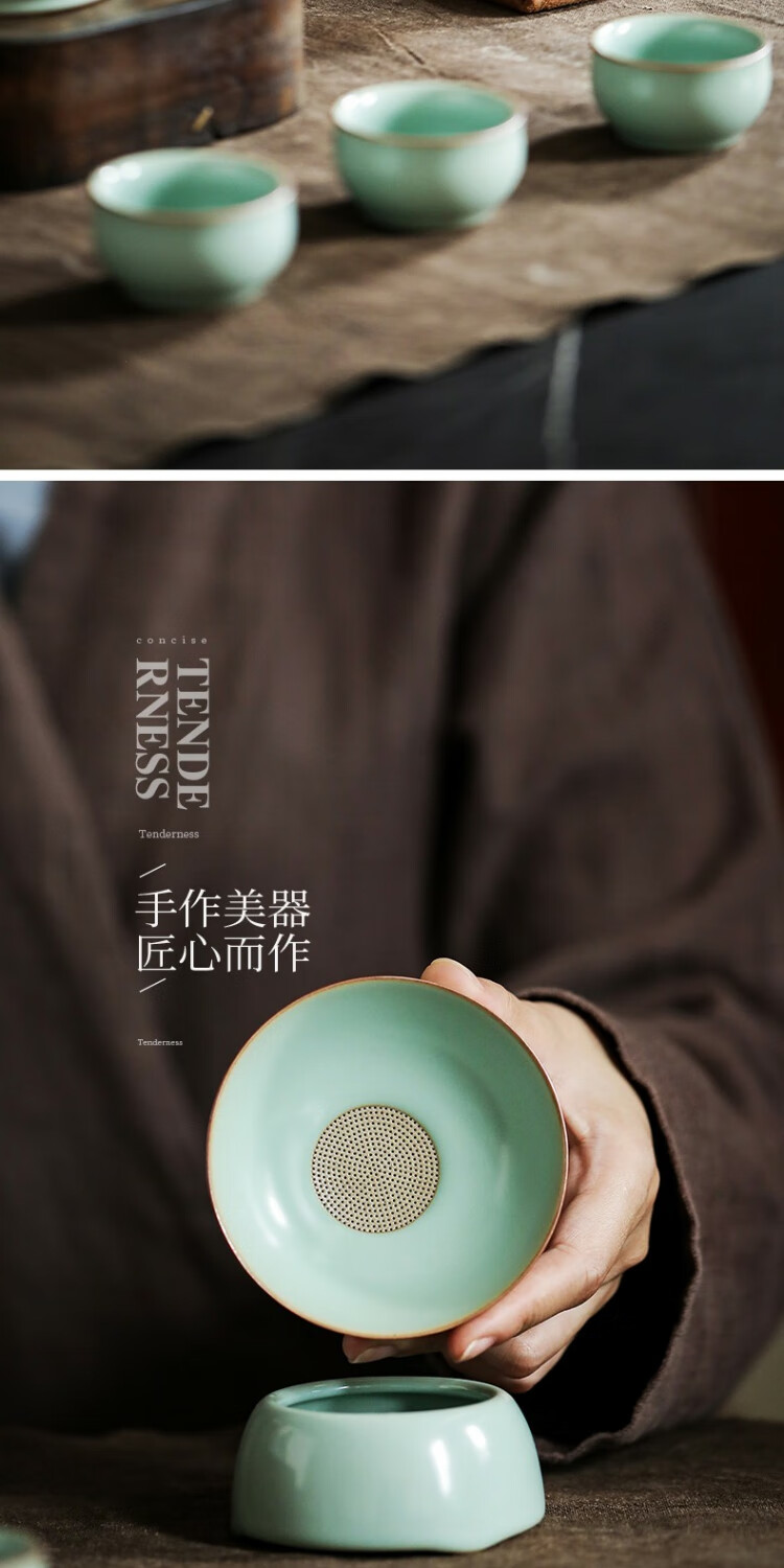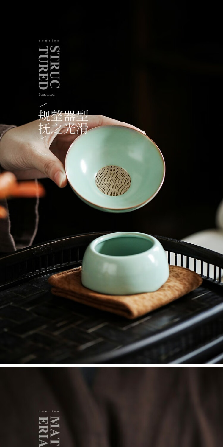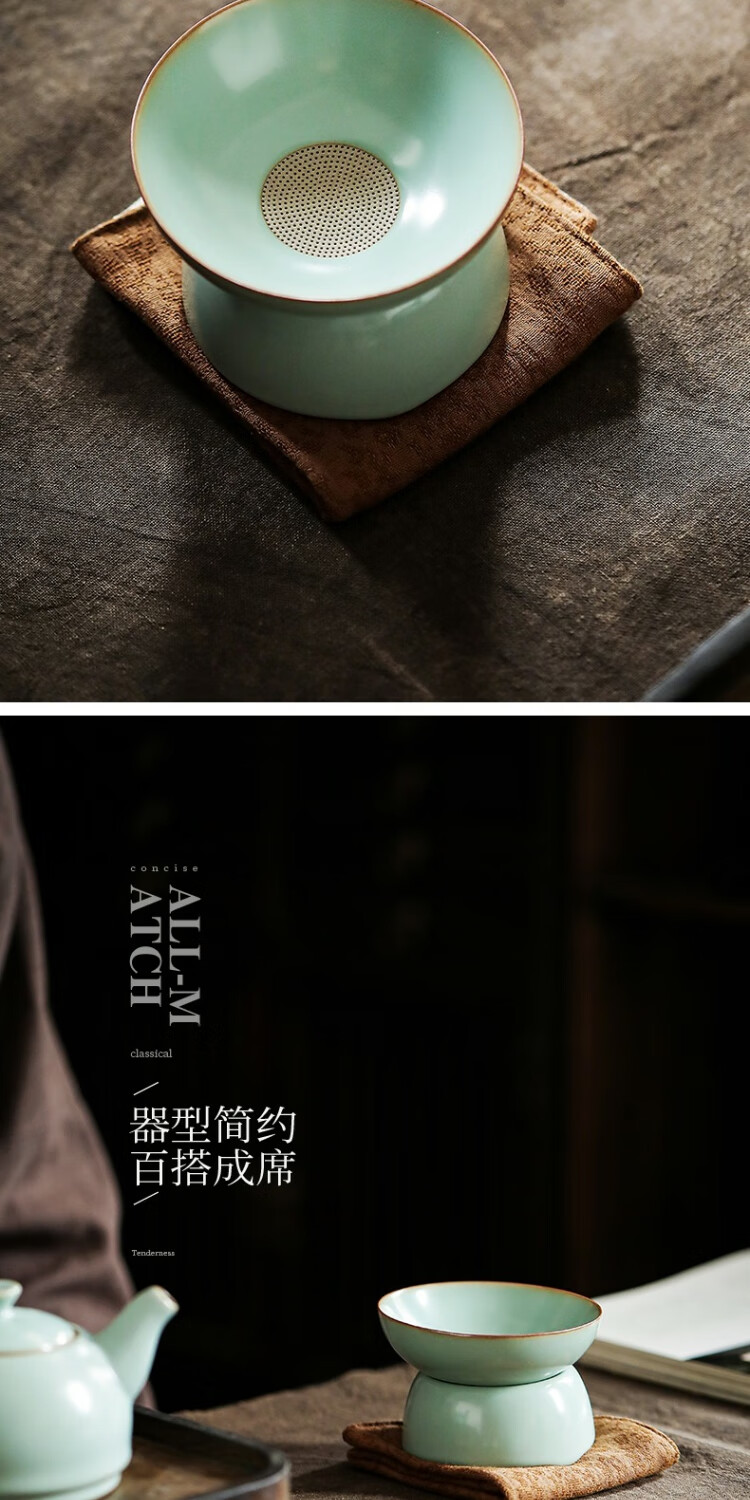 Ru kiln tea drain ceramic hole integrated tea filter tea set accessories ceramic tea separator tea filter tea god Ru kiln Qingyun tea drain