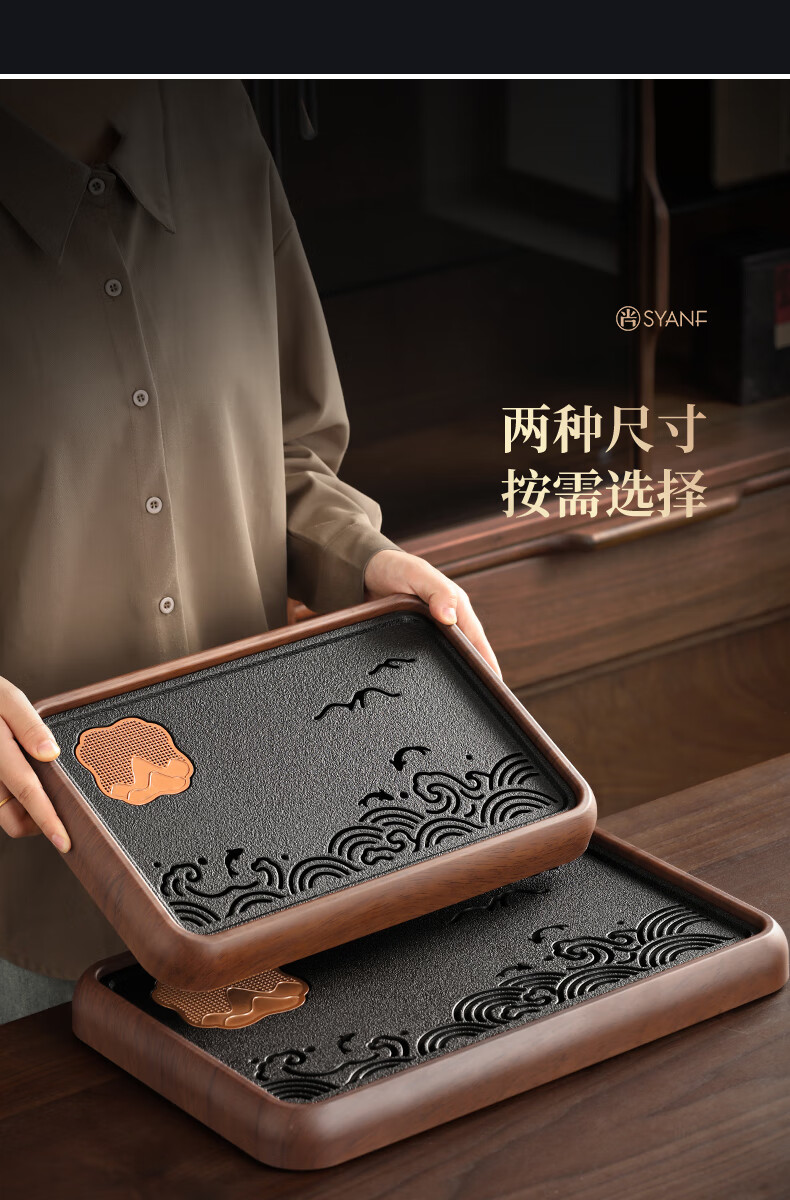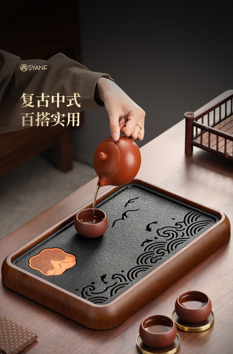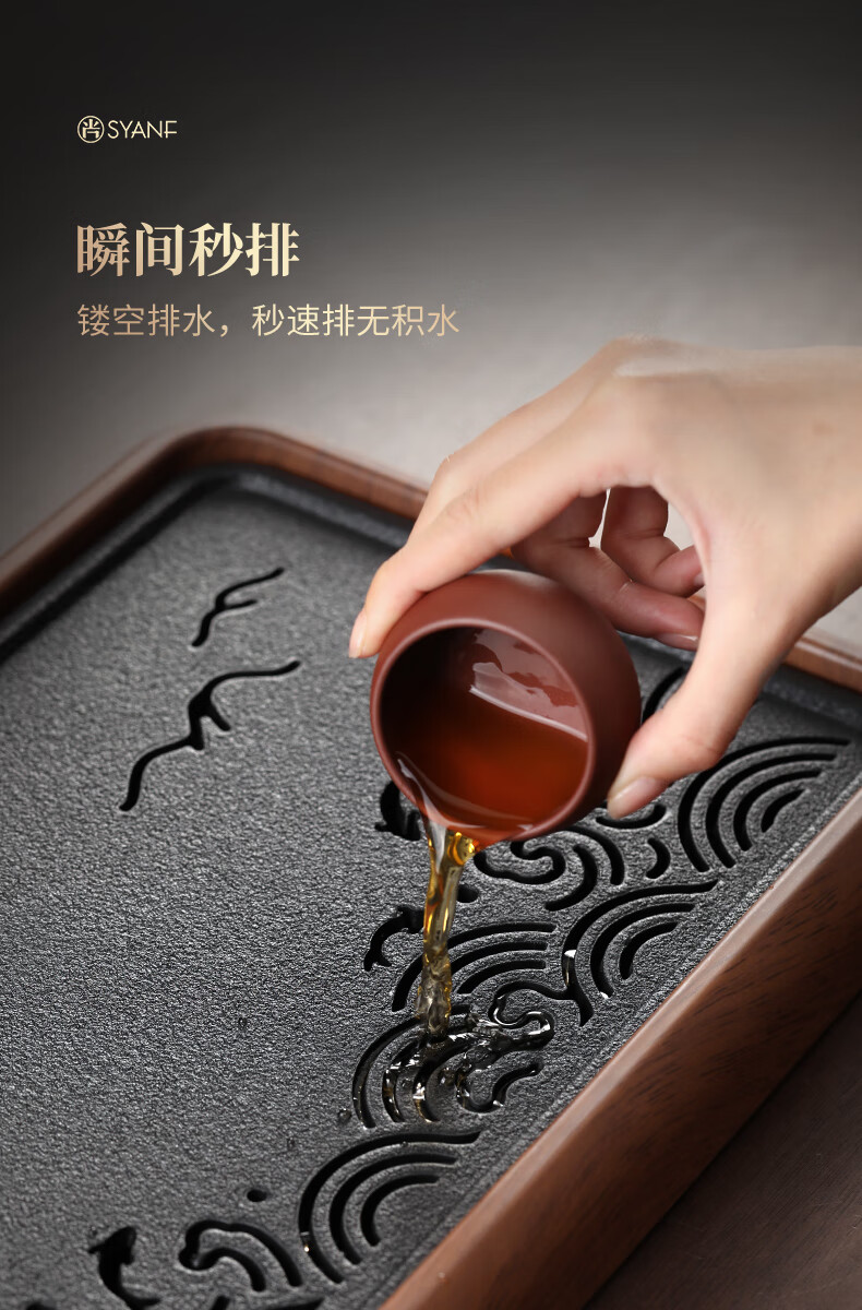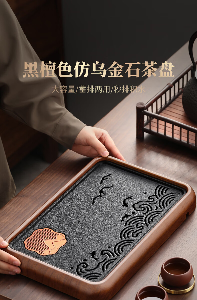 Tea tray, household high-end imitation black gold stone tea tray, office small tea set, drain tray, dry tea tray 1-Ebony Color-Carp Yuelang Tea Tray (Small) 39.5*26*5.5