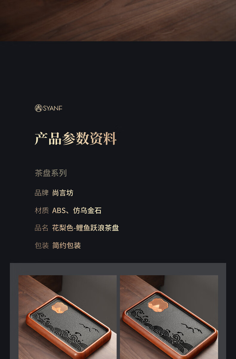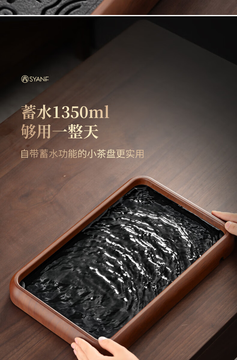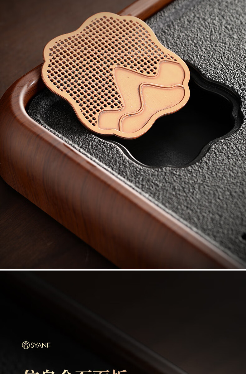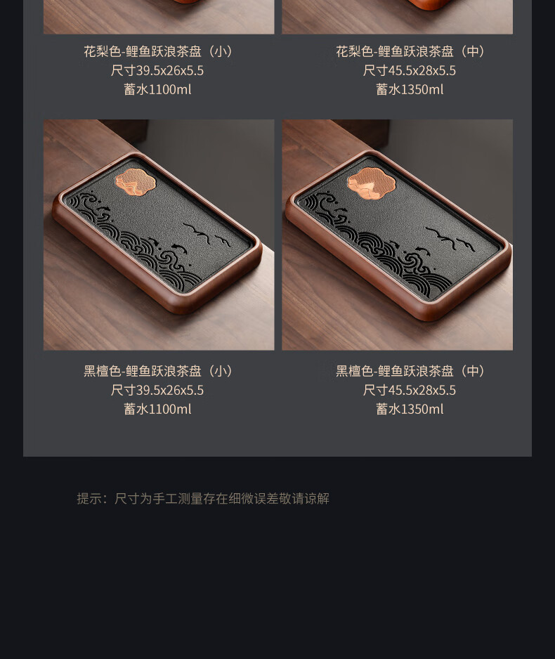 Tea tray, household high-end imitation black gold stone tea tray, office small tea set, drain tray, dry tea tray 1-Ebony Color-Carp Yuelang Tea Tray (Small) 39.5*26*5.5