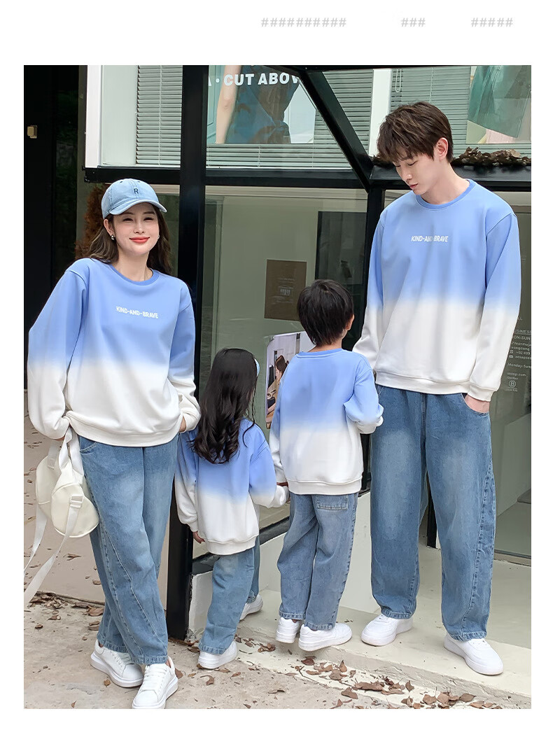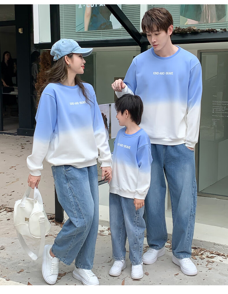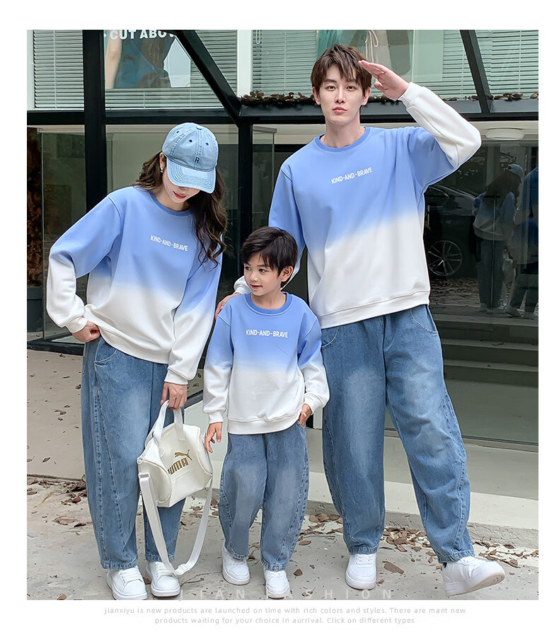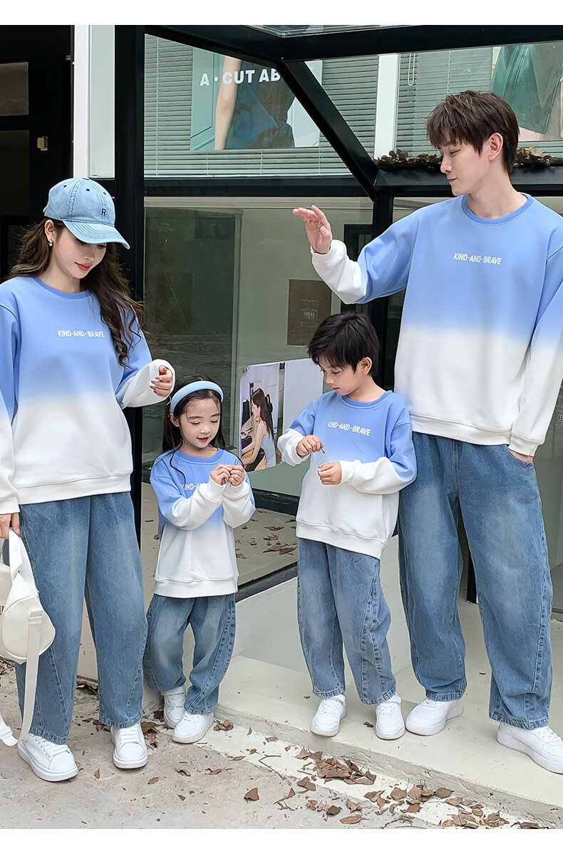 Tonghuai parent-child clothing autumn clothing 2025 new round neck long-sleeved sweatshirt for a family of three or four autumn and winter mother-child mother-daughter family clothing blue hanging dye (spring and autumn) sweatshirt 130 cm
