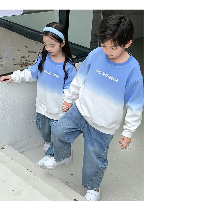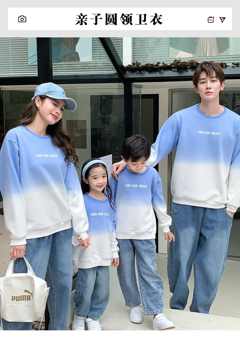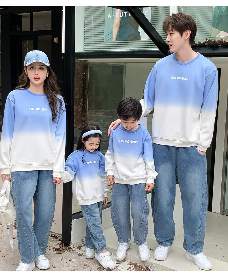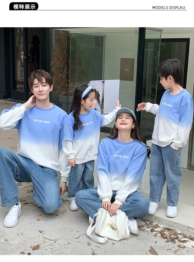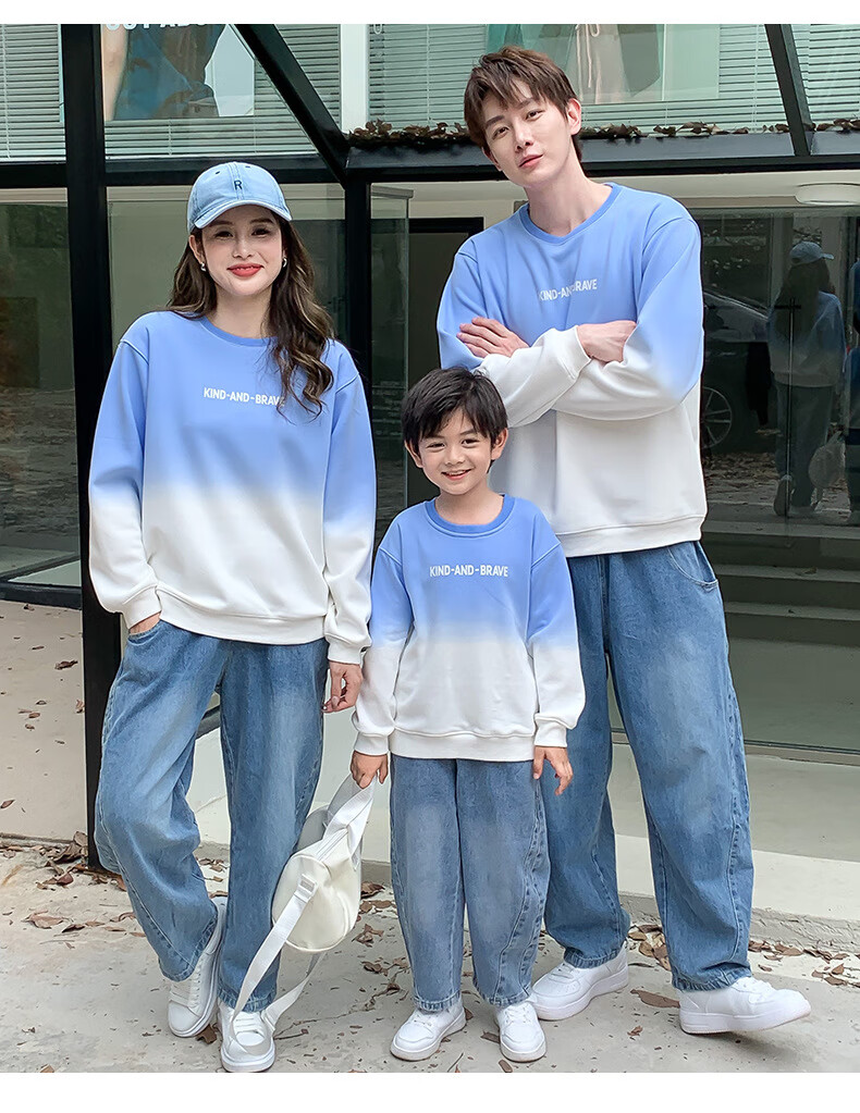 Tonghuai parent-child clothing autumn clothing 2025 new round neck long-sleeved sweatshirt for a family of three or four autumn and winter mother-child mother-daughter family clothing blue hanging dye (spring and autumn) sweatshirt 130 cm