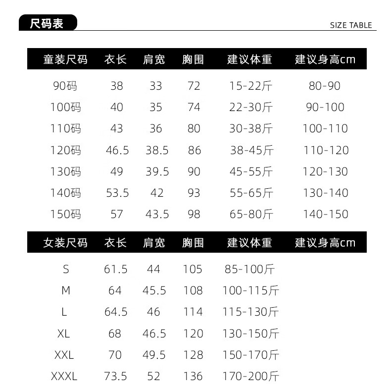 China (cm) 160-165/84-86 165-170 / 88-90 167-172 / 92-96 168-173 / 98-102 170-176 / 106-110