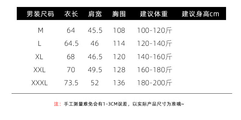 China (cm) 165 / 88-90 170 / 96-98 175 / 108-110 180 / 118-122 185 / 126-130