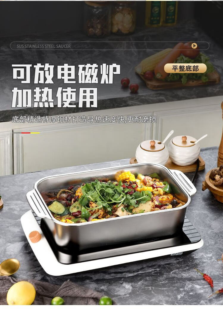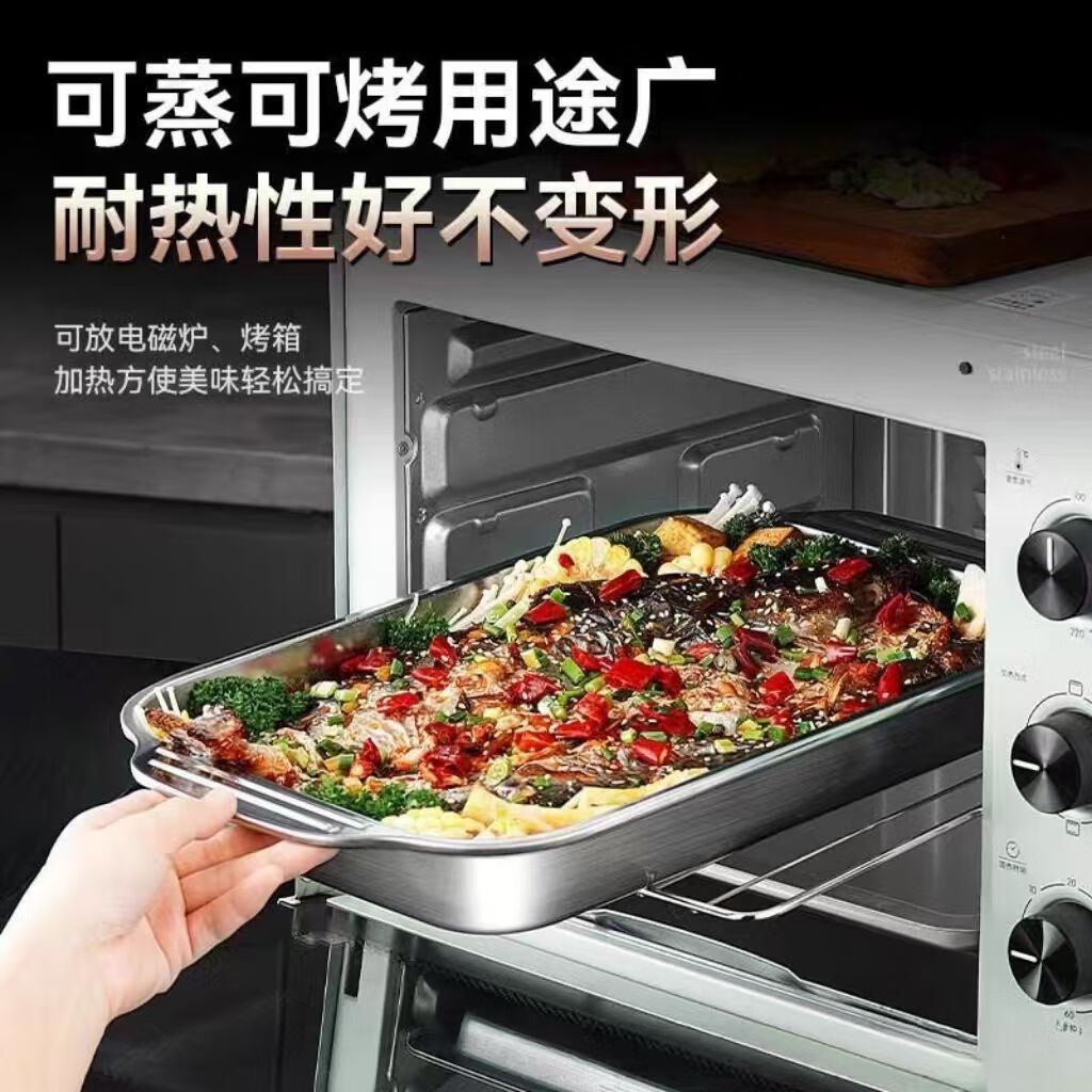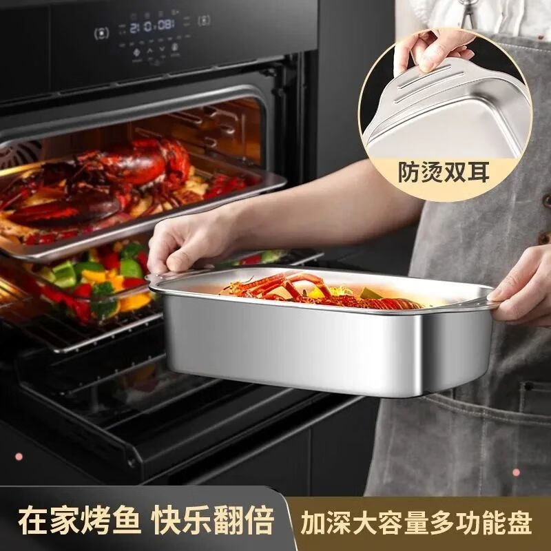 Stainless steel grilled fish plate rectangular deep plate fish plate household induction cooker special grilled fish stove double handle 41*24*7cm deep style with lid