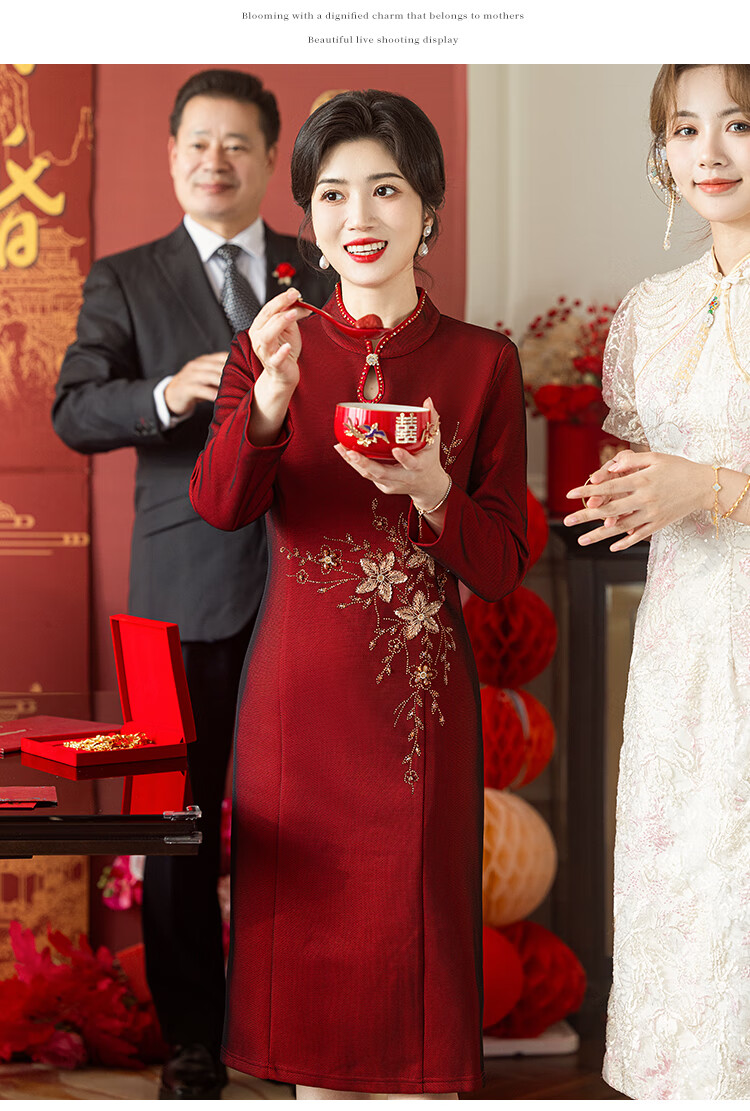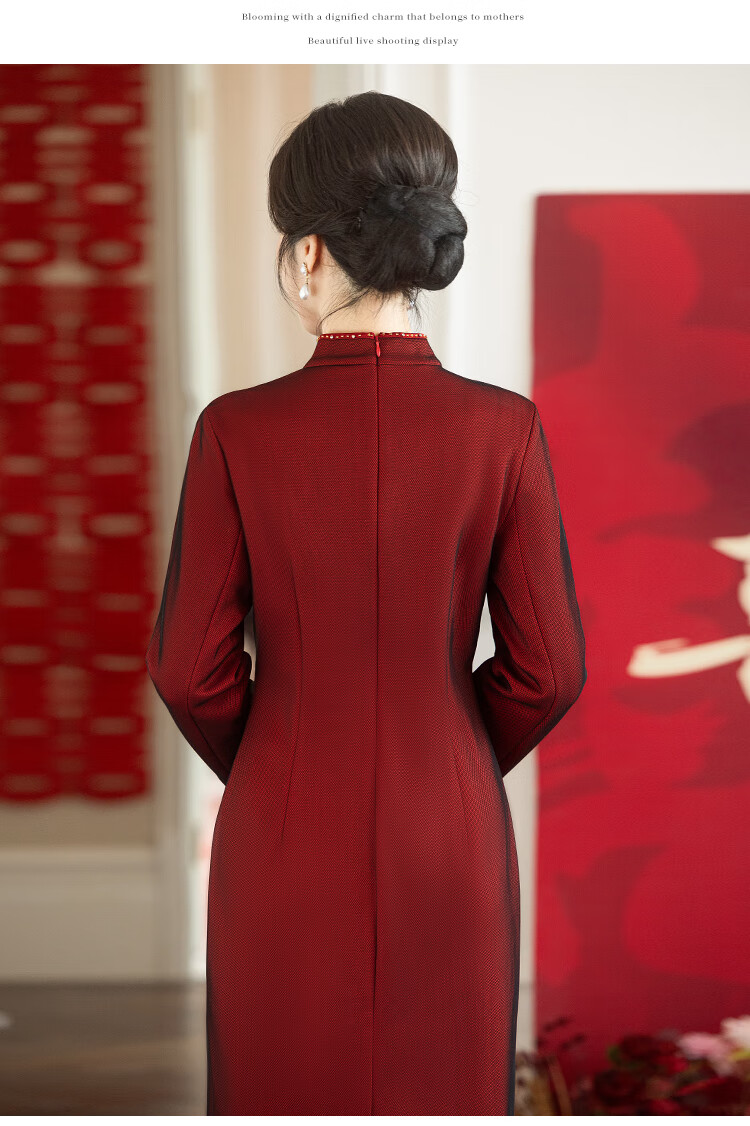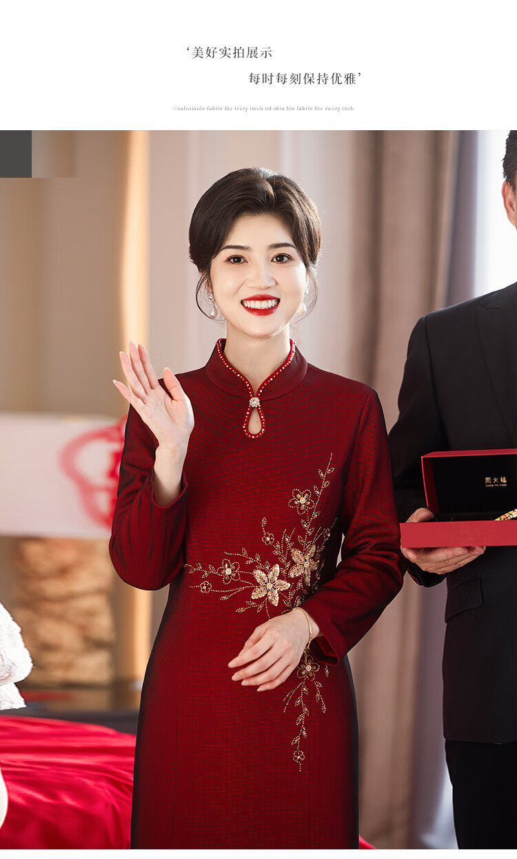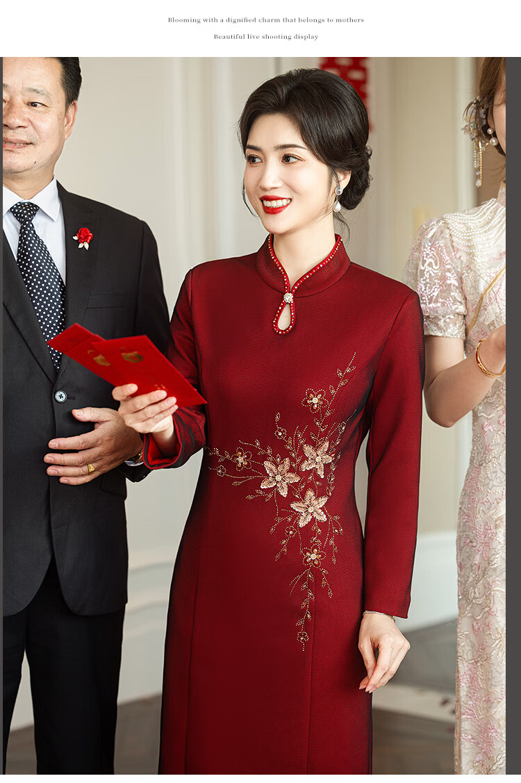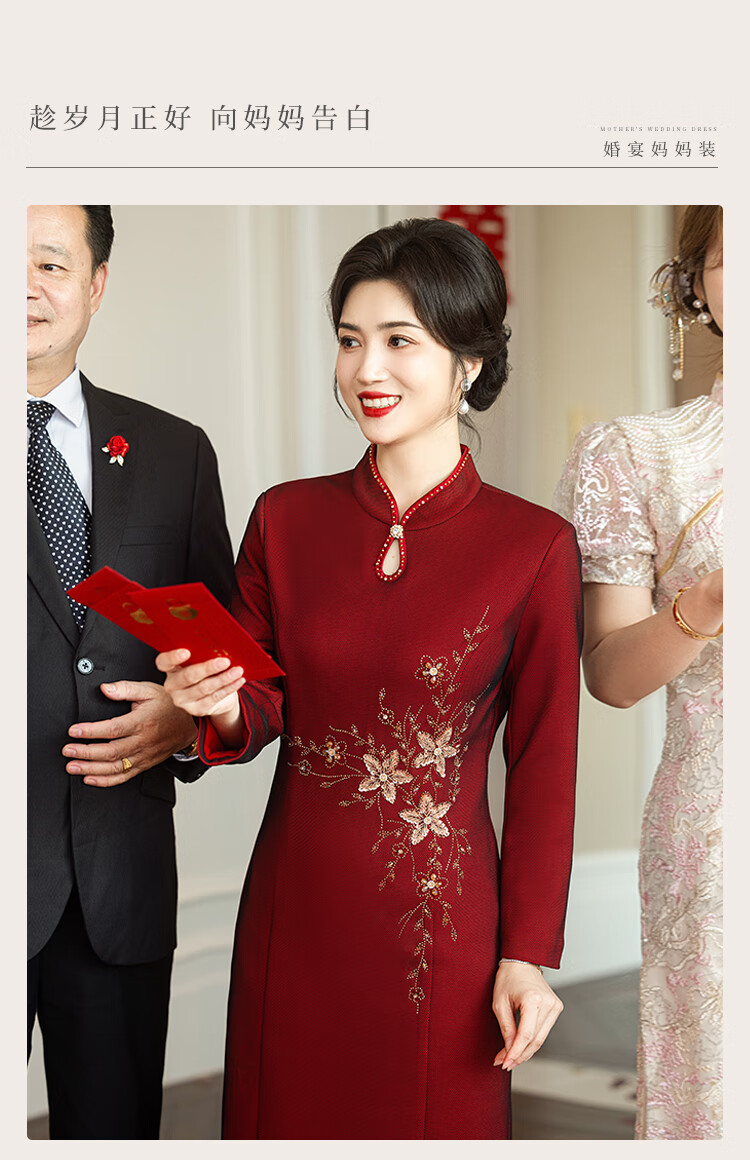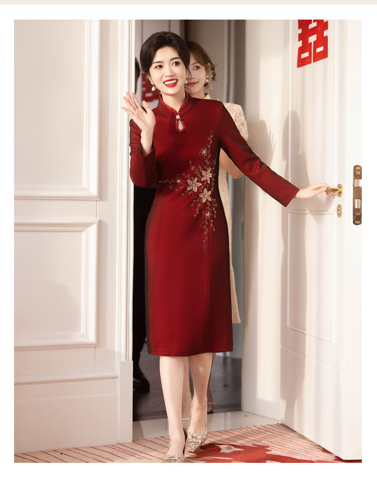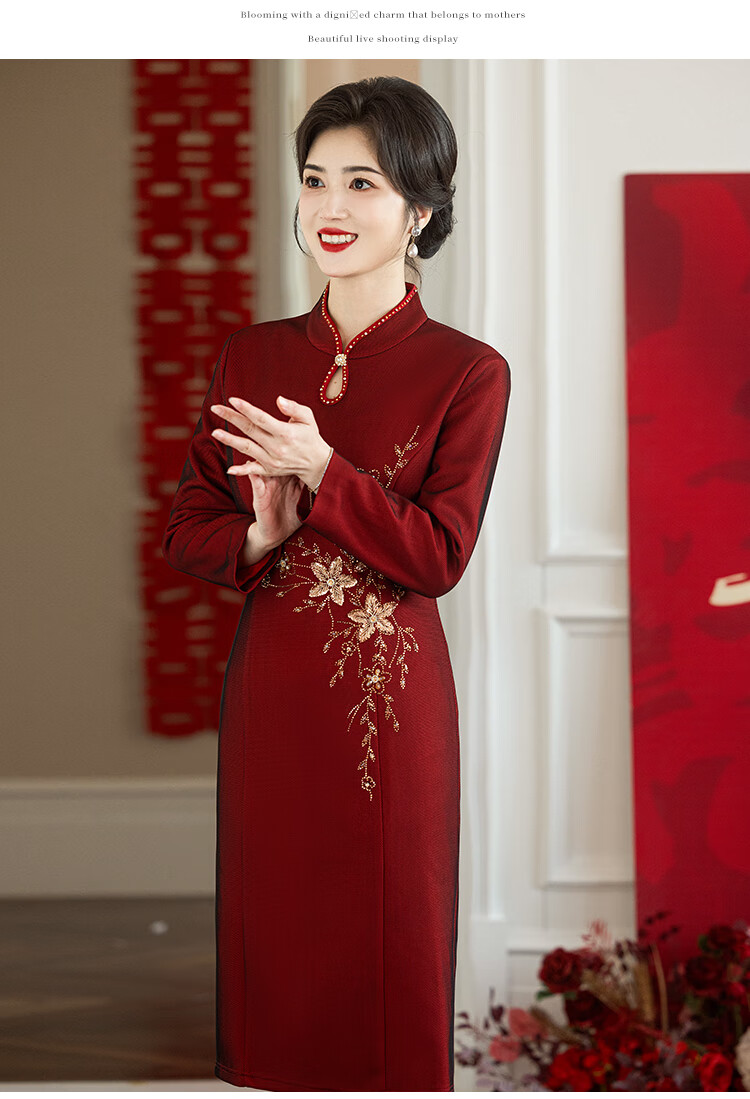Luo Meng brand wedding grandma's wedding banquet dress 2026 autumn and winter new style noble new Chinese cheongsam wedding mother dress star burgundy plus velvet long sleeve 2XL