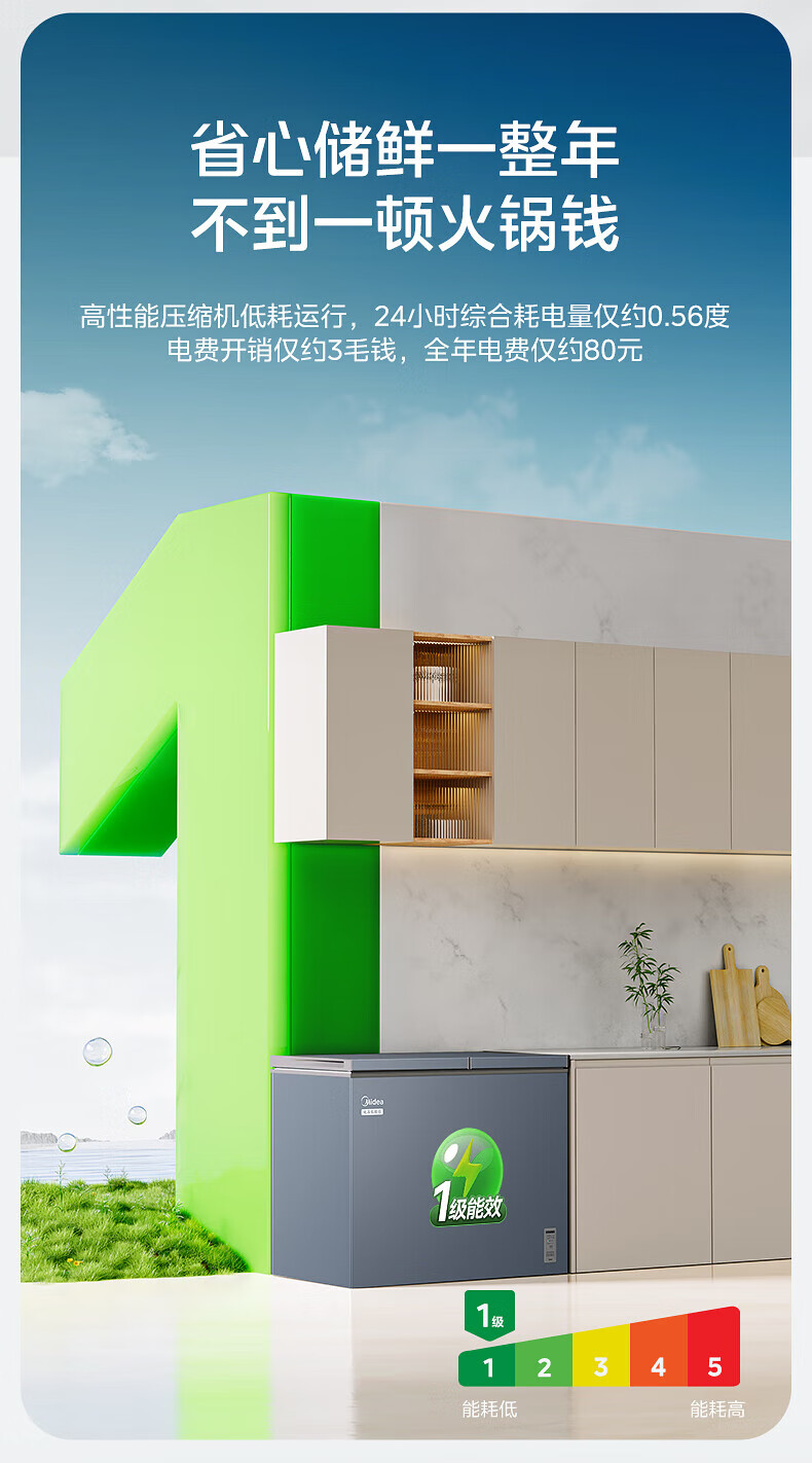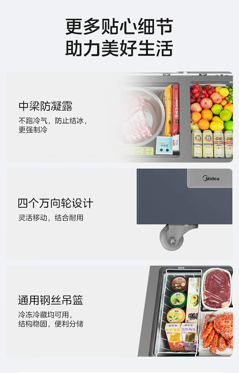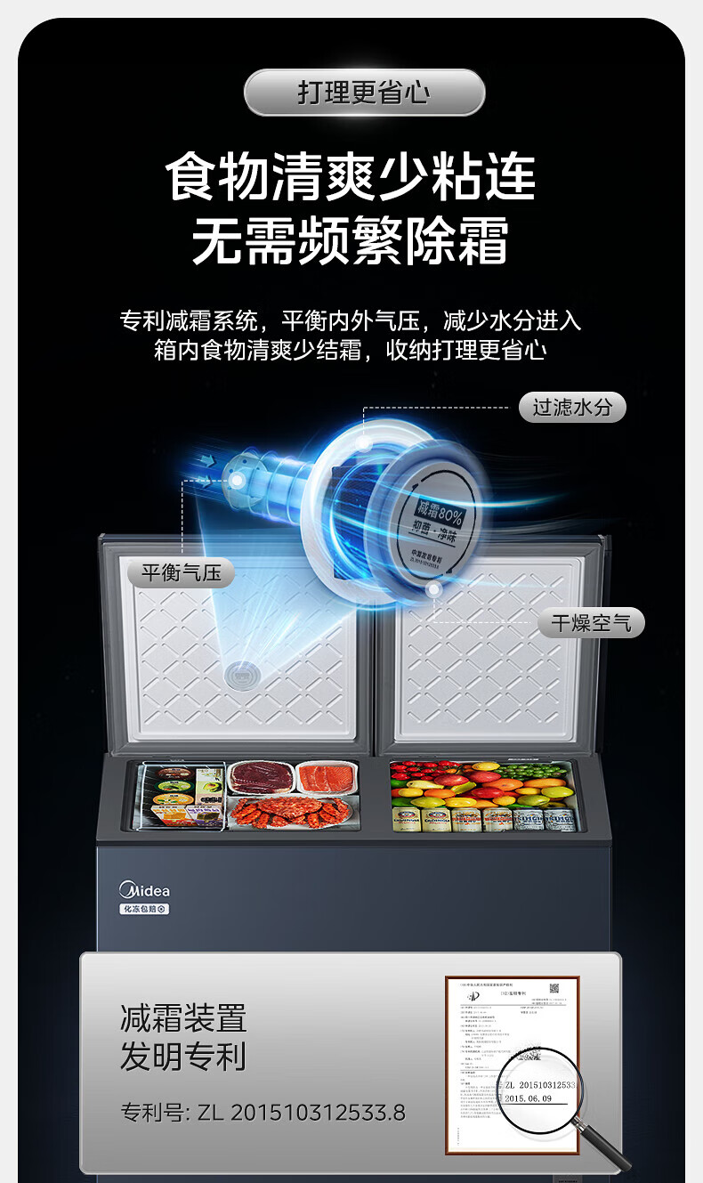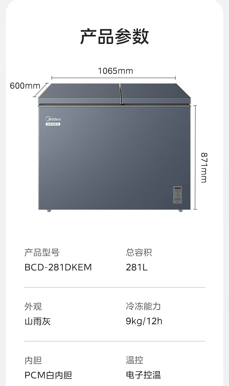 Midea 281L dual-temperature freezer household commercial first-class energy efficiency large-capacity horizontal freezer double-door double-box patented anti-frost electronic temperature control refrigeration and freezing dual-purpose fresh-keeping freezer 281L electronic temperature control 281DKEM