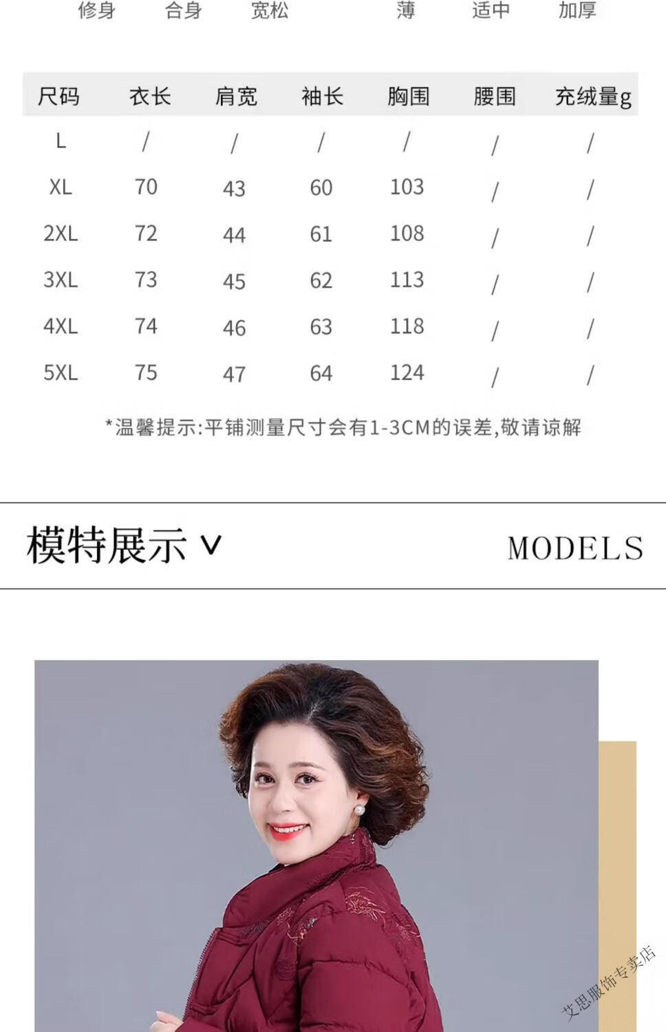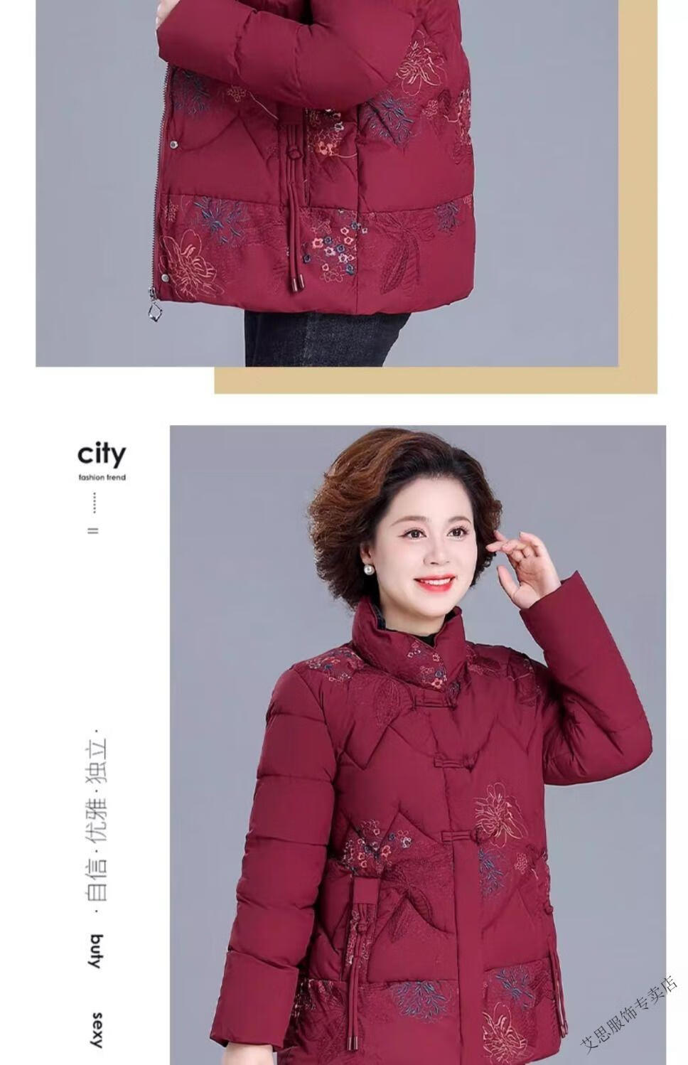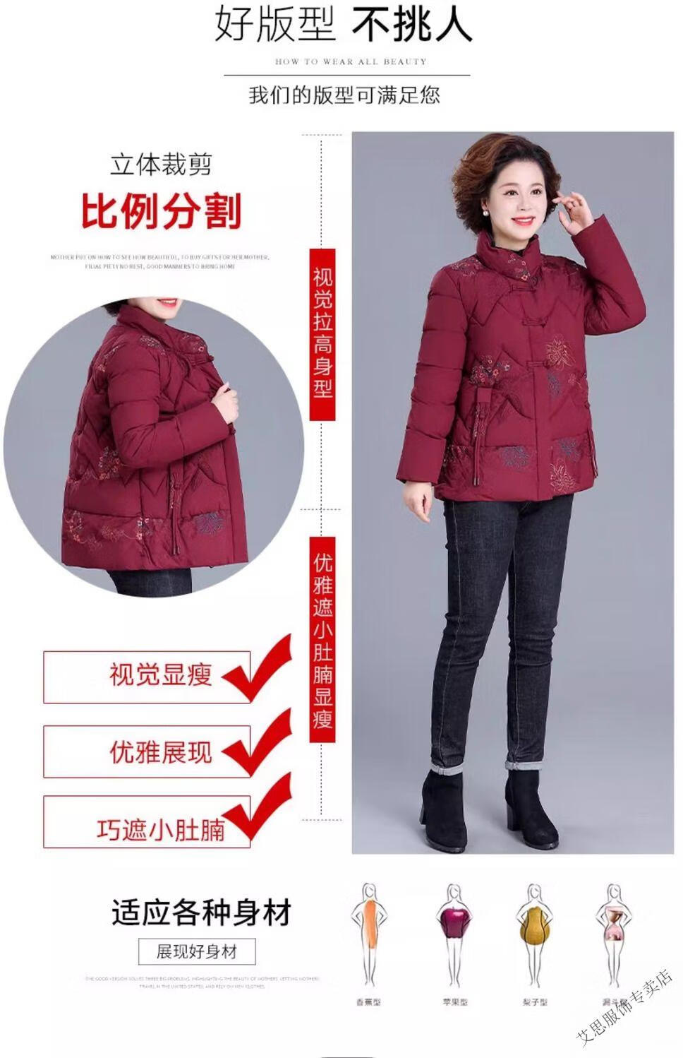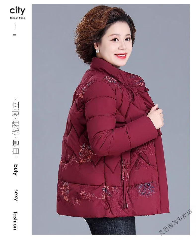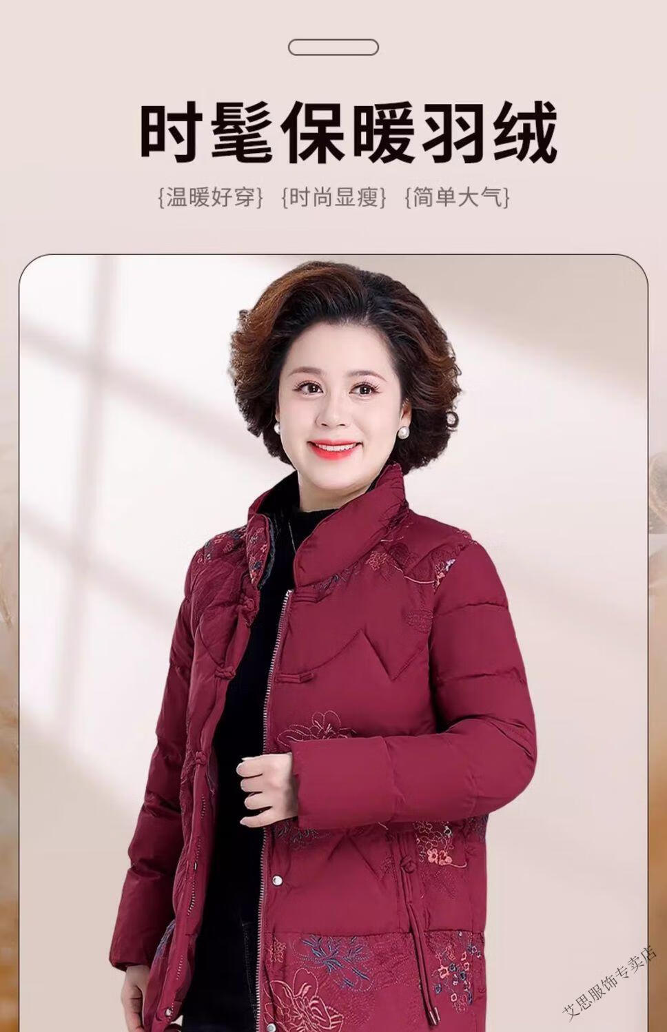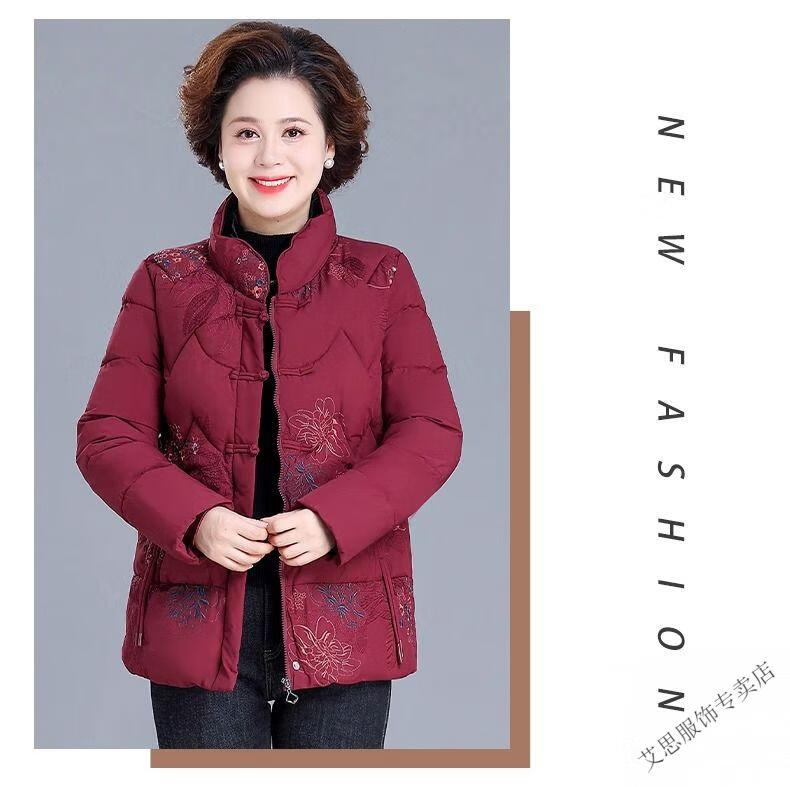 Hengyuanxiang 2026 New Fashion Mom Down Jacket Winter Clothing New Warm Autumn and Winter Embroidered Slim Jacket for Middle-aged and Young People Burgundy XL 100Jin Jin is equal to less than 0.5 kg