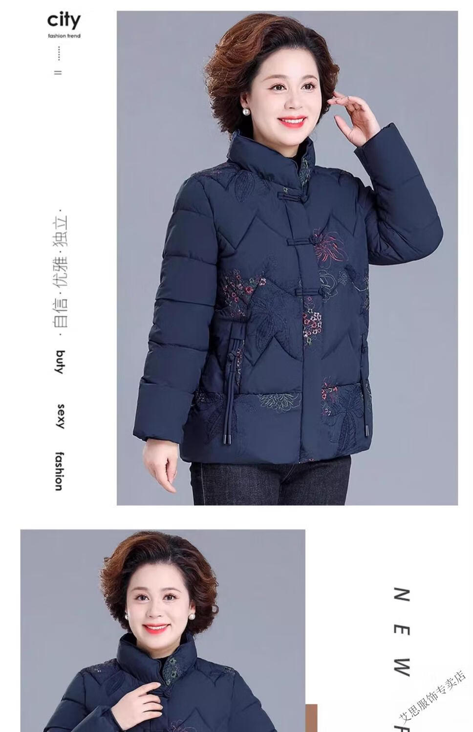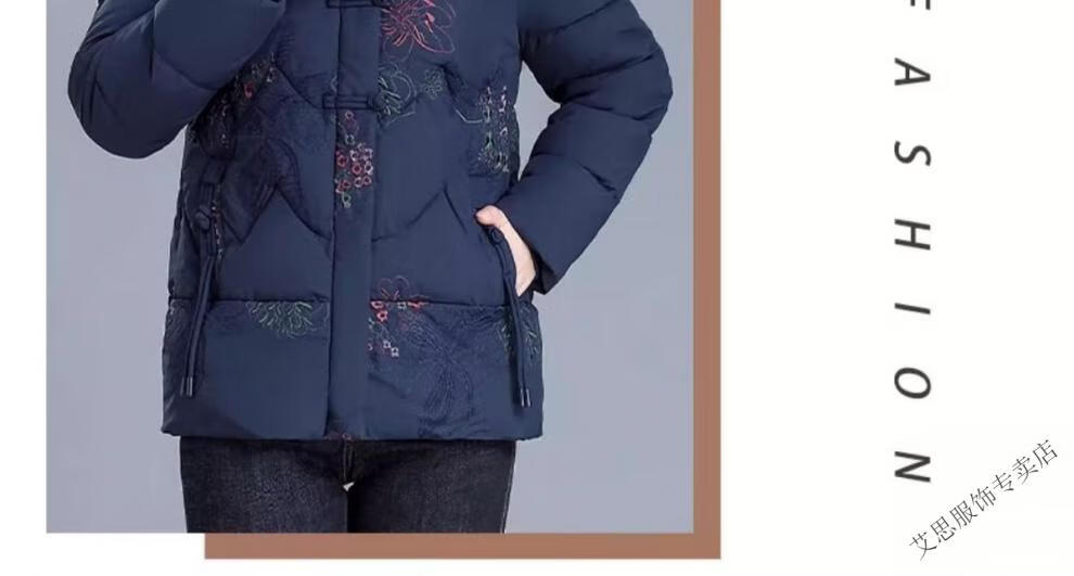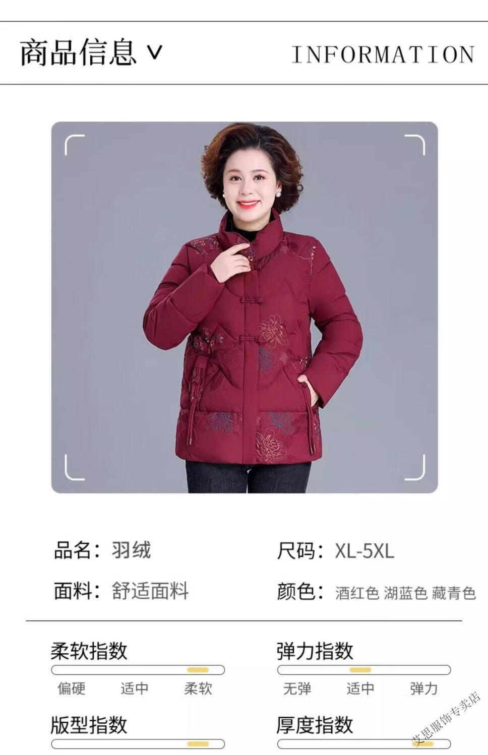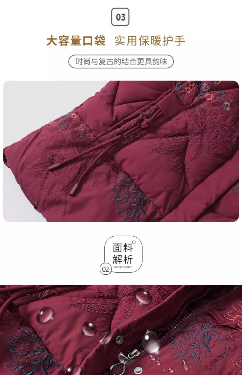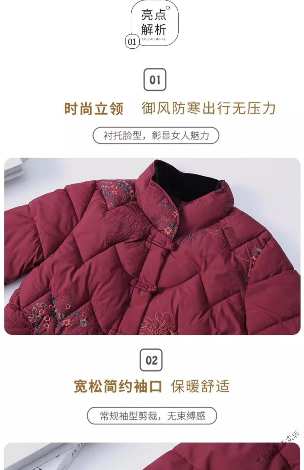 Hengyuanxiang 2026 New Fashion Mom Down Jacket Winter Clothing New Warm Autumn and Winter Embroidered Slim Jacket for Middle-aged and Young People Burgundy XL 100Jin Jin is equal to less than 0.5 kg