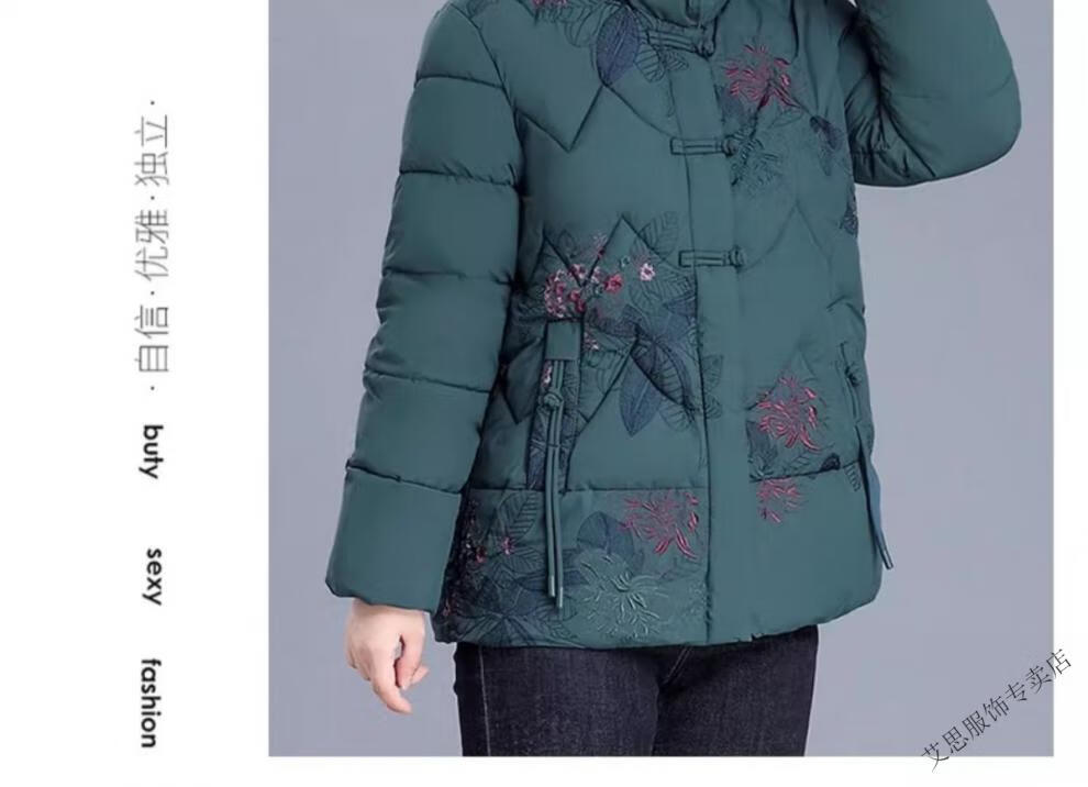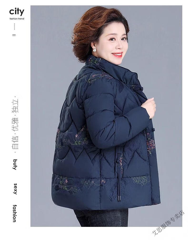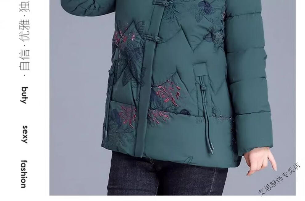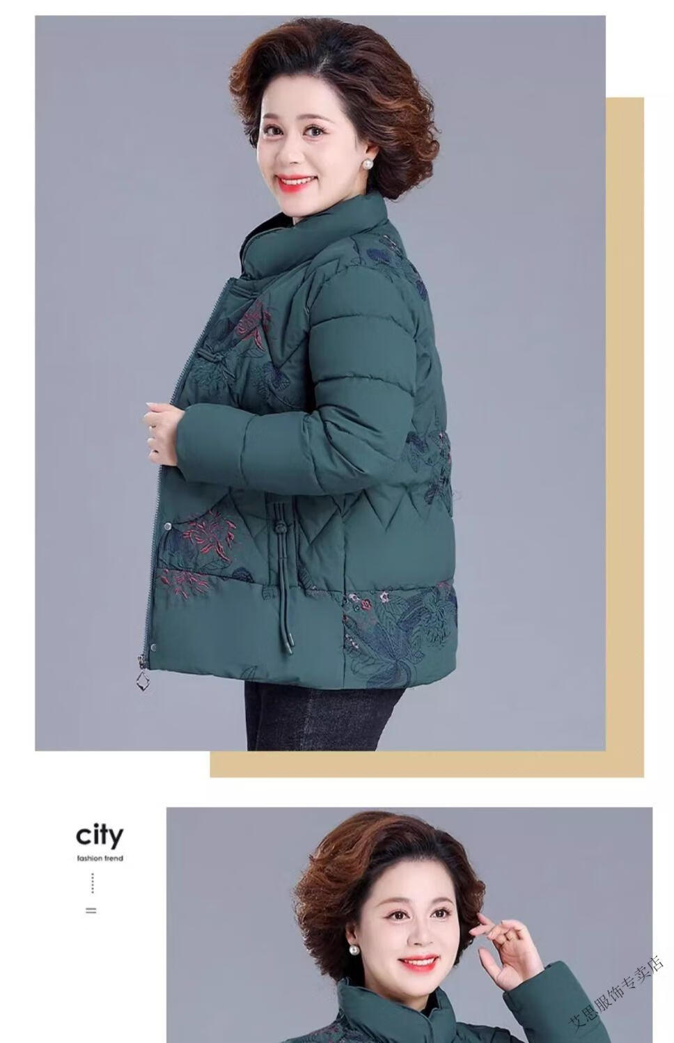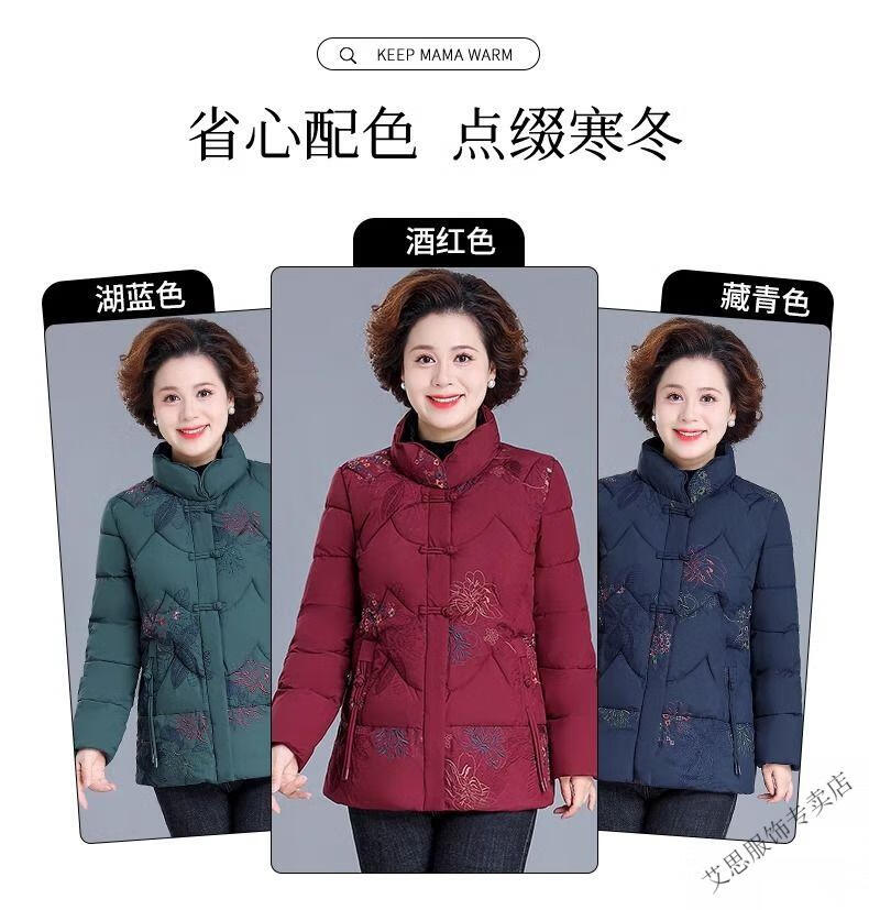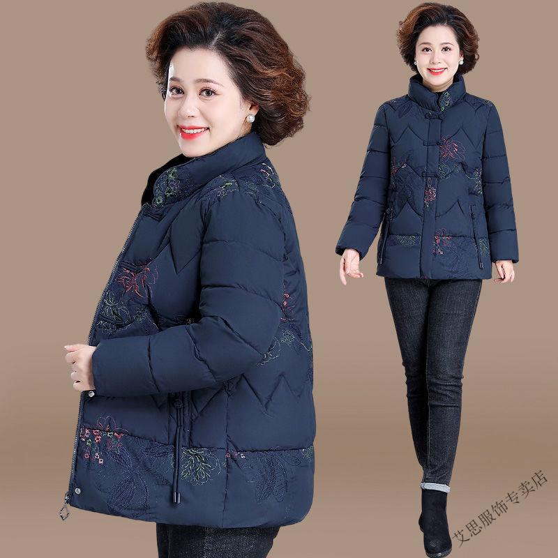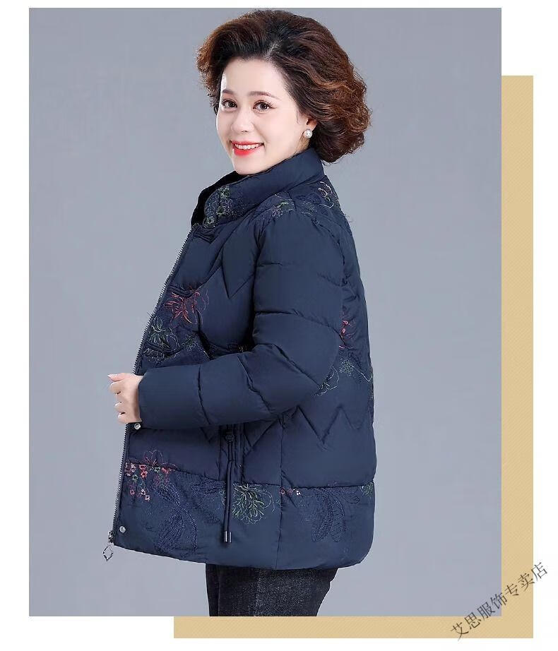 Hengyuanxiang 2026 New Fashion Mom Down Jacket Winter Clothing New Warm Autumn and Winter Embroidered Slim Jacket for Middle-aged and Young People Burgundy XL 100Jin Jin is equal to less than 0.5 kg