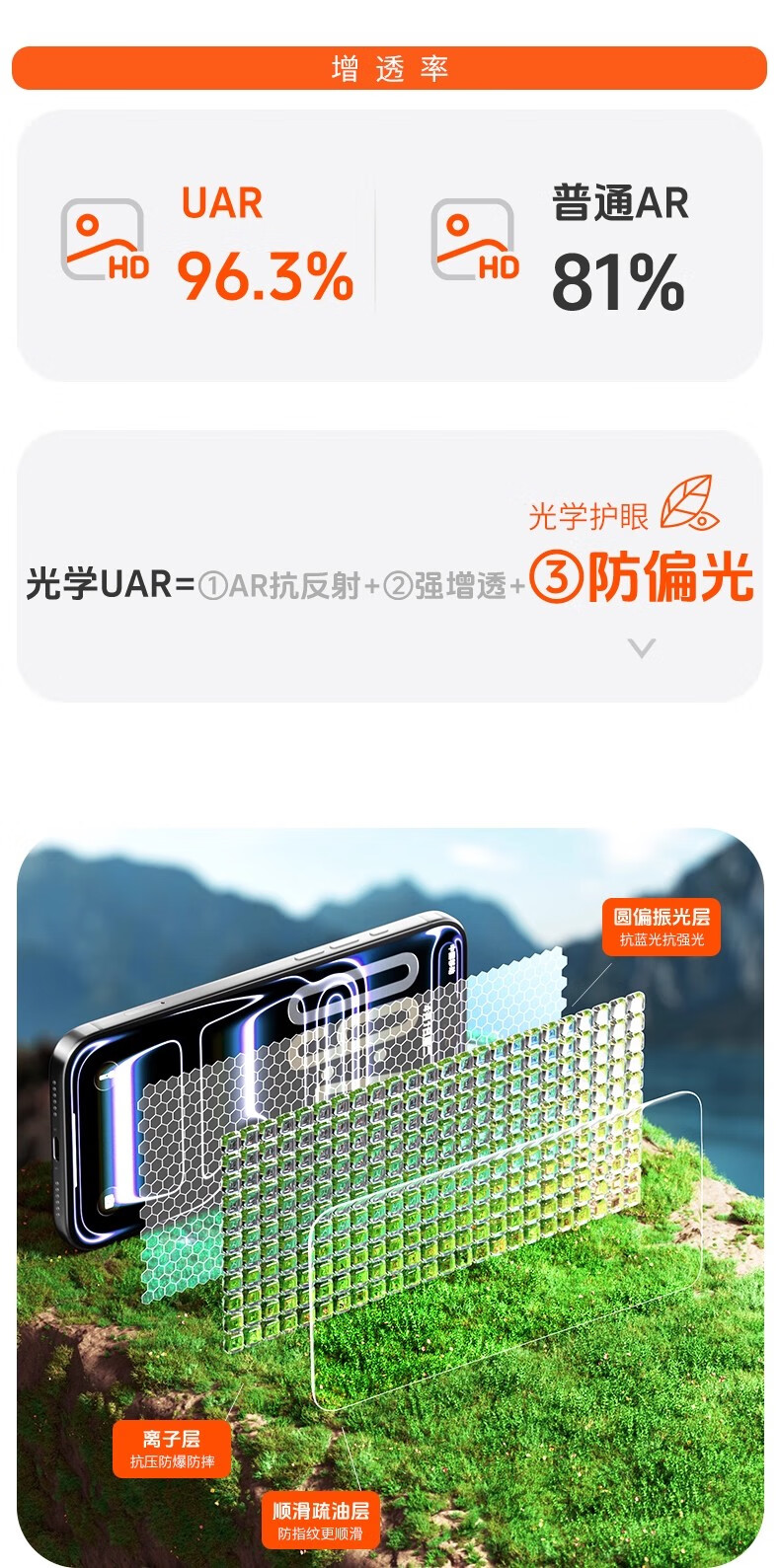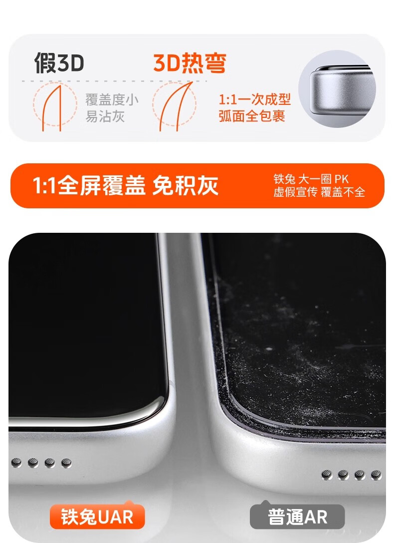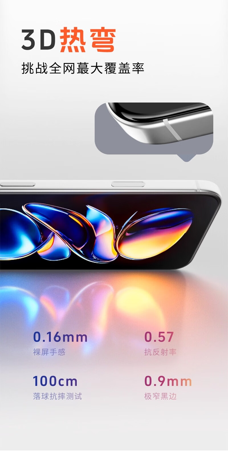 Iron Rabbit zero-sensitive film ultra AR anti-reflective + 3D hot bending, suitable for Apple 17promax tempered film iPhone16 mobile phone full screen protective film UAR anti-reflective ultra-thin air as thin as 0.2mm 1 piece + film artifact optical UAR iPhone 17