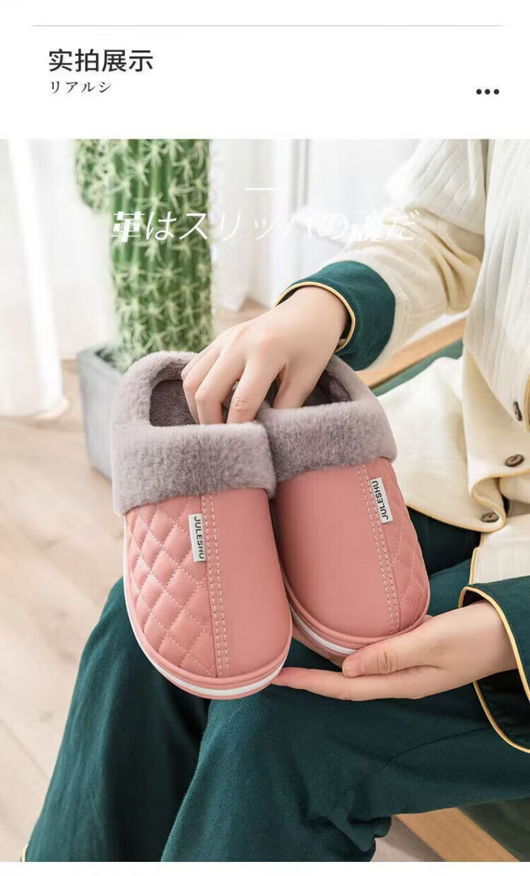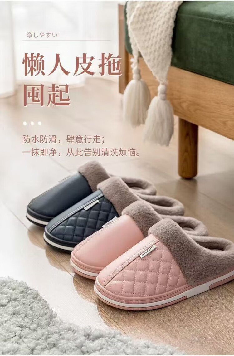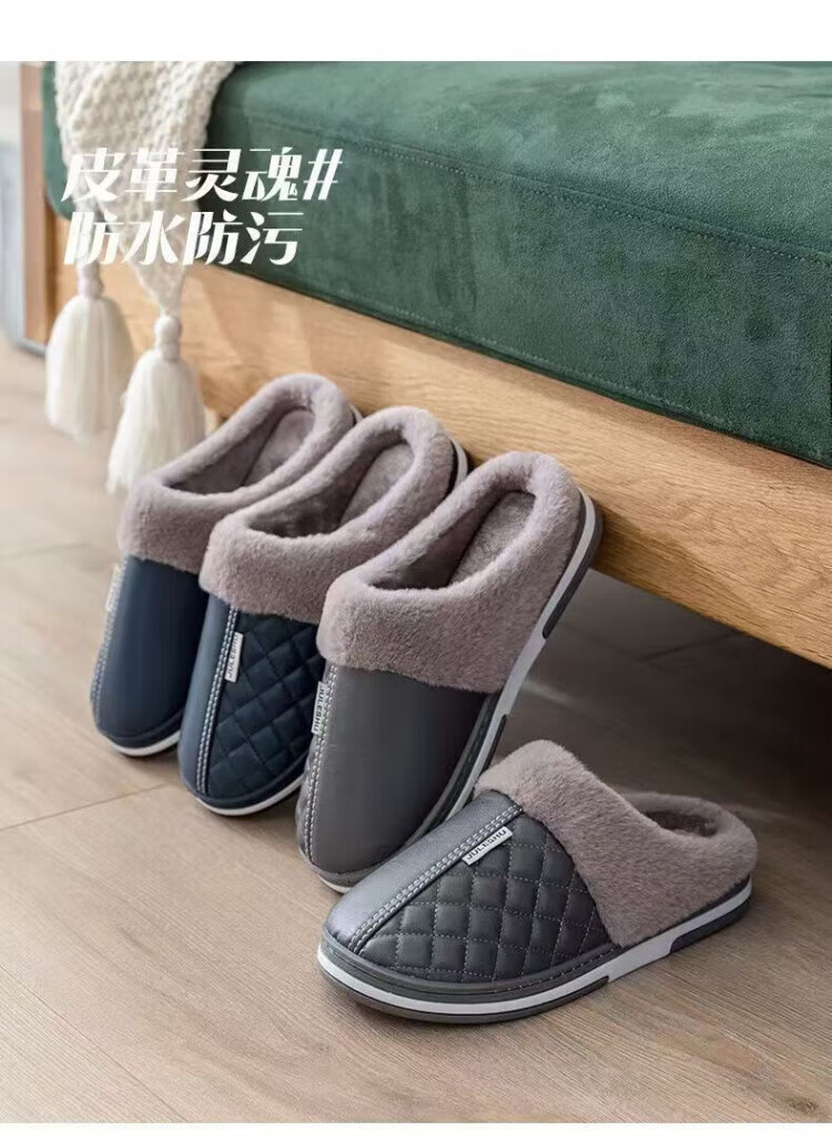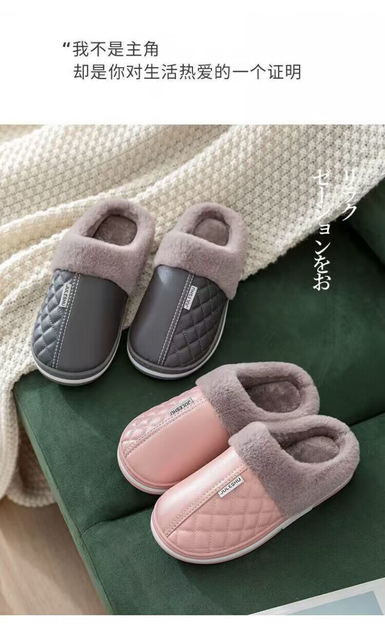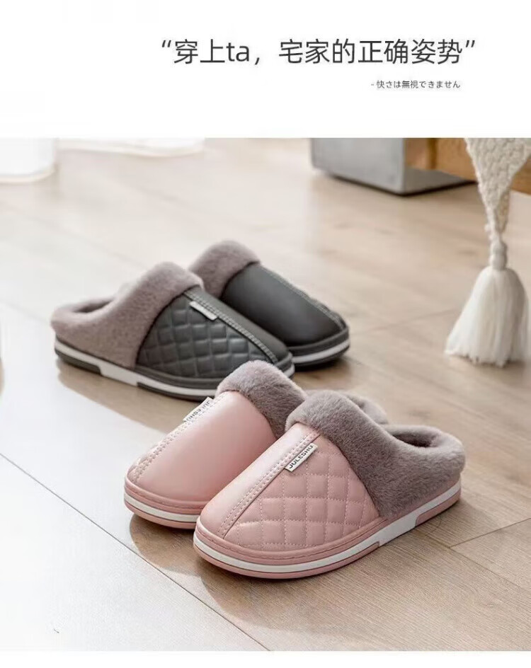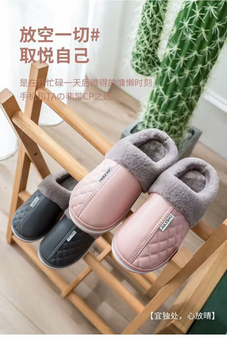 He Jiagong cotton slippers for men and women in winter with thick soles for couples Korean style home indoor non-slip warm winter cotton slippers gray chao warm plush embroidery 35-36 36-37 suitable