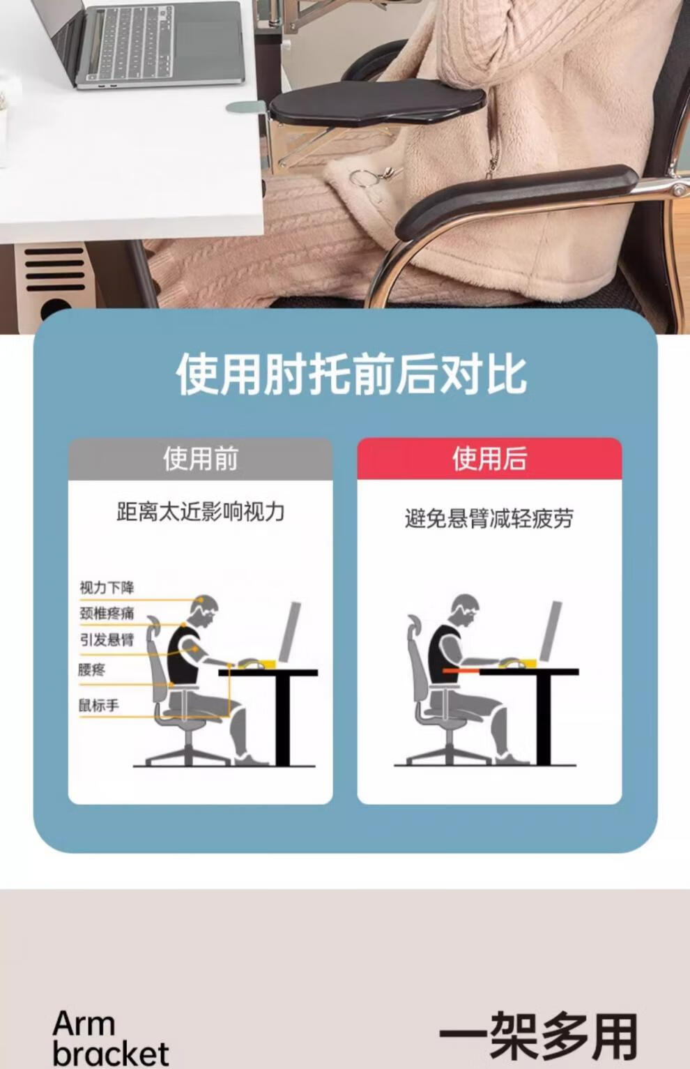 Razer Computer Arm Elbow Rest Desktop Extension Desk Mouse Wrist Pad Hand Rest Arm Support Frame Extension Folding Black