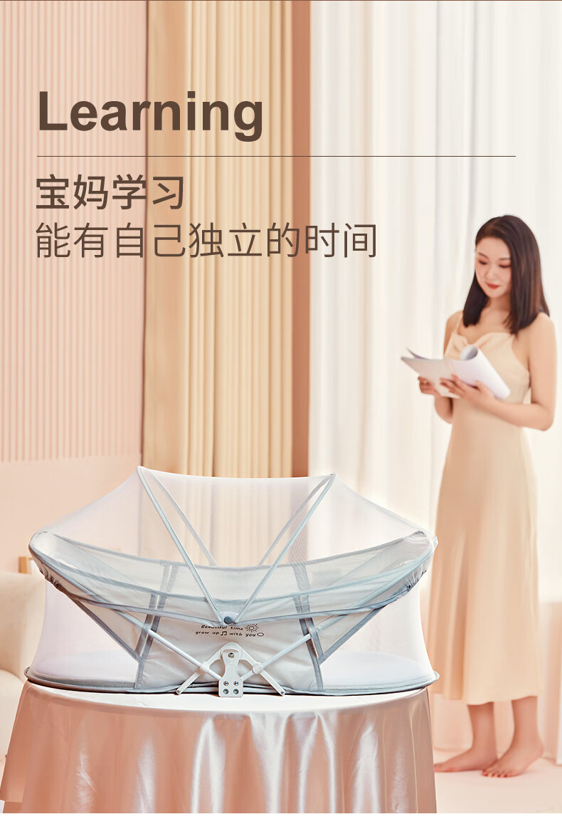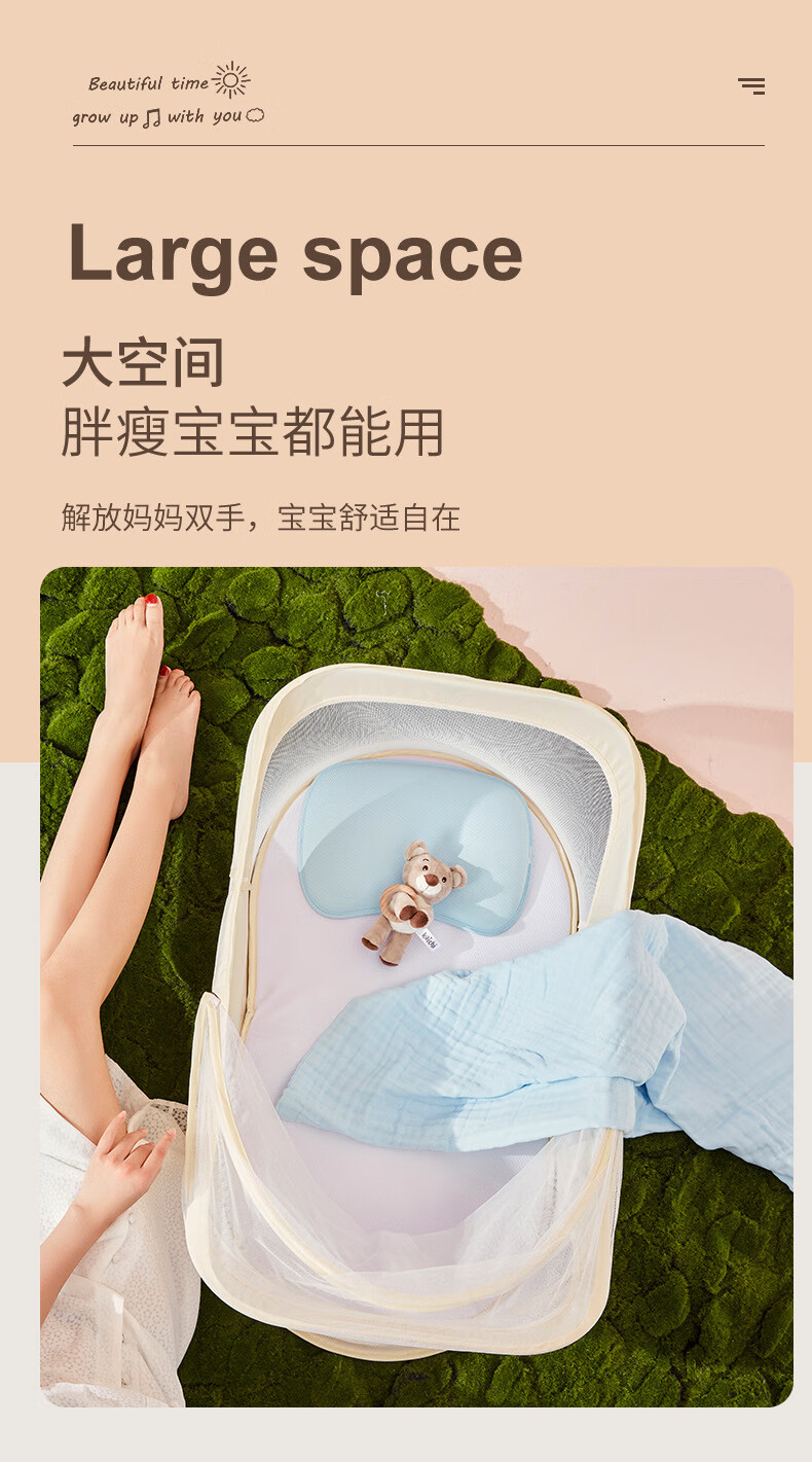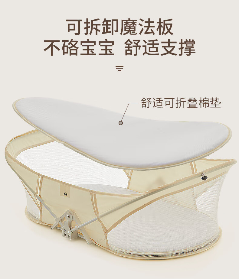 Portable bed-in-bed baby crib foldable newborn bed mobile bionic uterus bed anti-pressure light gray
