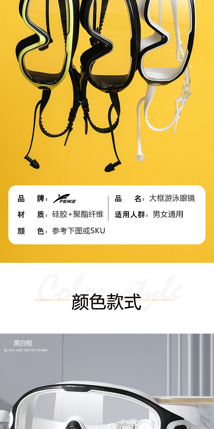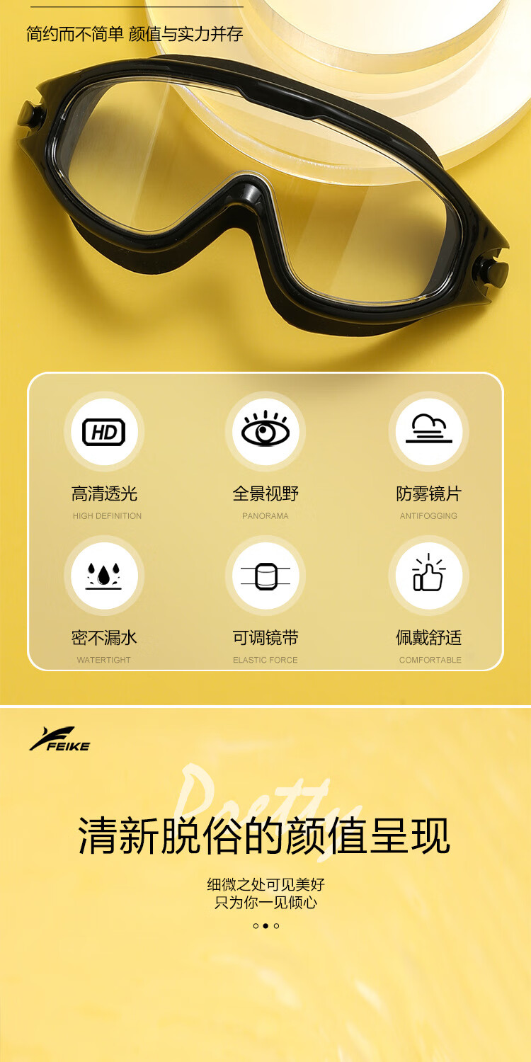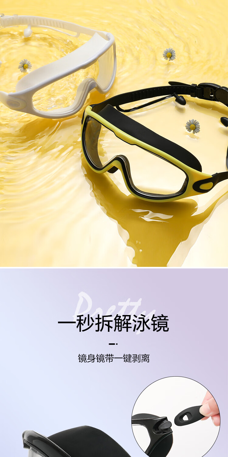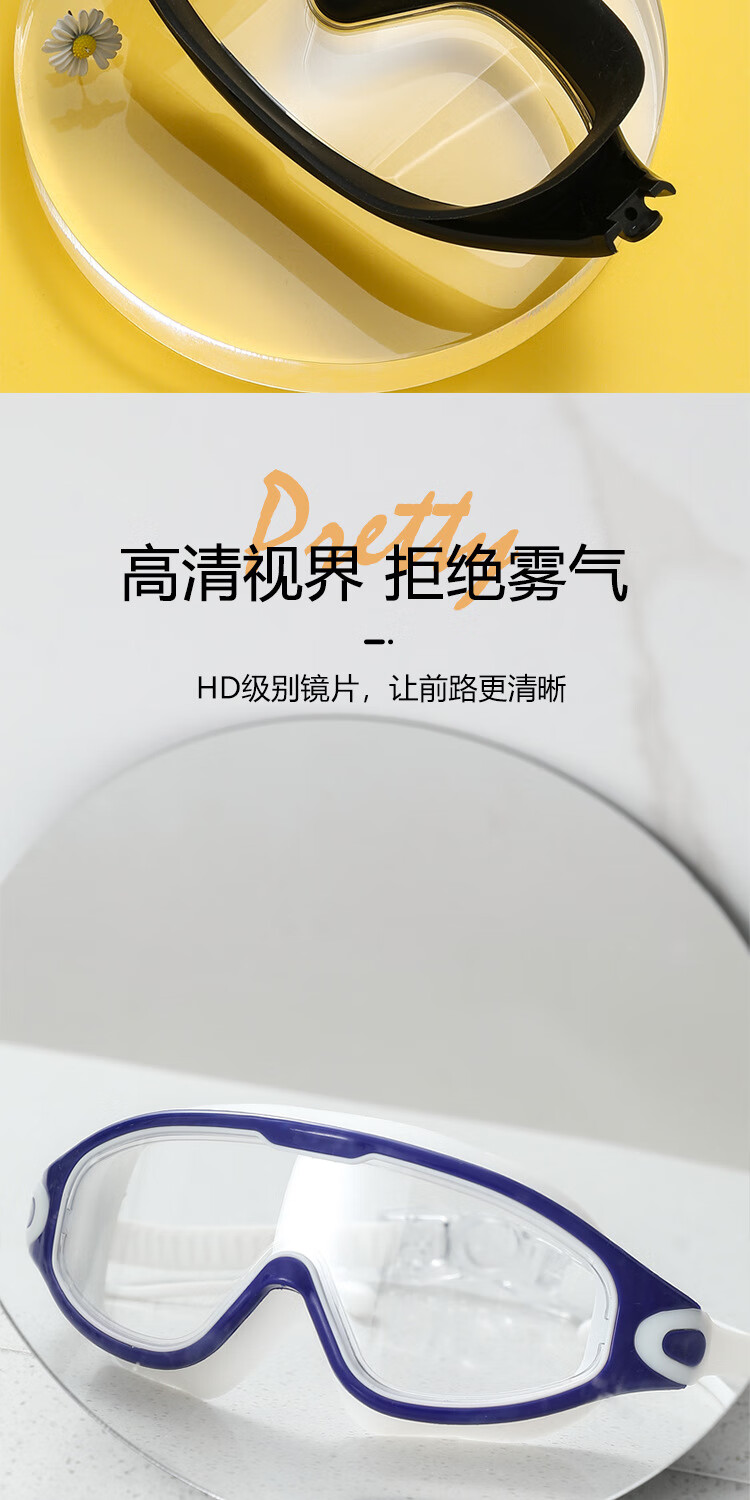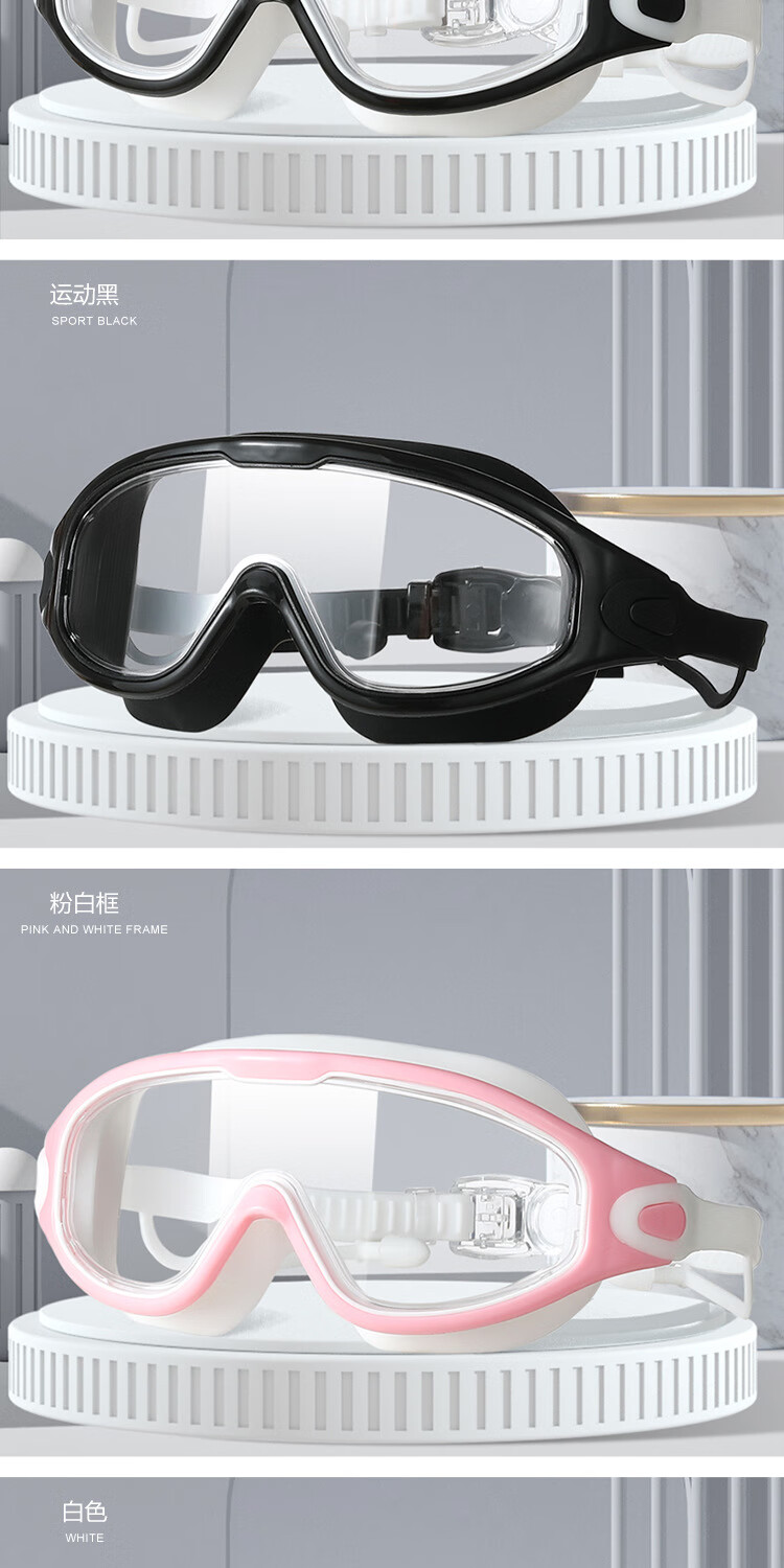 Swimming goggles for adults and men, HD waterproof, anti-fog, electroplated swimming goggles, flat large frame swimming goggles, swimming cap set, transparent style - 8032 large frame black (bag) + swimming cap + ear plugs and nose clip