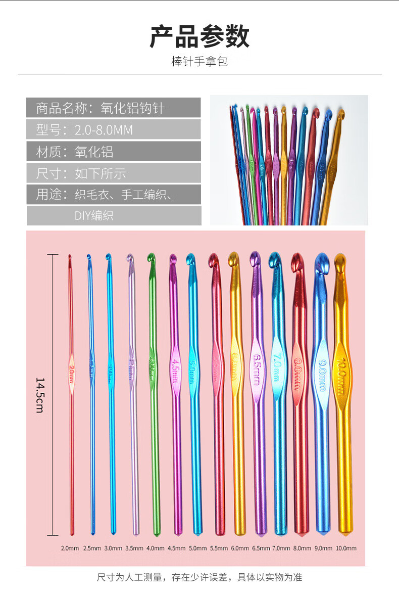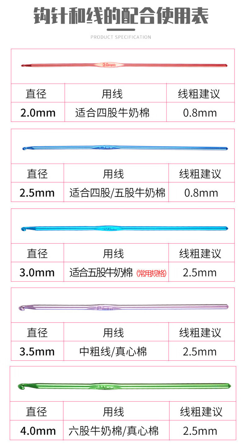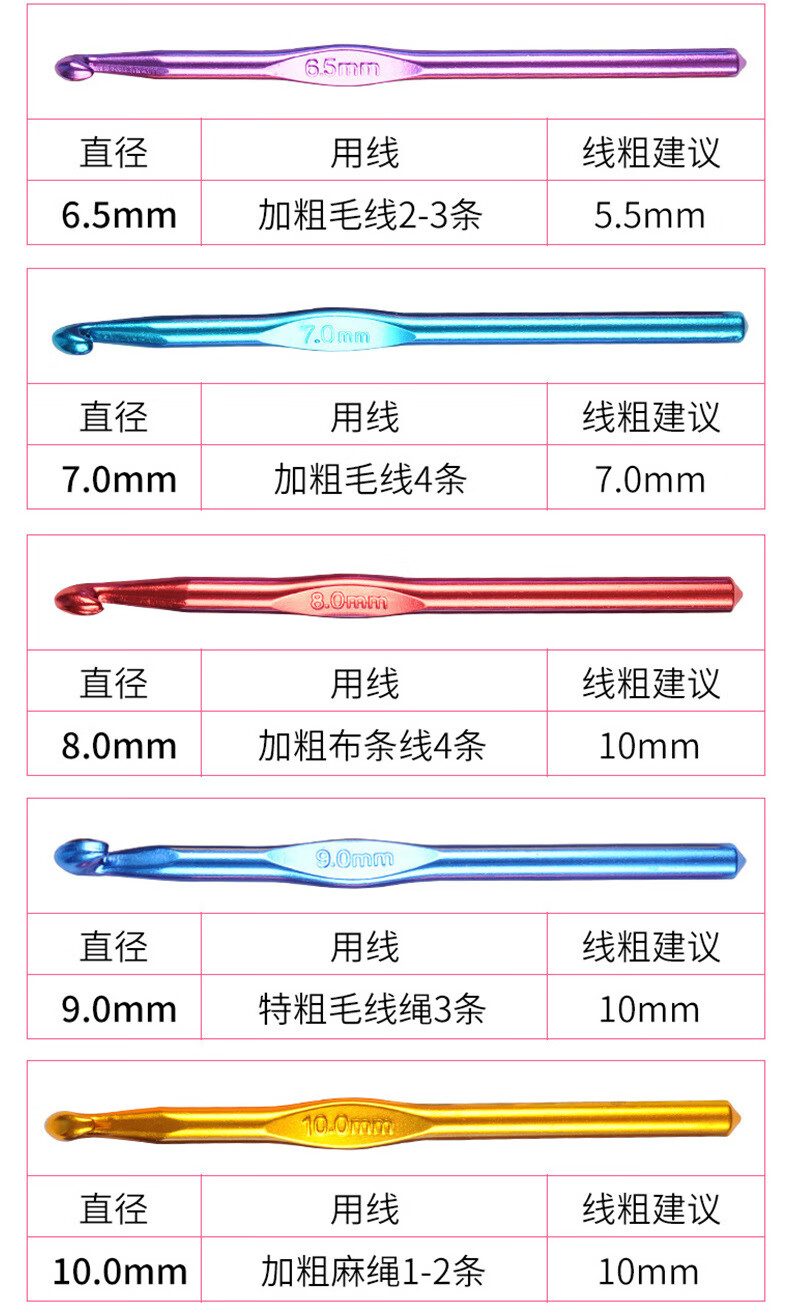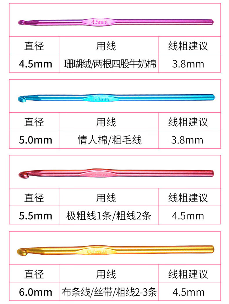 Colorful aluminum oxide crochet hooks, high-end metal crochet hooks, handmade DIY knitting tools, a complete set of wool thick crochet hooks, 4.0mm 1 piece