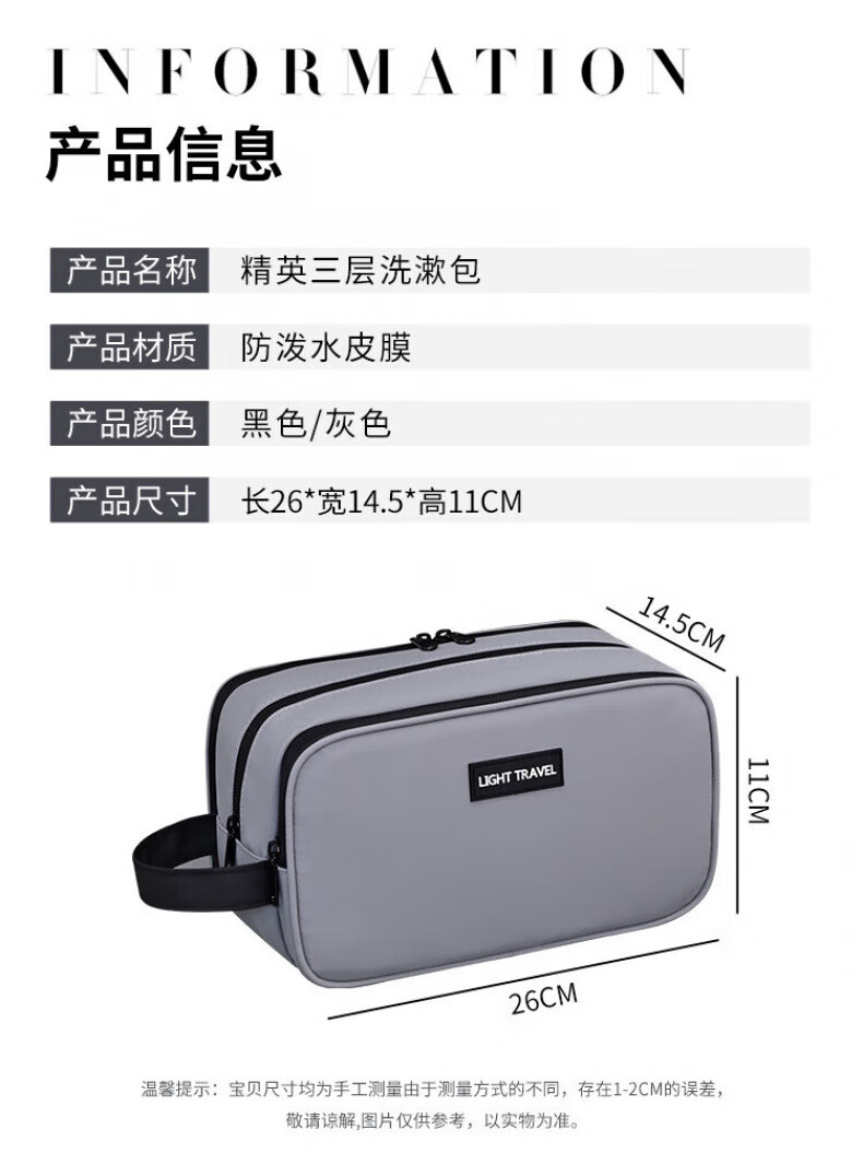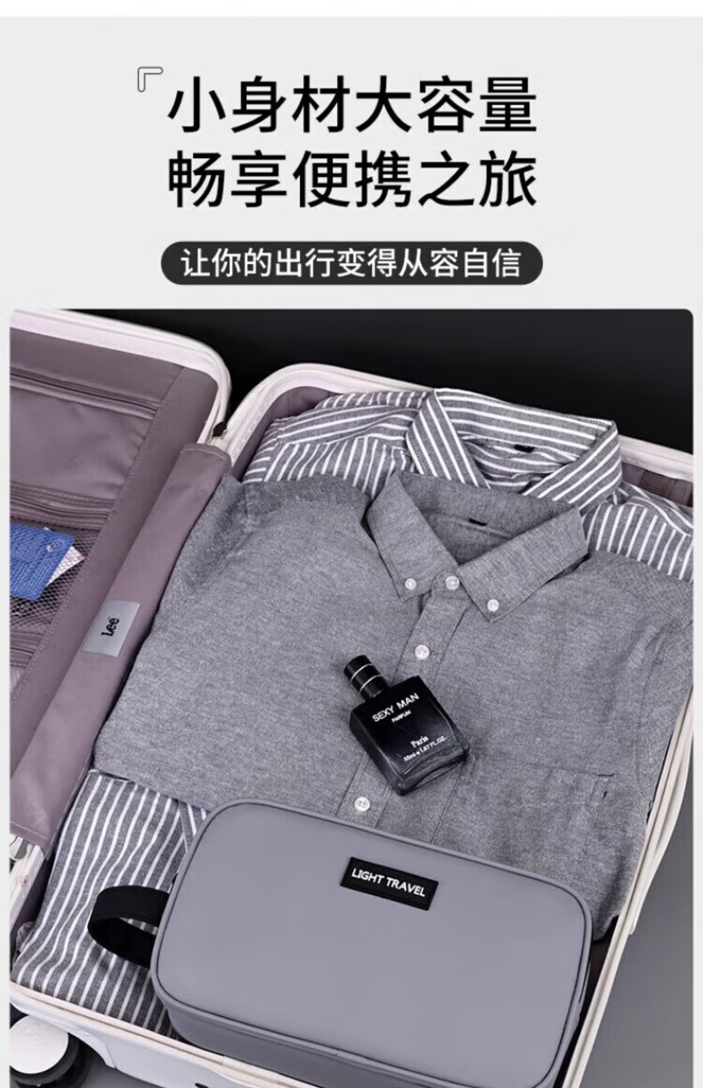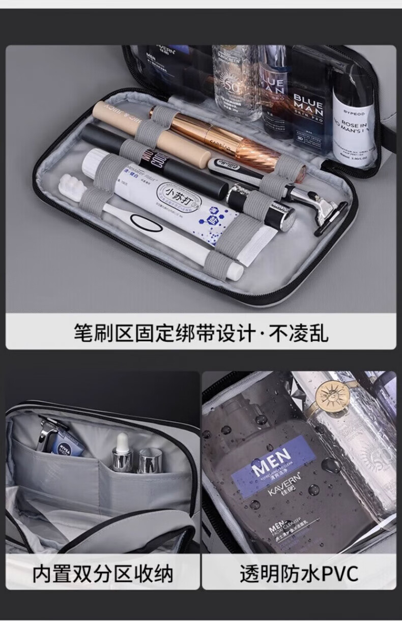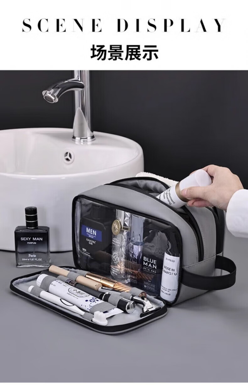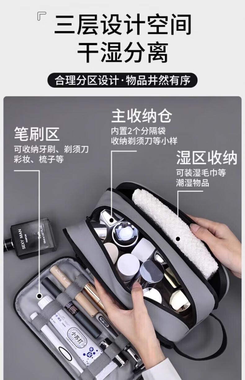 WCZ German high-end toiletry bag for business trips for men, wet and dry separation waterproof portable set for women, large capacity, small size, three-layer film, gray
