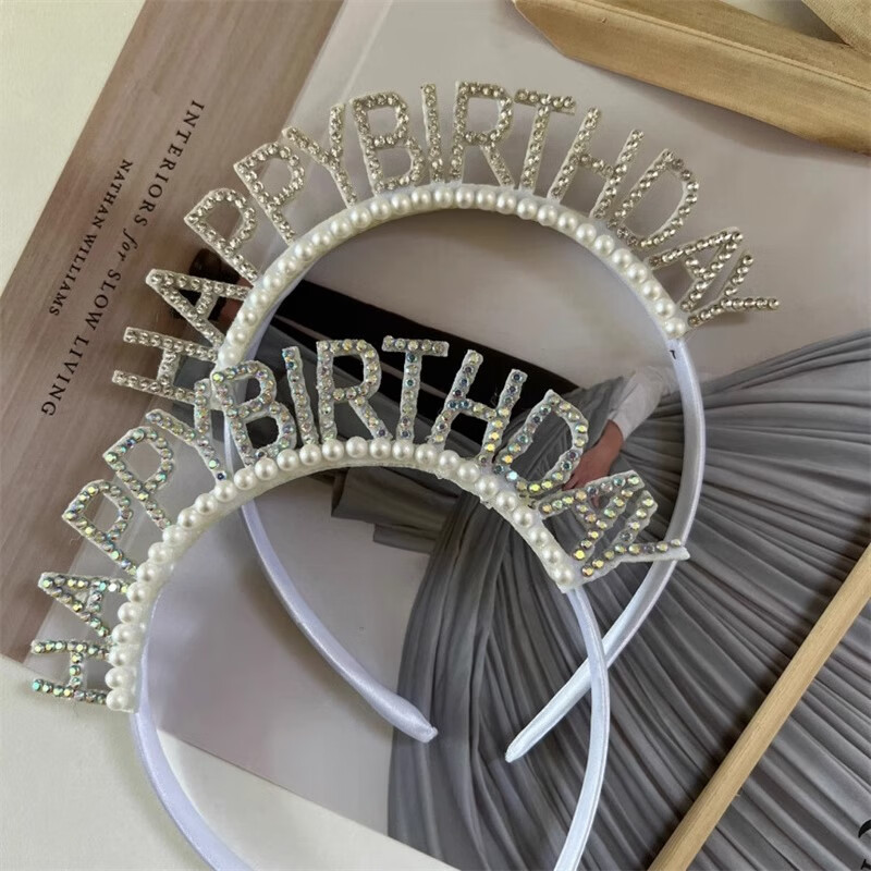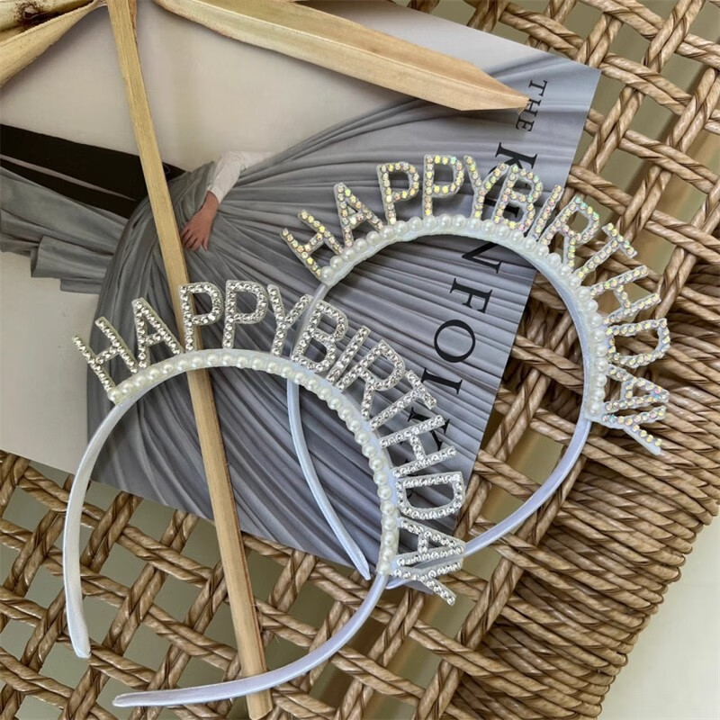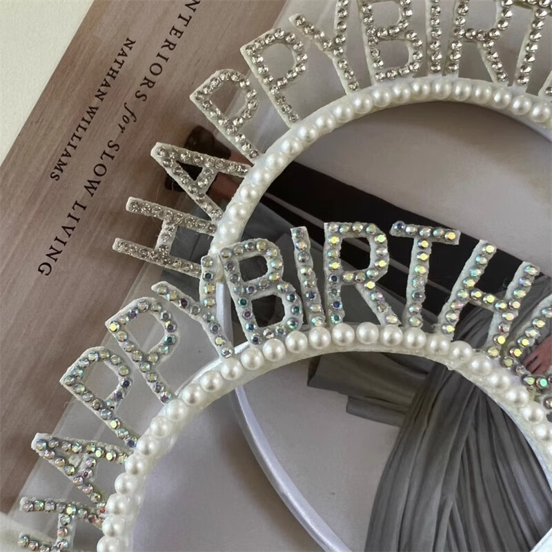 Ins pearl diamond headband birthday decoration party crystal accessories children baby internet celebrity photo props atmosphere one full diamond headband