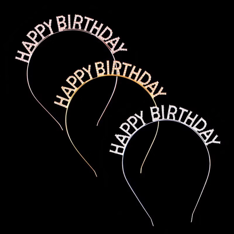 Happy Birthday Headband Metal Letter Goddess Cake Crown Iron Art Crystal Diamond Queen Photo Prop Silver 1