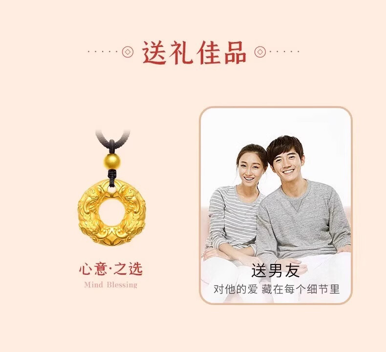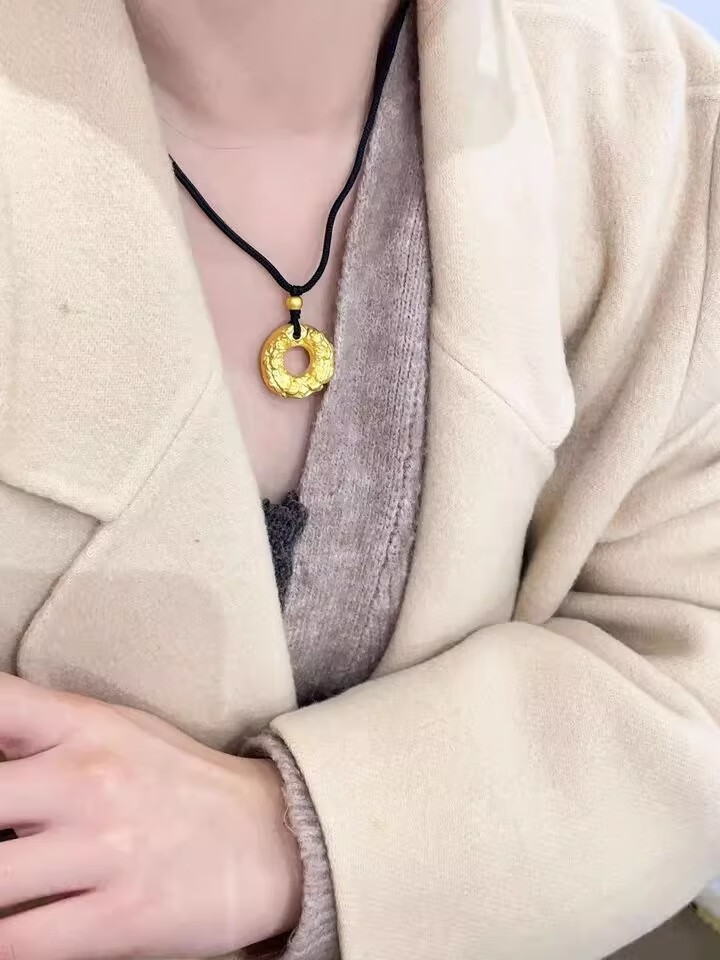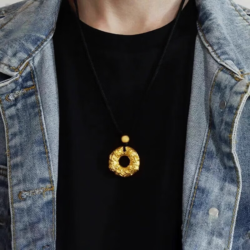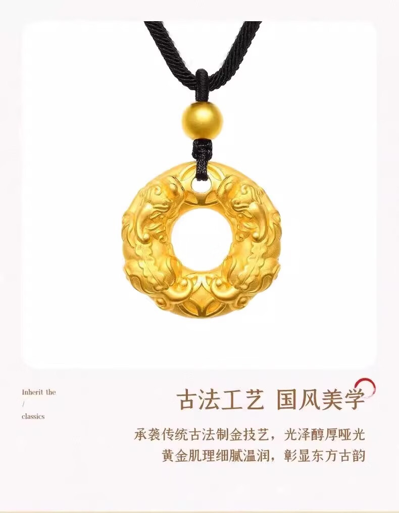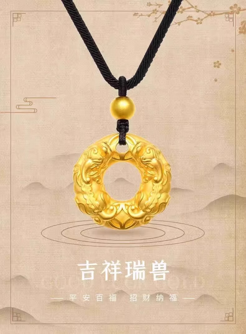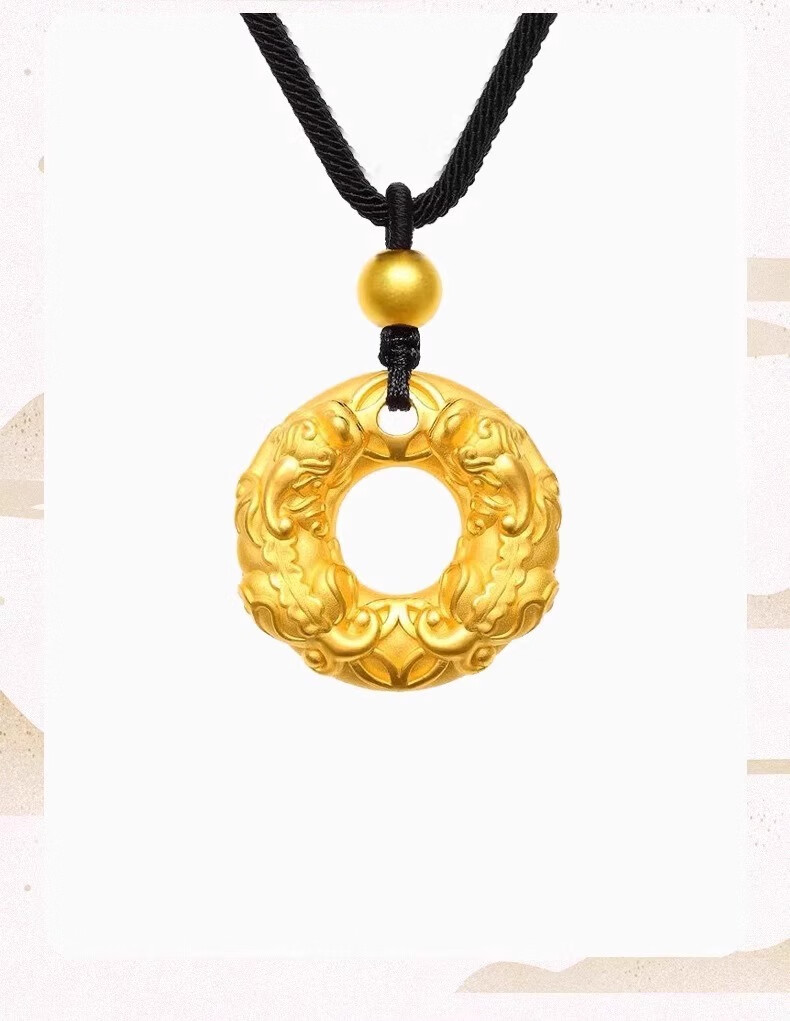 Miaojufu gold Pixiu peace buckle pendant gold-plated silver 999 transfer beads birth year necklace for men and women birthday gifts Pixiu peace buckle single pendant + 1 gold bead + black rope necklace