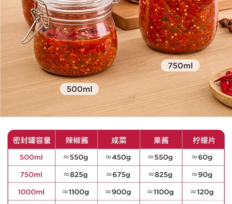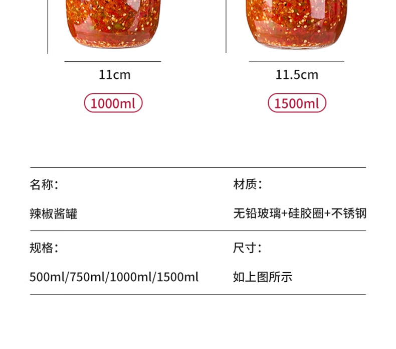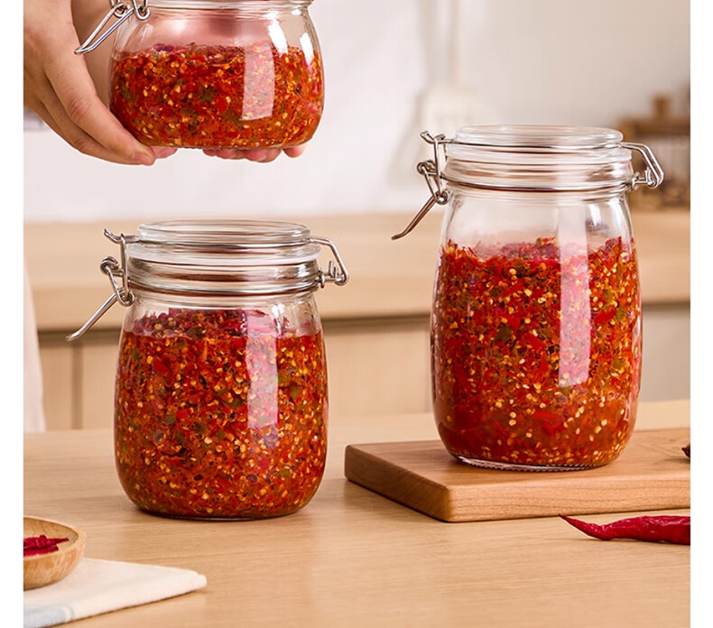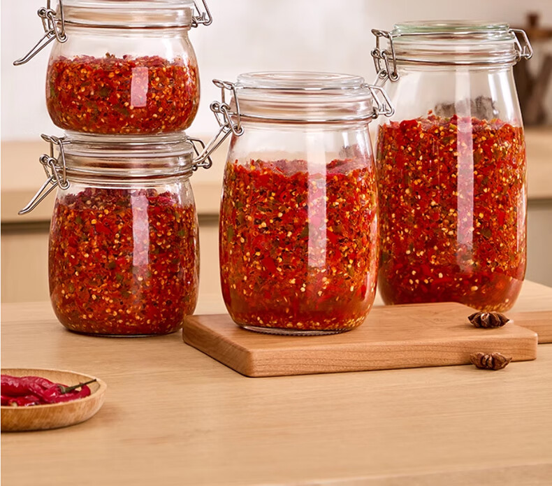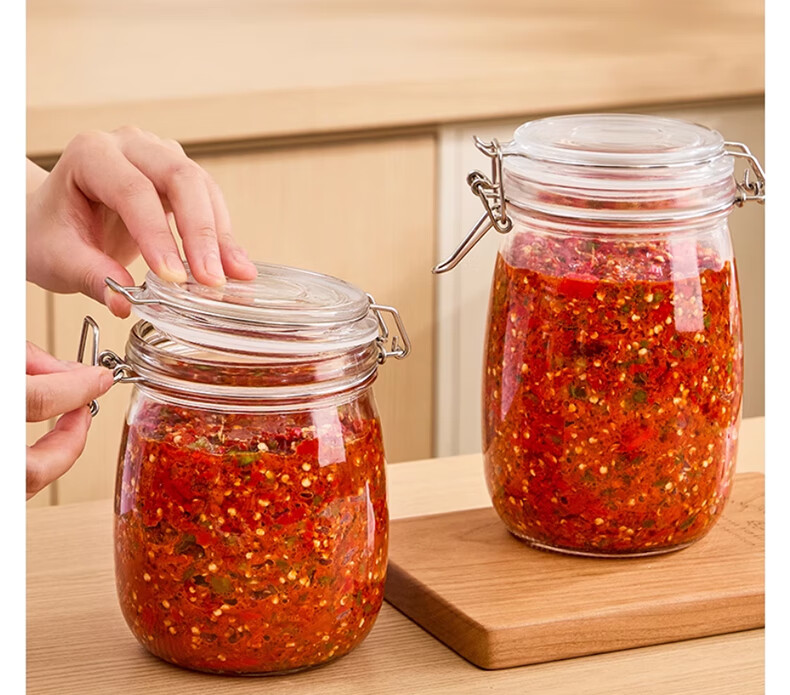 WELLMEET chili sauce special jar chopped pepper bottle garlic sauce fermentation food grade glass sealed jar home-made pickles 1000ML thickened glass silicone seal