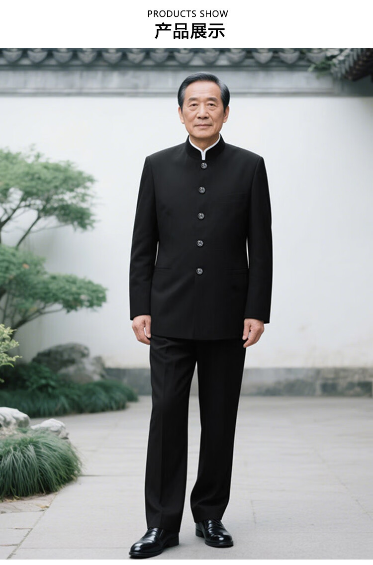Playboy (PLAYBOY) middle-aged and elderly father's suit 2025 autumn new new Chinese style stand collar tunic suit dad wedding banquet suit black tunic suit two-piece suit top + pants XL