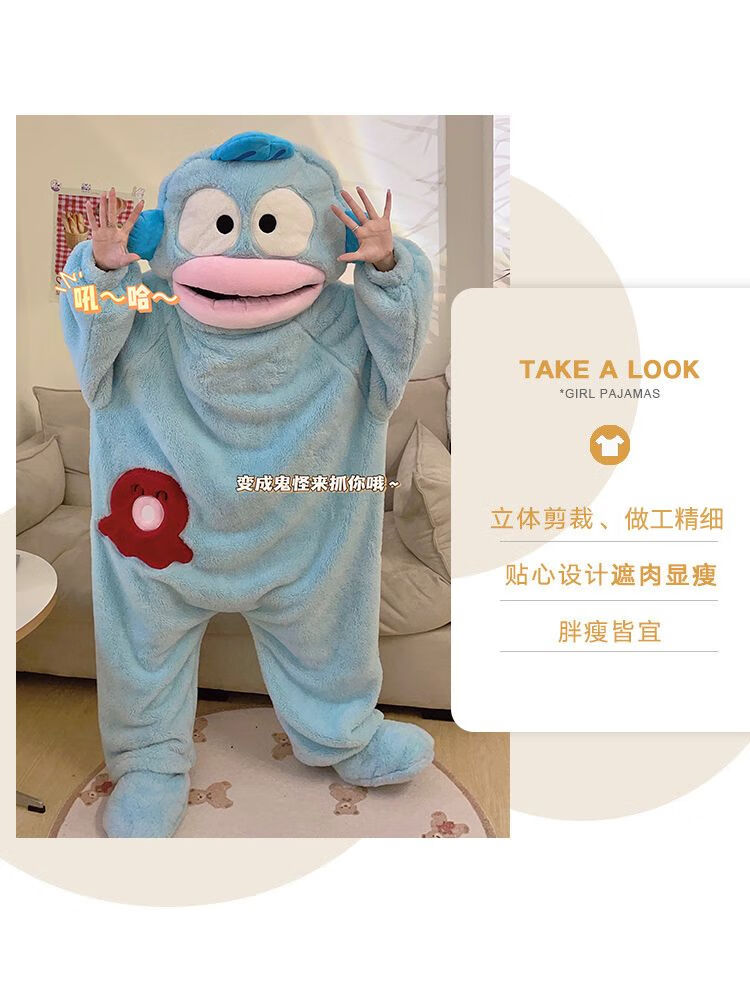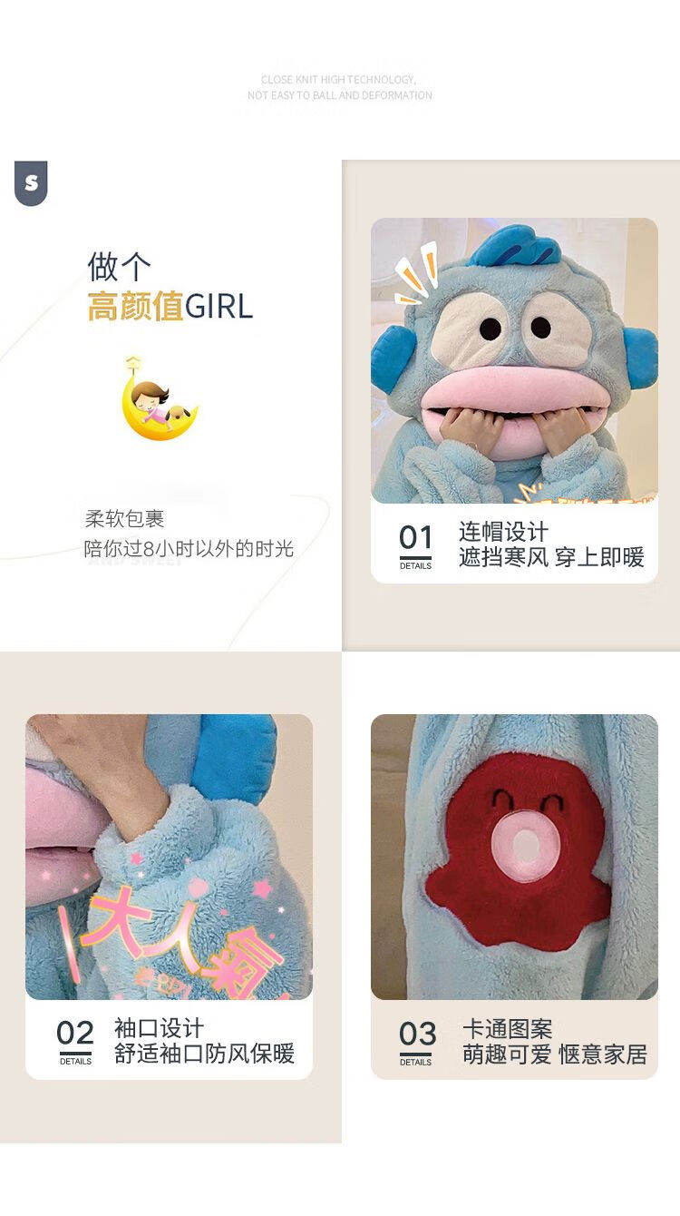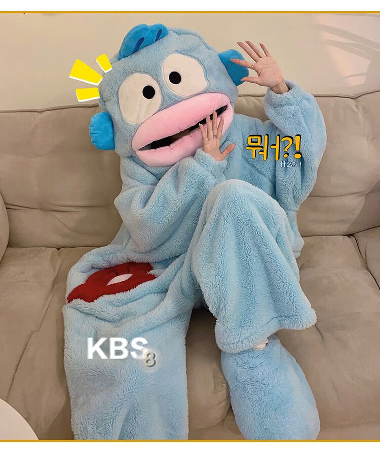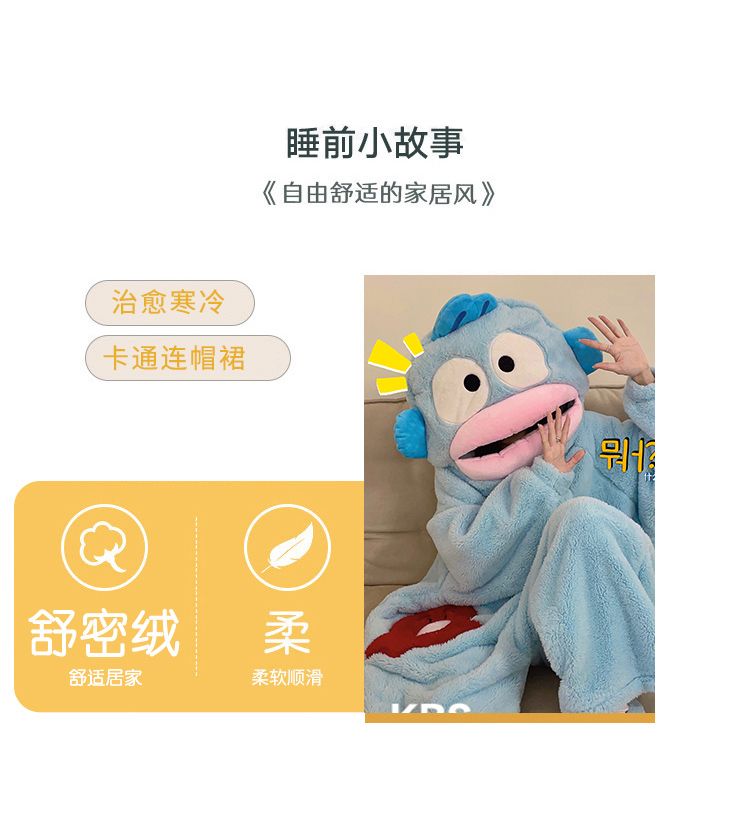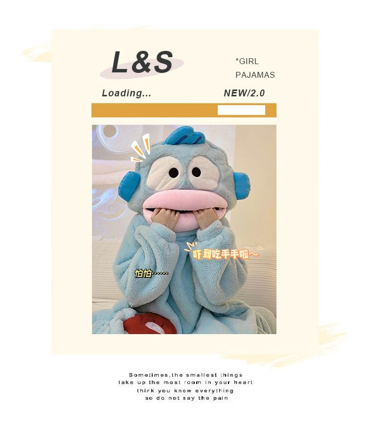 Ugly fish one-piece pajamas autumn and winter coral velvet clownfish new plus velvet thickened cute cartoon one-piece home clothes 50822 clownfish one-piece velvet light blue L 100-120Jin Jin equals 0.5 kg