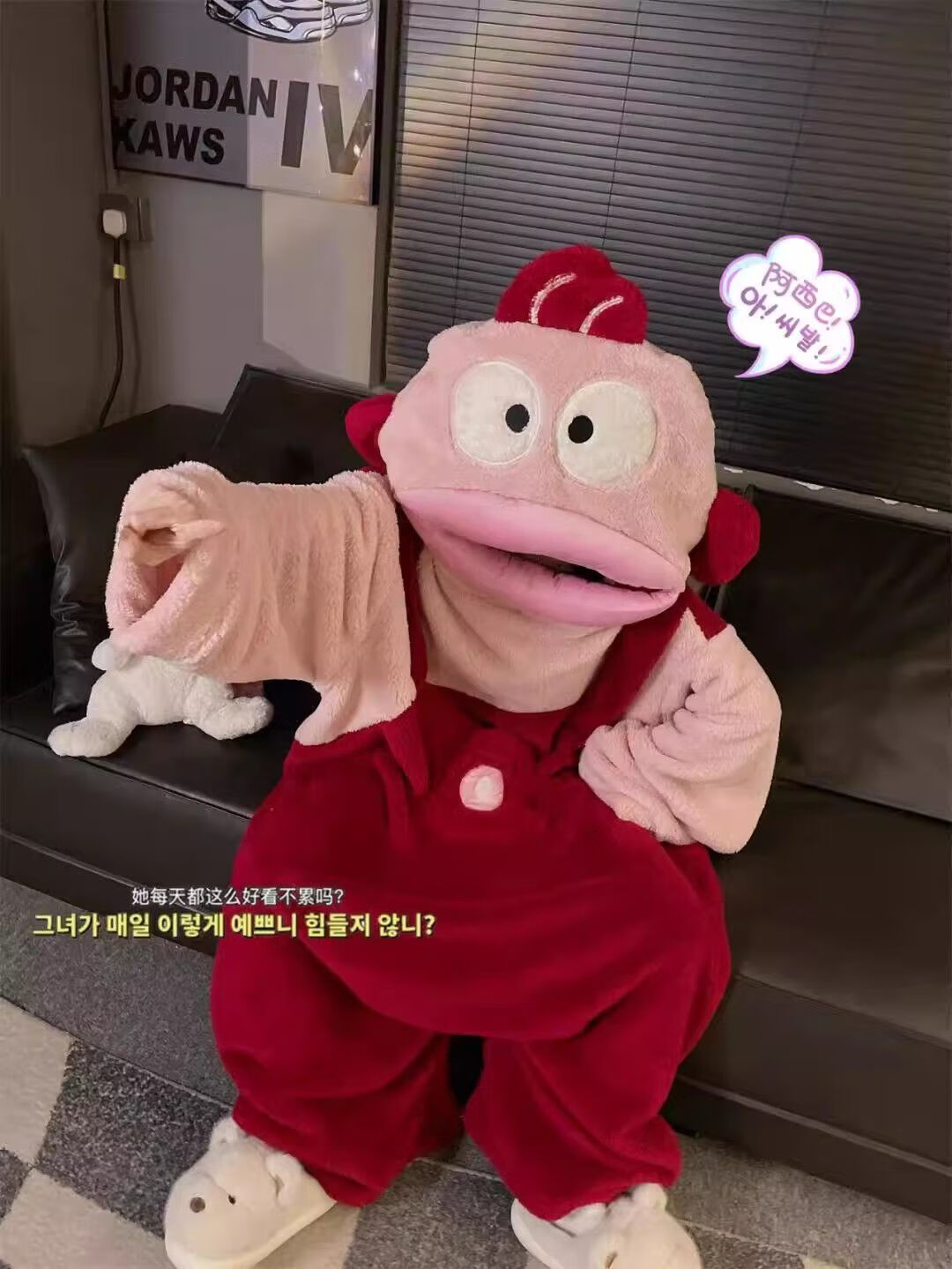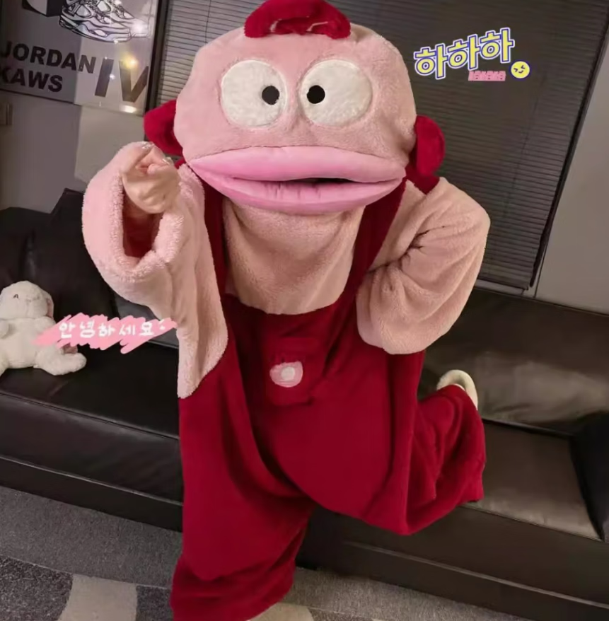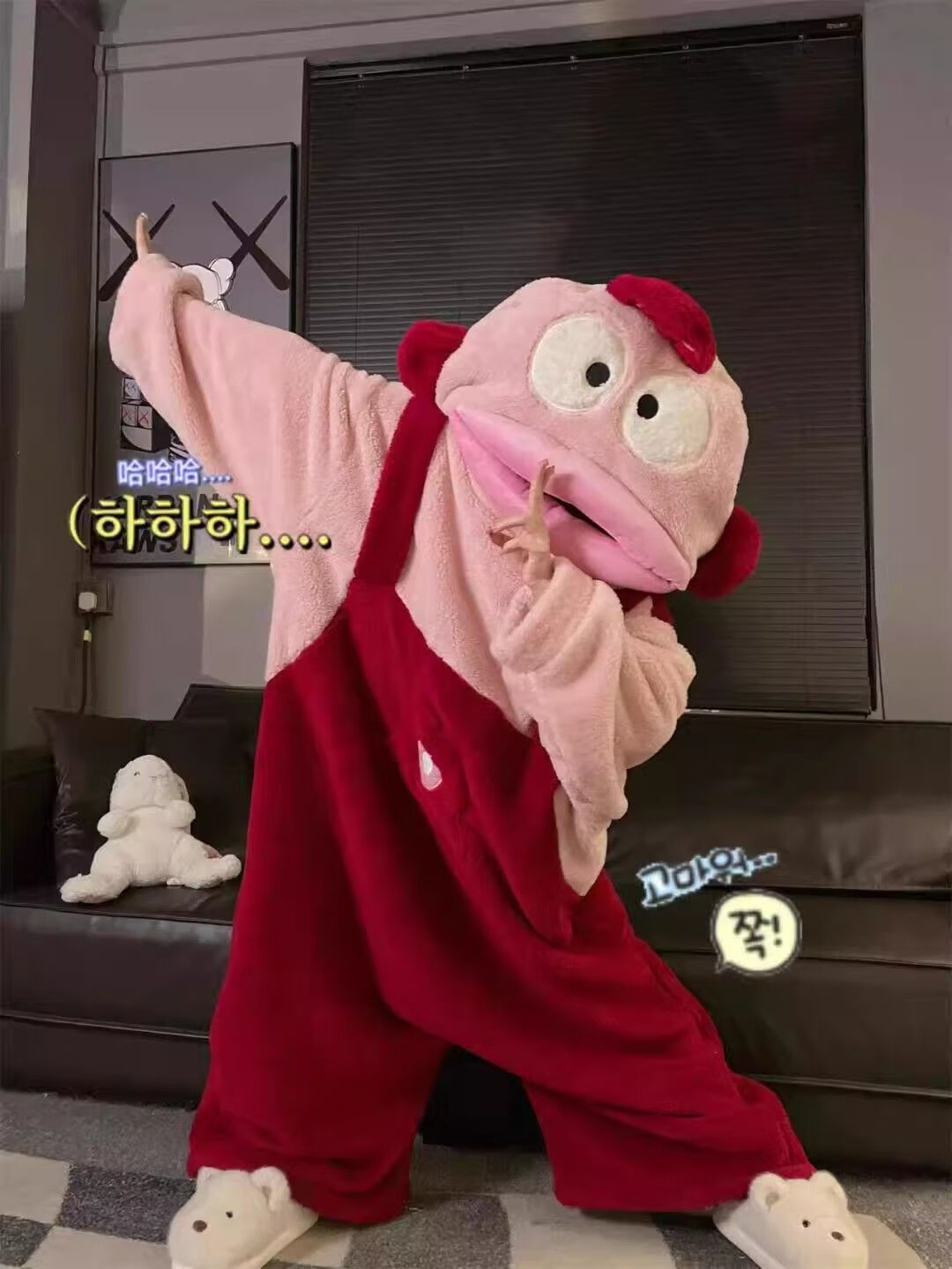 Ugly fish one-piece pajamas autumn and winter coral velvet clownfish new plus velvet thickened cute cartoon one-piece home clothes 50822 clownfish one-piece velvet light blue L 100-120Jin Jin equals 0.5 kg