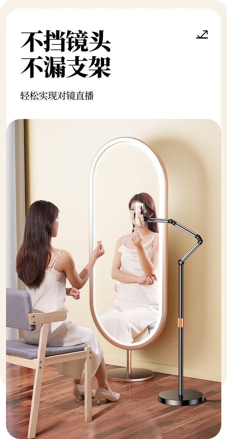 Jiahuacai Live Broadcast Mobile Phone Special Bracket Floor-standing Overhead Shooting Mobile Phone Stand Mirror Live Broadcast Stand with Radiator Multifunctional Internet Celebrity Anchor Shooting Support Stand Calligraphy Shooting Video Stand 1.7 Meter Double Arm Mobile Phone Model