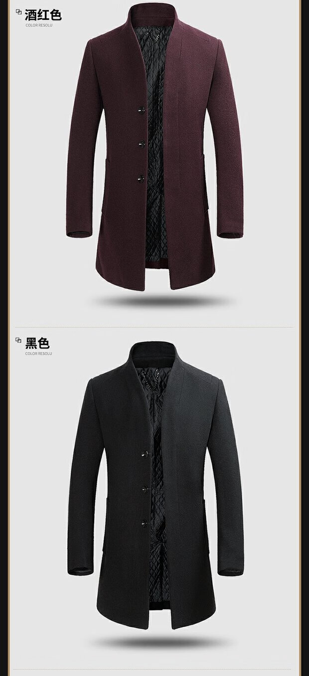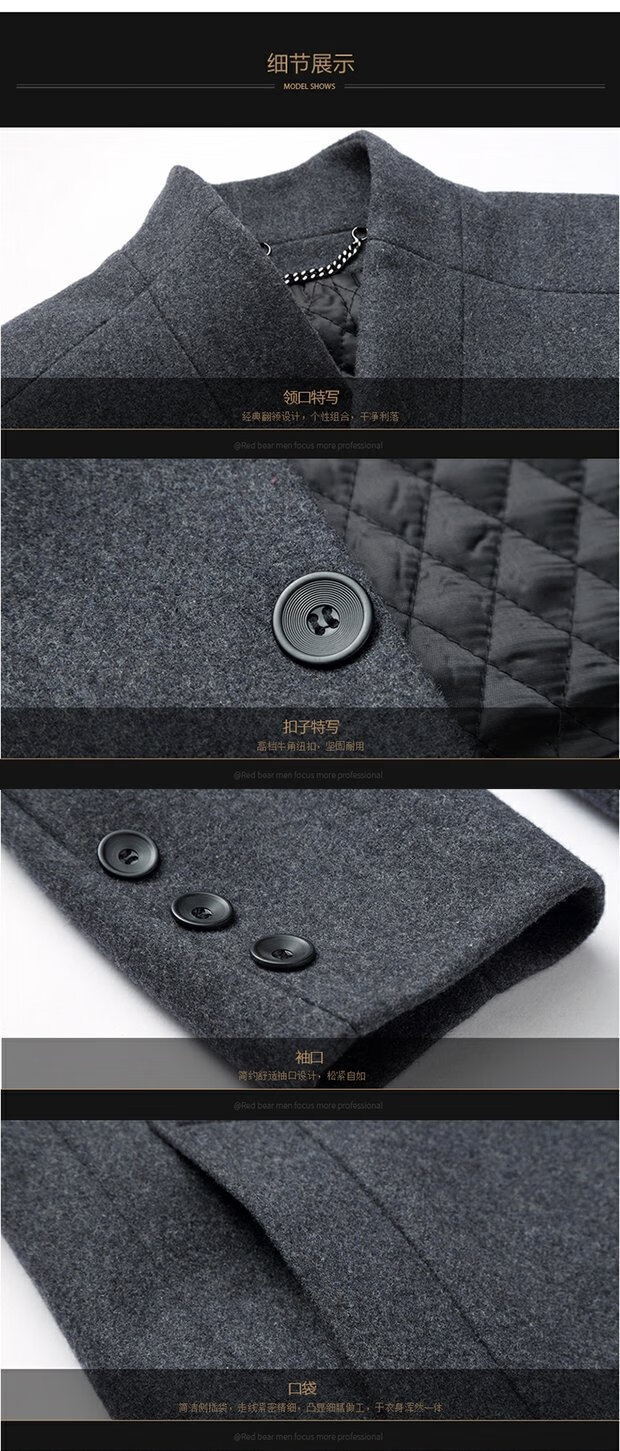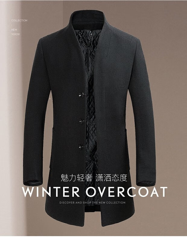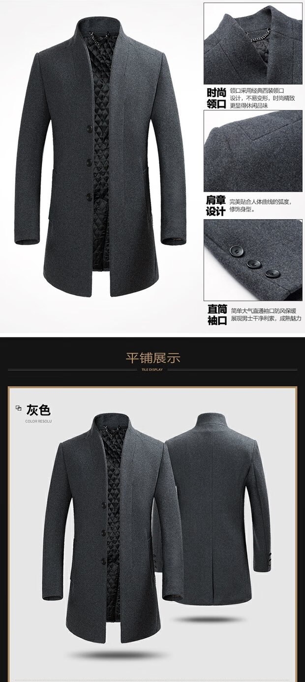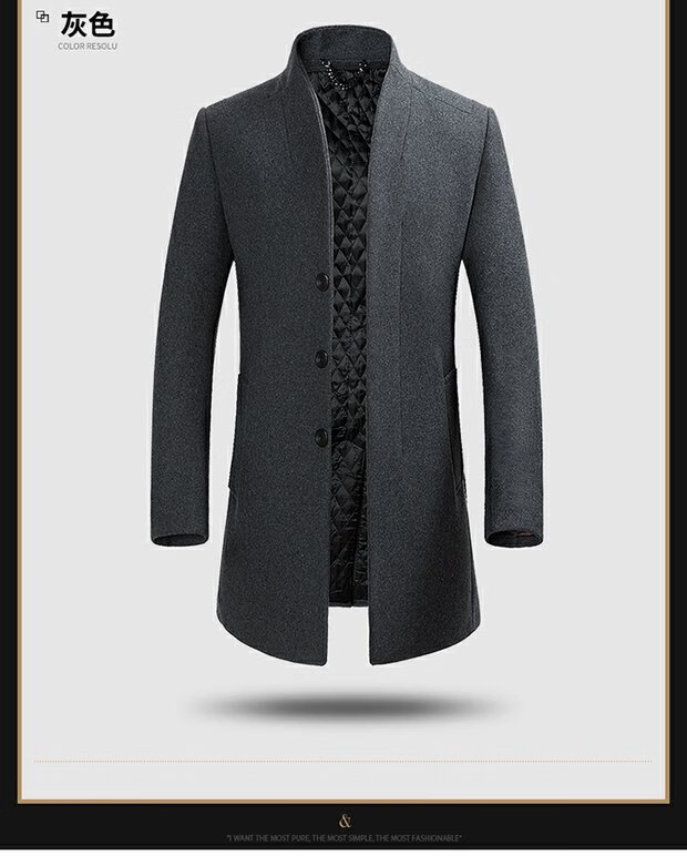 ROMON cashmere coat men's slim winter cotton thickened middle-aged men's stand collar mid-length woolen coat new product gray quilted autumn and winter 5XL 200