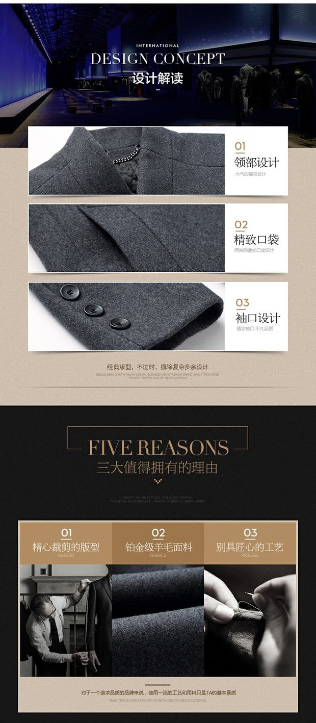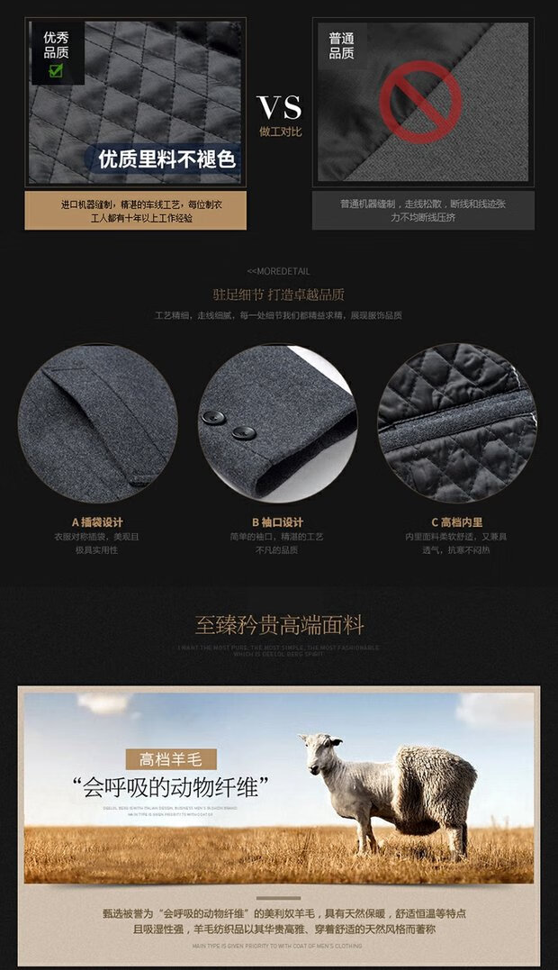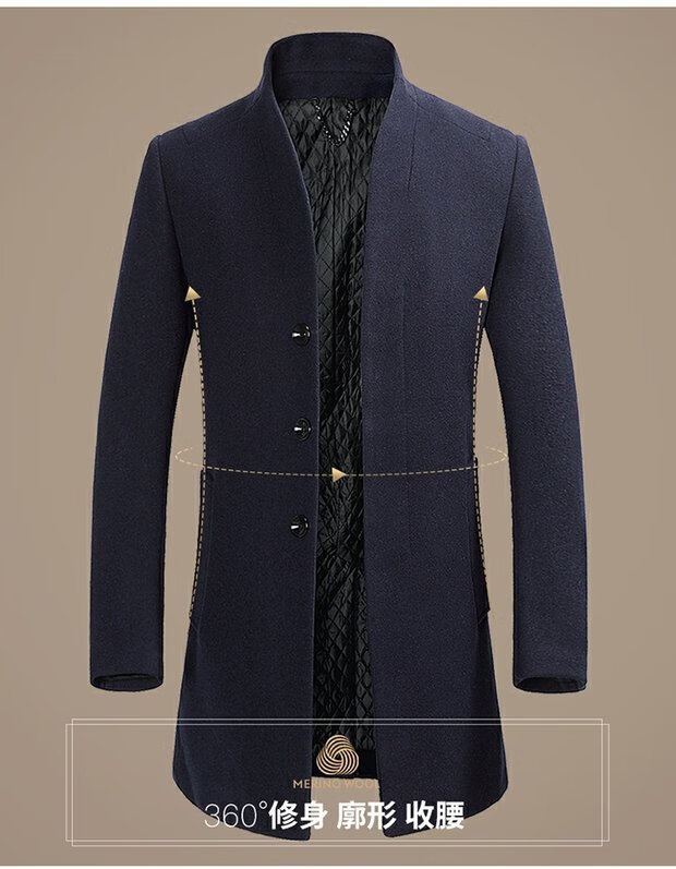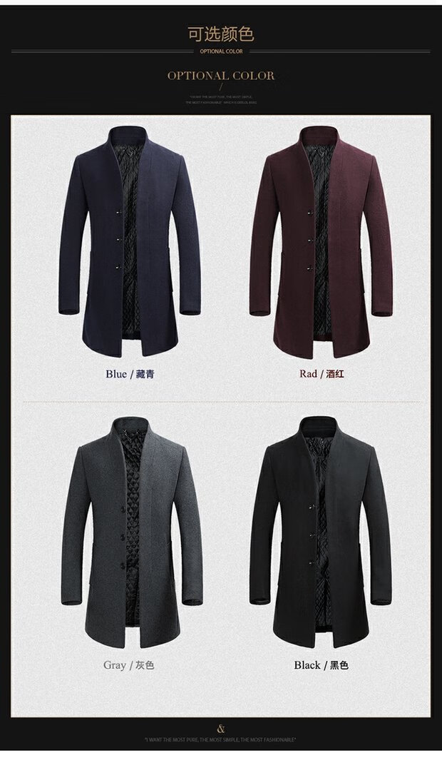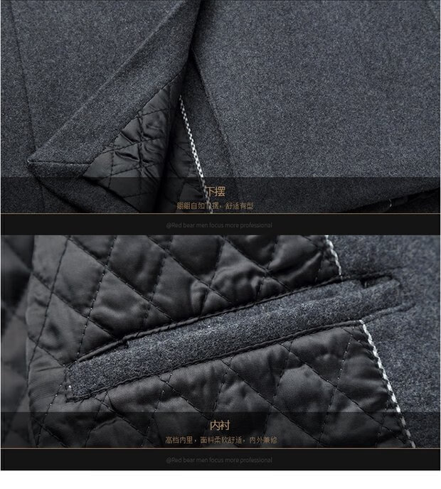 ROMON cashmere coat men's slim winter cotton thickened middle-aged men's stand collar mid-length woolen coat new product gray quilted autumn and winter 5XL 200