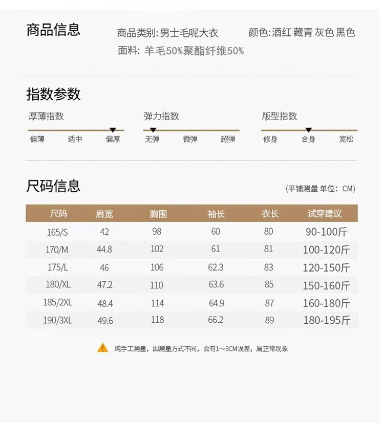 China (cm) 165 / 88-90 170 / 96-98 175 / 108-110 180 / 118-122 185 / 126-130