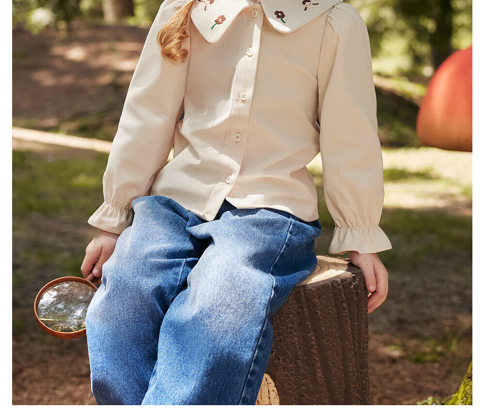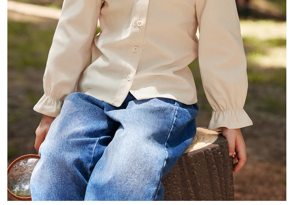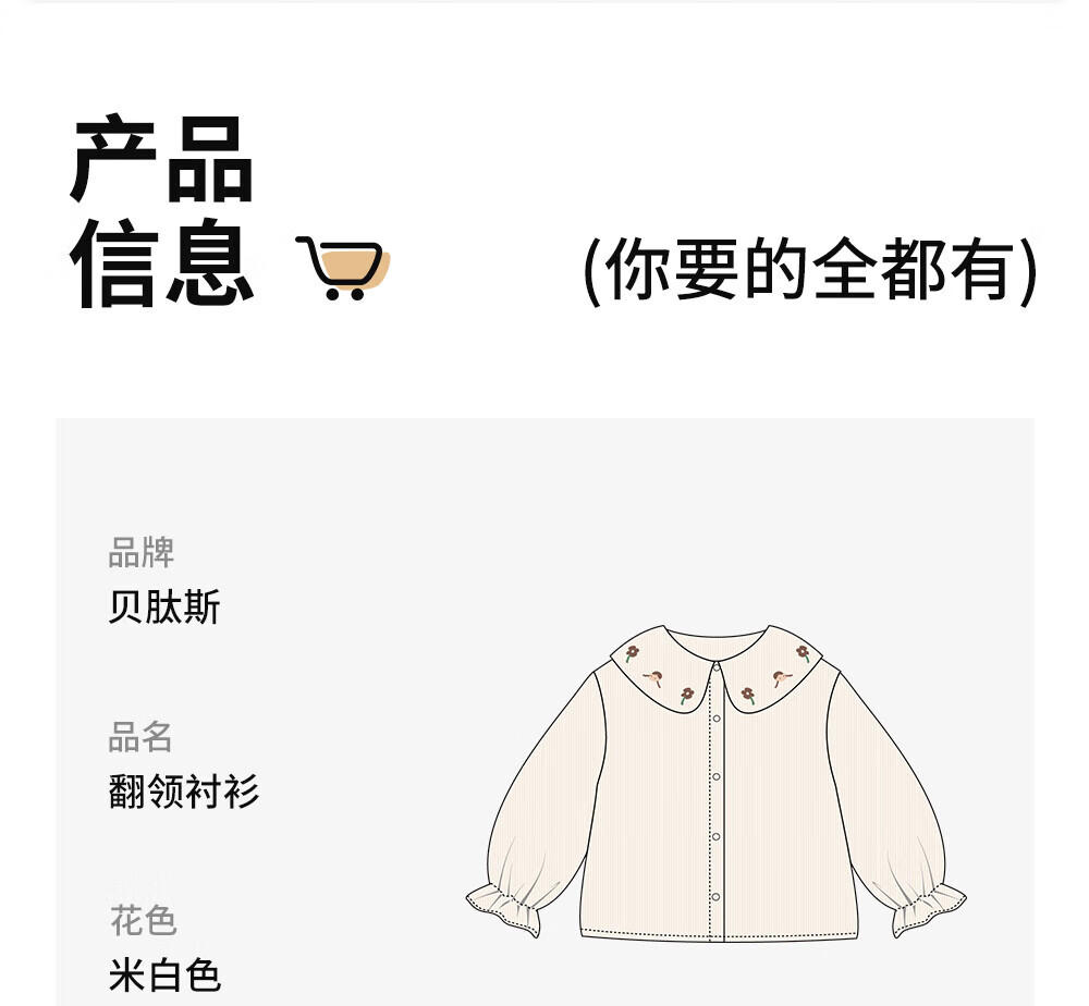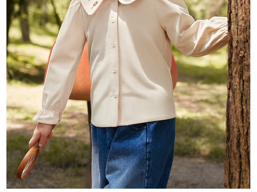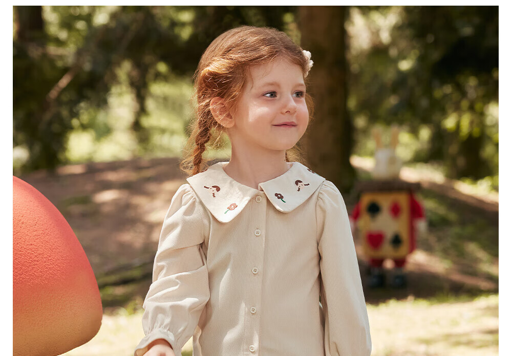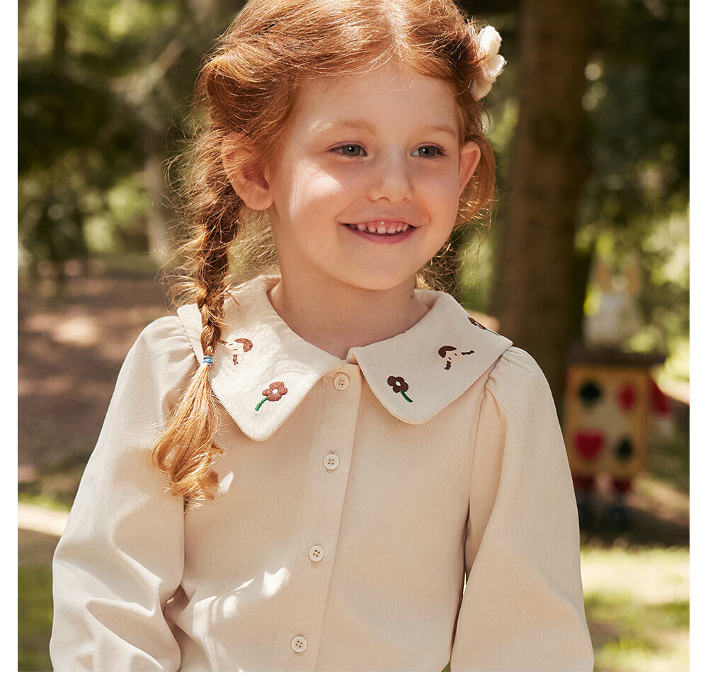 Betis girls long-sleeved shirt autumn new bottoming children's shirt casual loose baby girl top off-white 100 cm