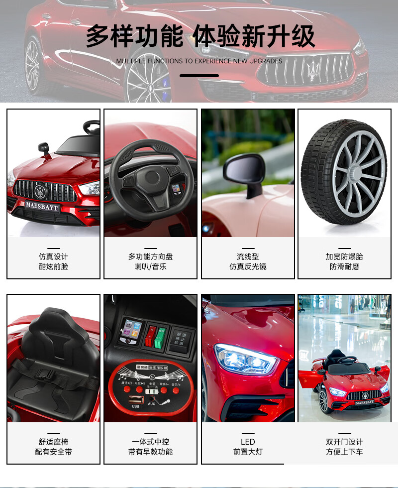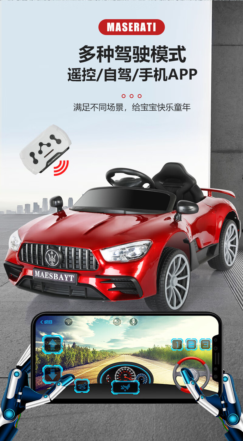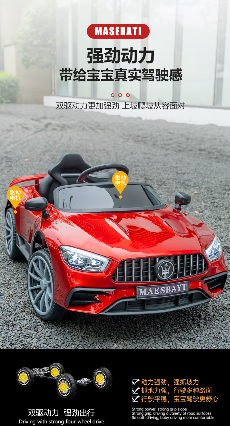 New children's electric car, baby four-wheel car, can sit on men and women, baby toys, remote control Martha sports car, high-end, princess pink, dual drive/extra large battery/leather seat/up and down swing, shock absorber/remote control/self-driving/Bluetooth mobile phone music and lighting/double door/three speed adjustment