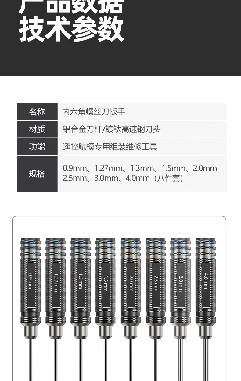 Historical model aircraft model repair hexagonal screwdriver set high-speed steel/titanium-plated super-hard metric special wrench tool aircraft model screwdriver 1.5mm 1 piece