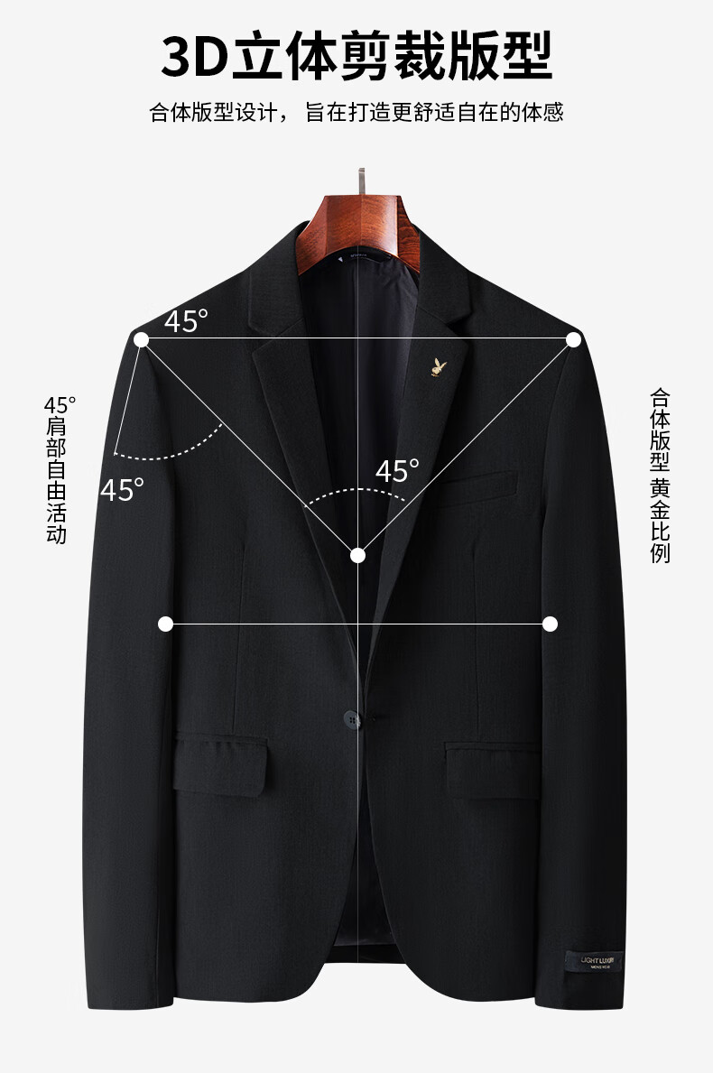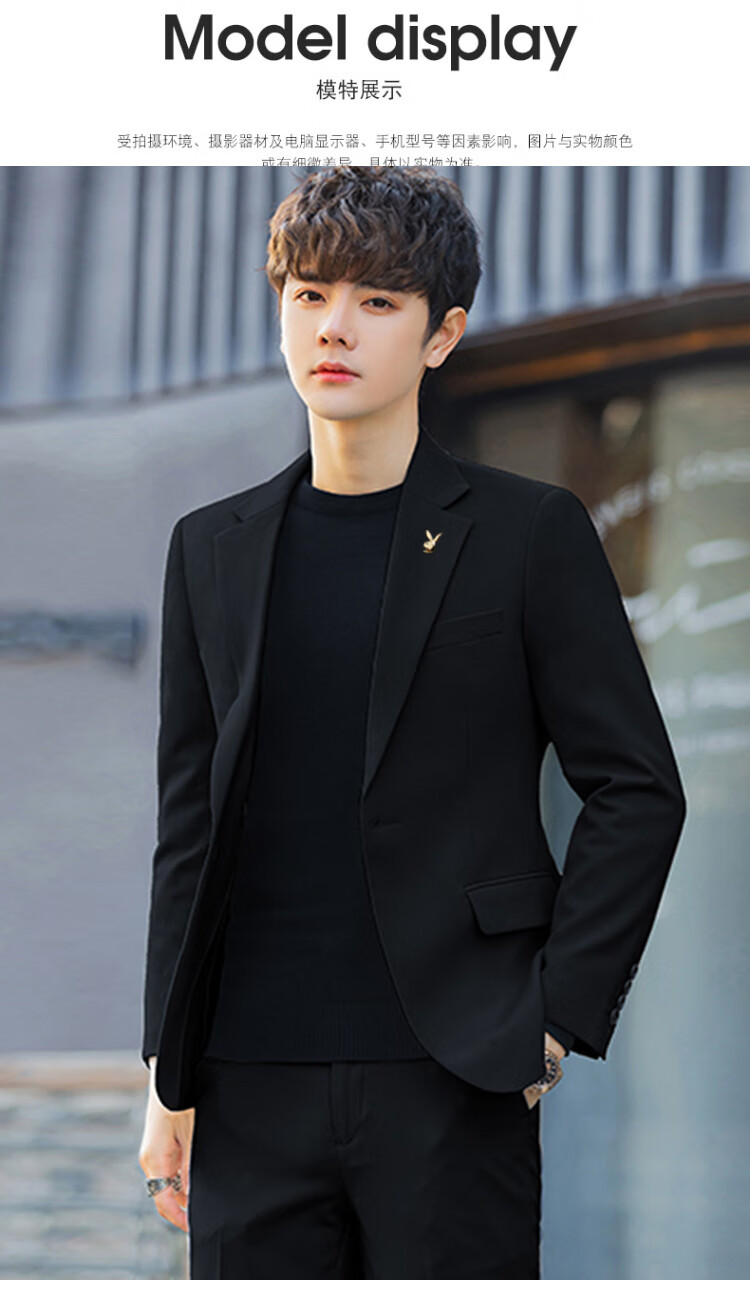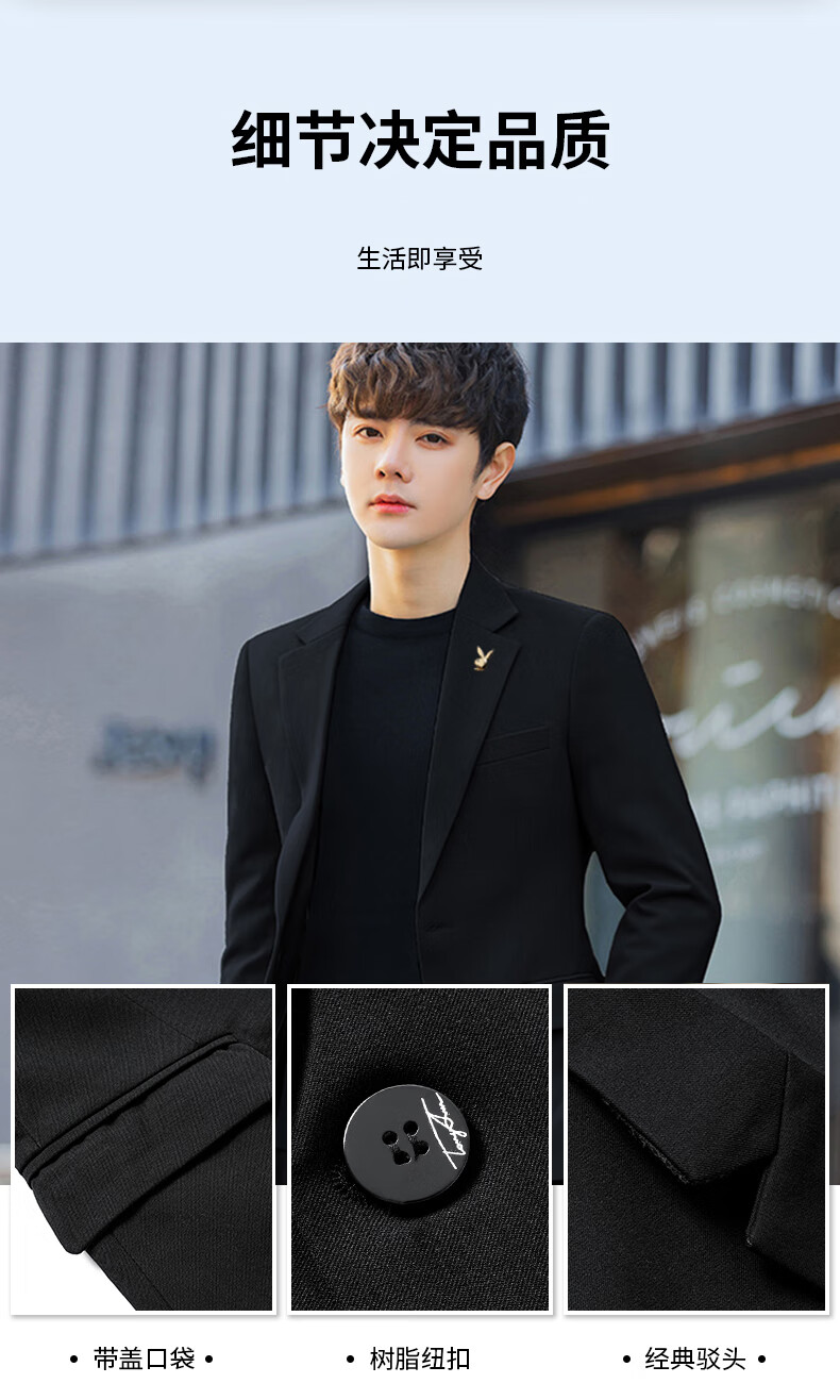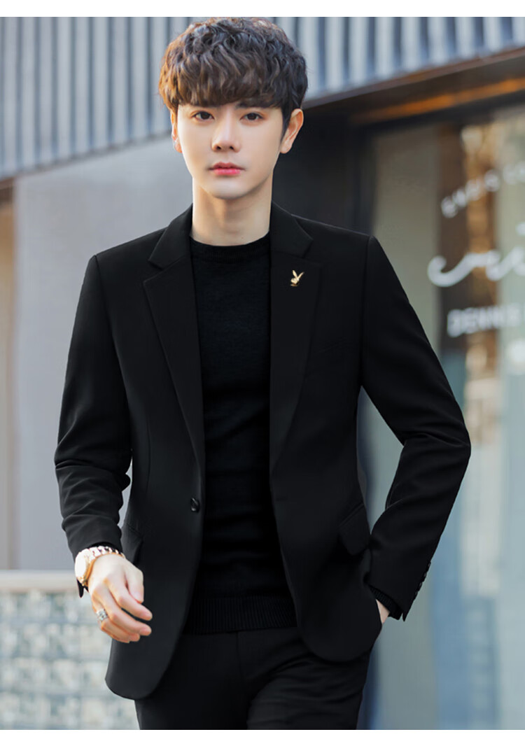 Playboy (PLAYBOY) casual small suit men's jacket Korean style college student business suit suit wedding high-end handsome top black single suit XL recommended 115-130 Jin Jin equals 0.5 kg