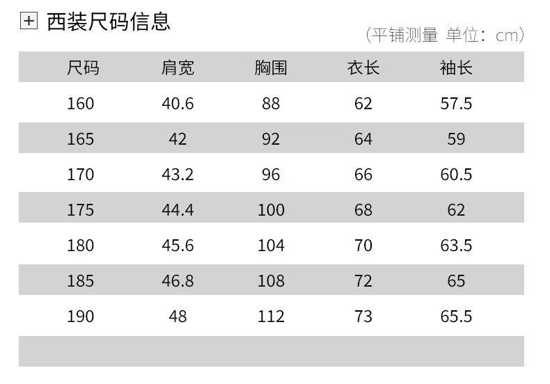 China (cm) 160-165/84-86 165-170 / 88-90 167-172 / 92-96 168-173 / 98-102 170-176 / 106-110