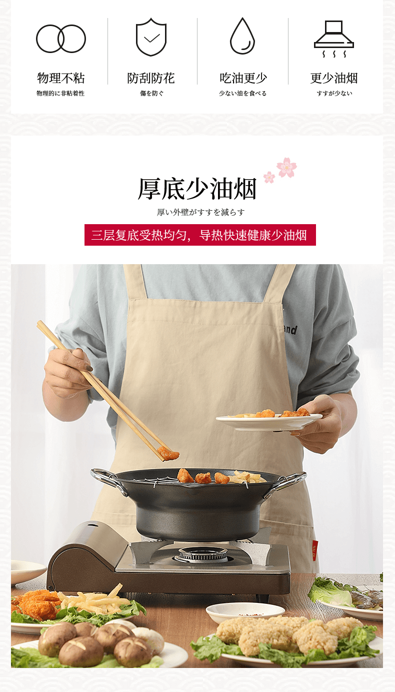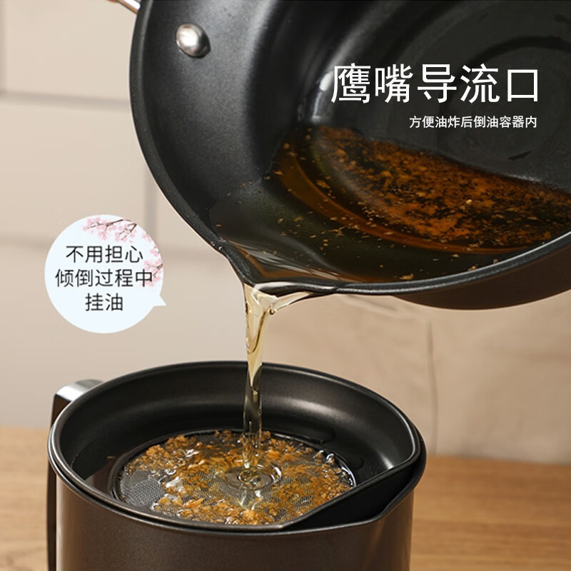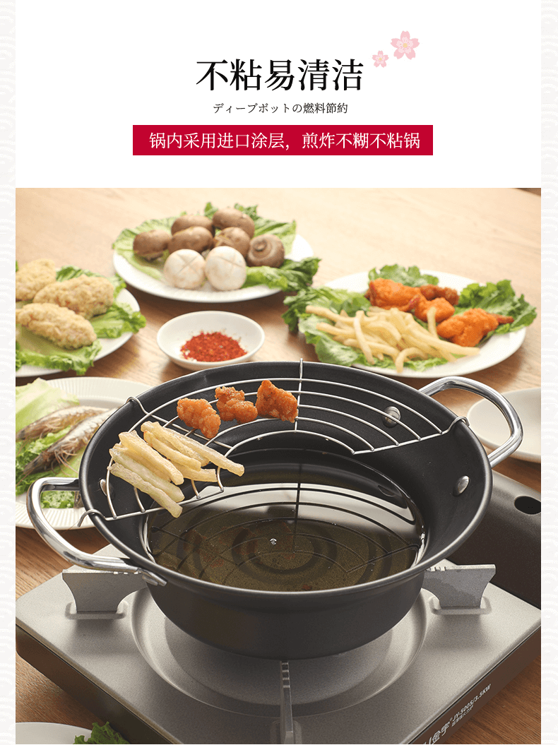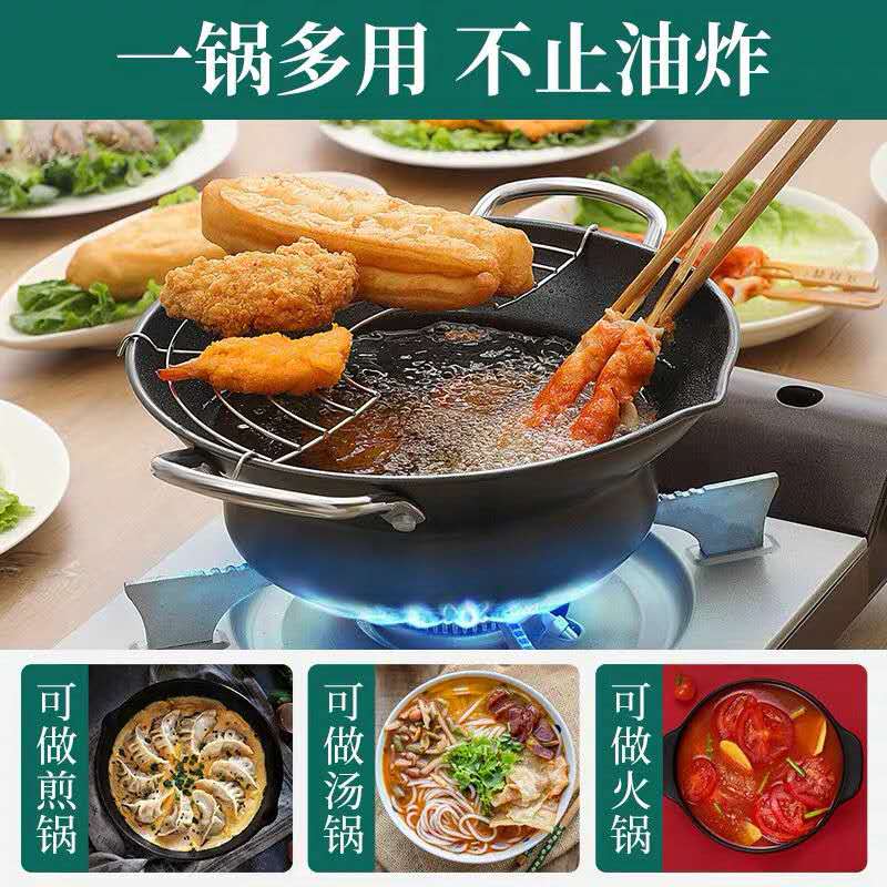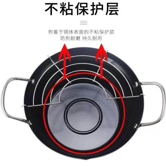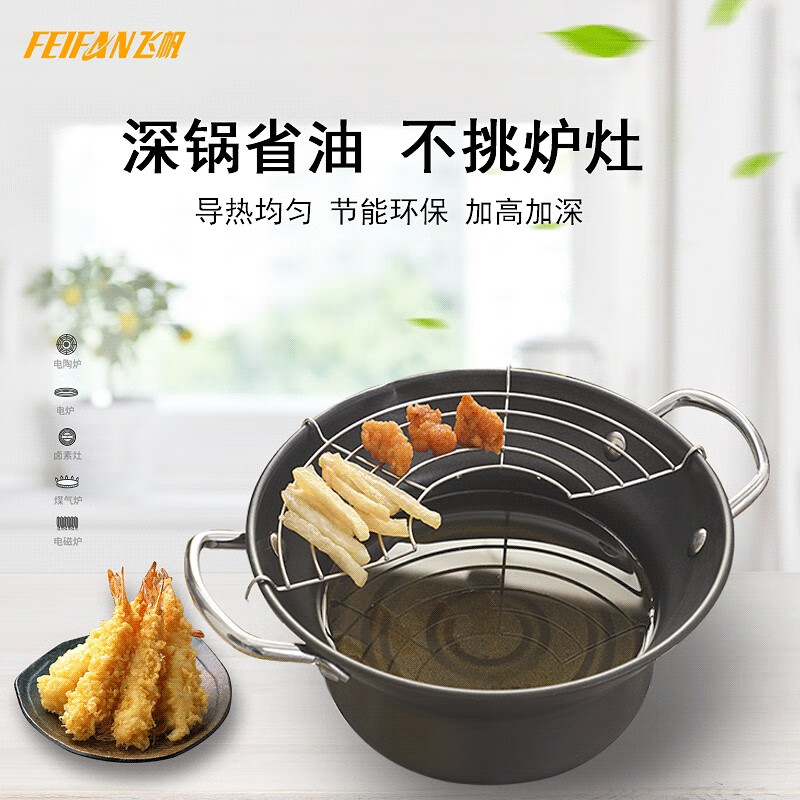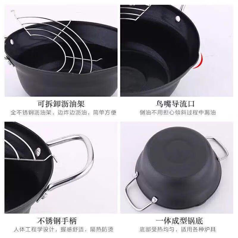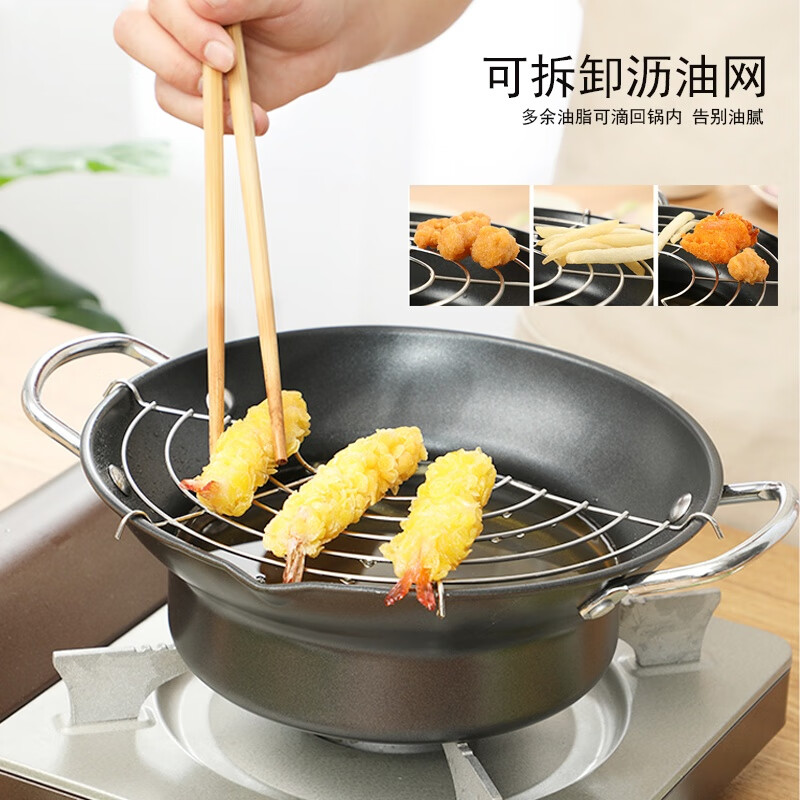 Brangdy Japanese fryer household small fuel-saving non-stick tempura fryer deep-fried oil pot induction cooker small soup pot cooking pot non-stick fryer + drain rack 20cm