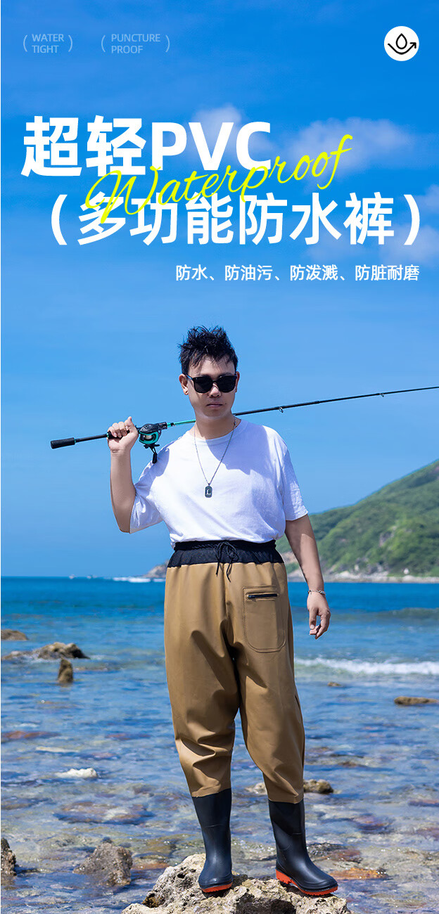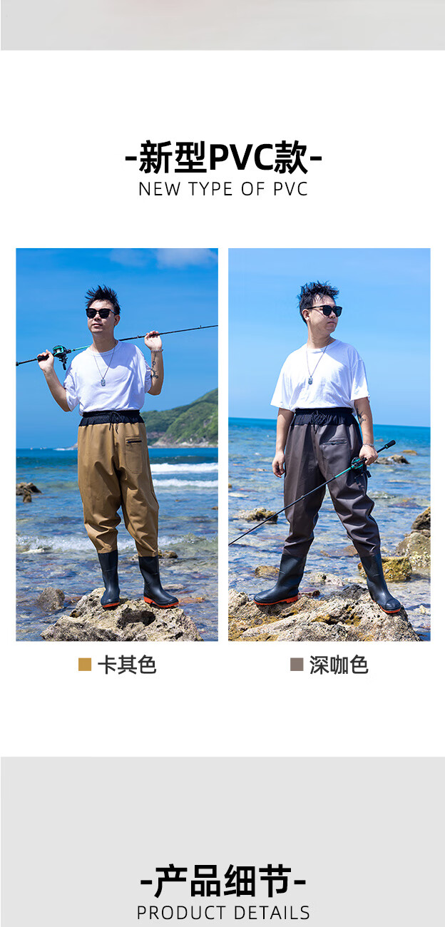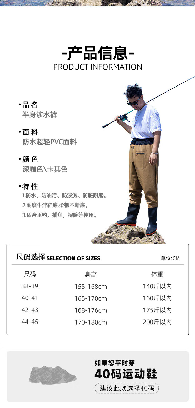 Adult waders, thickened rain pants, waterproof lower body one-piece waders, reservoir fishing overalls, fishing clothes for men, dark brown, suspenders style 42