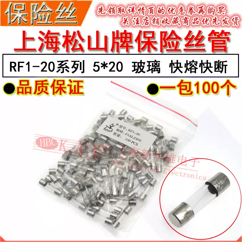 Shanghai Songshan glass fuse tube-../* 0.1A100 pieces